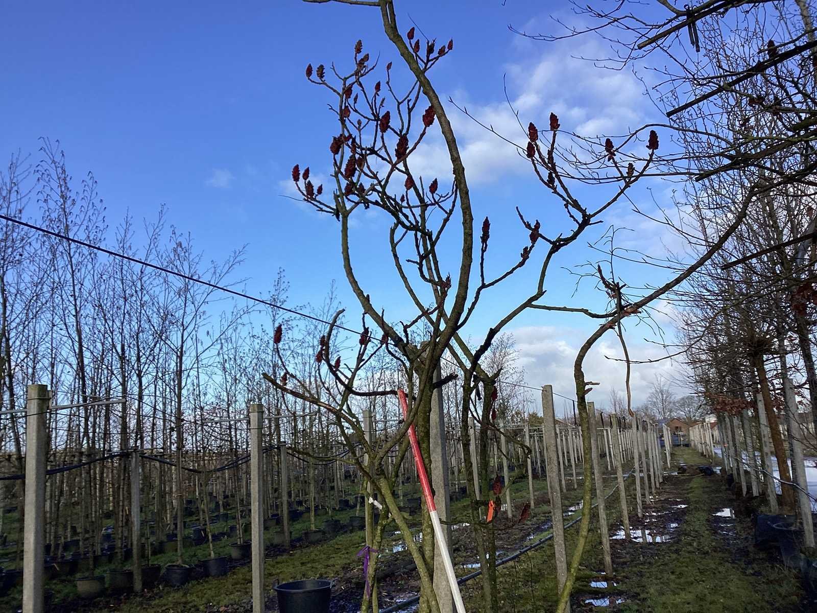 De kavels worden door ons verzameld en klaargelegd voor transport; Wilt u gebruik maken van de bezorgservice neem dan contact op via het emailadres arina@groviatrees.com. Voor overige vragen bel 0645641495 of 0633049344 Type: Fluweelboom Latijnse benaming: Rhus typhina Hoogte ca.: 300cm In pot: true Stamdikte: 20cm
