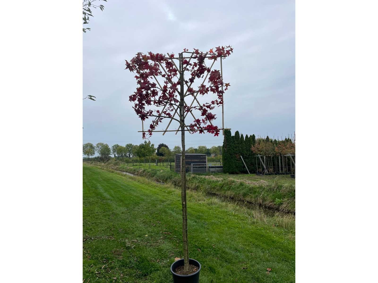 De kavels worden door ons verzameld en klaargelegd voor transport; Wilt u gebruik maken van de bezorgservice neem dan contact op via het emailadres arina@groviatrees.com. Voor overige vragen bel 0645641495 of 0633049344 Type: Amberboom Latijnse benaming: Liquidambar Styraciflua In pot: true Stamdikte: 12cm