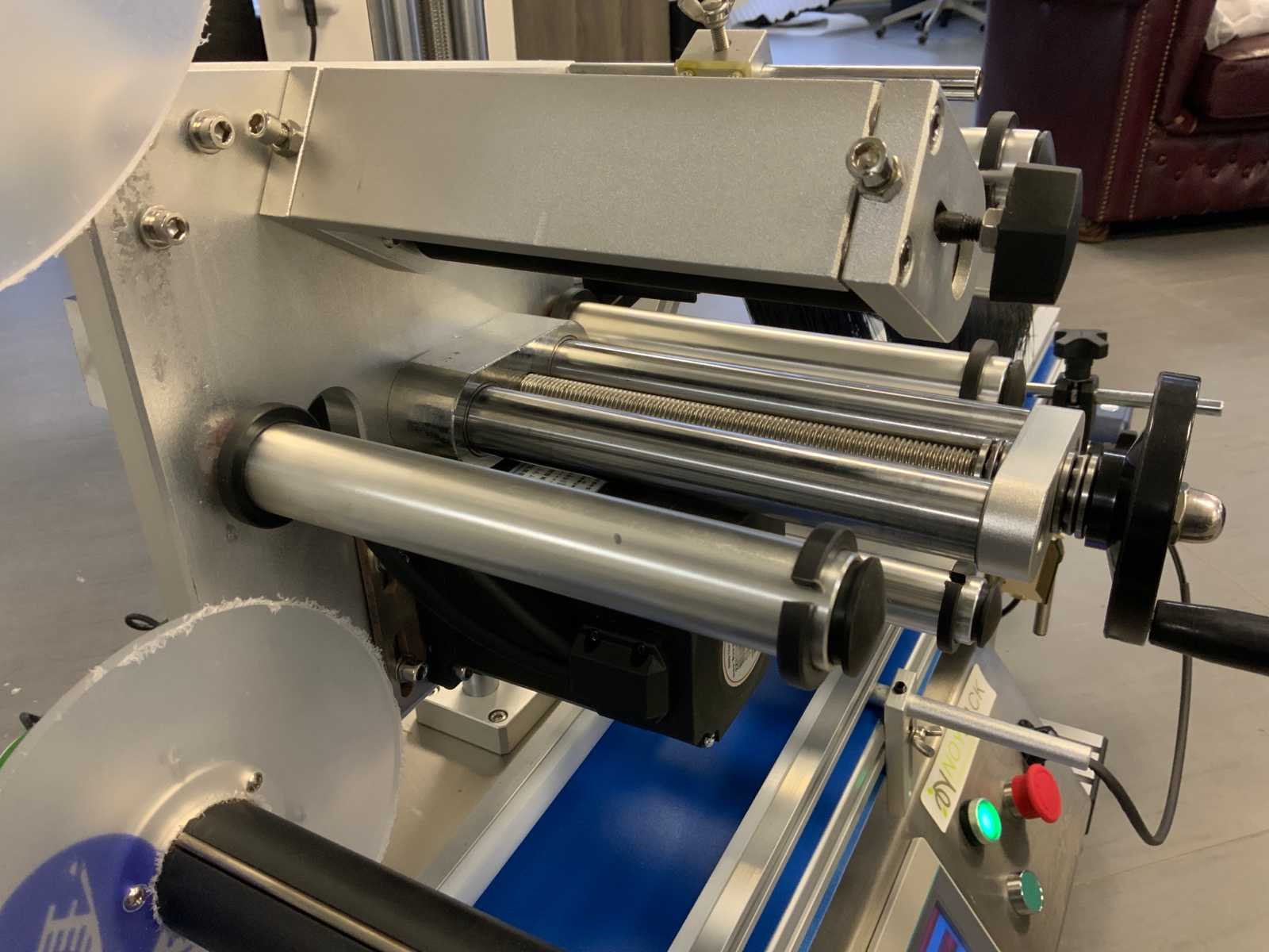 Automatisch etiketteermachine; capaciteit; 20-200 stuks per minuut; label afmeting; L=25-300mm H=15-150mm; binnendiameter rol; 75mm; buitendiameter; 275mm; inclusief ongebruikte datumprinter; Merk: Noypack Aansluiting: 230V Eigen gewicht: 109kg