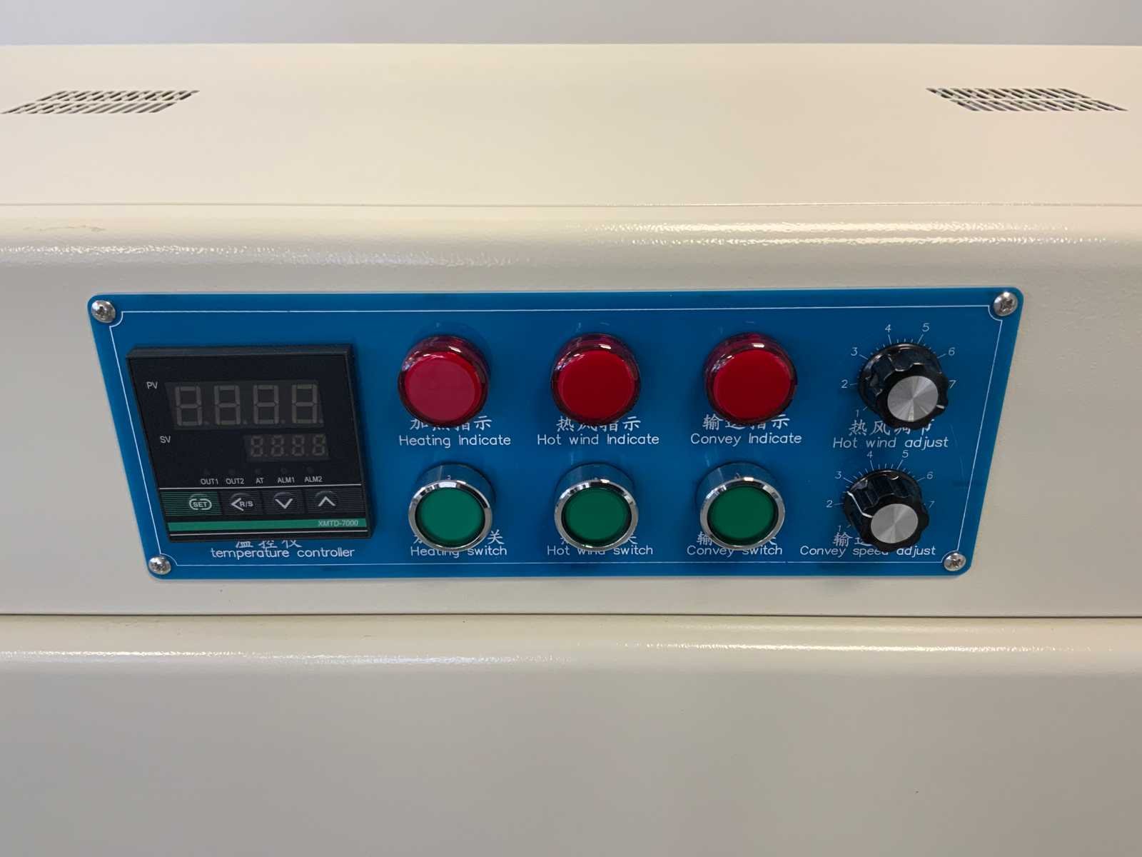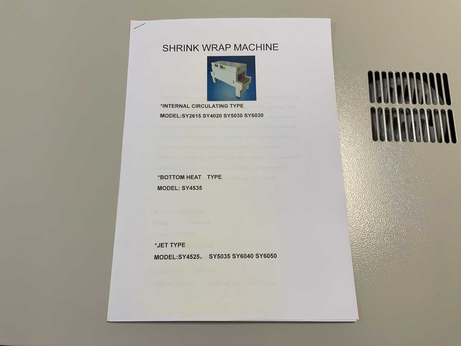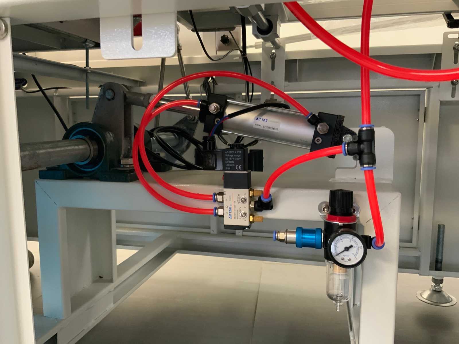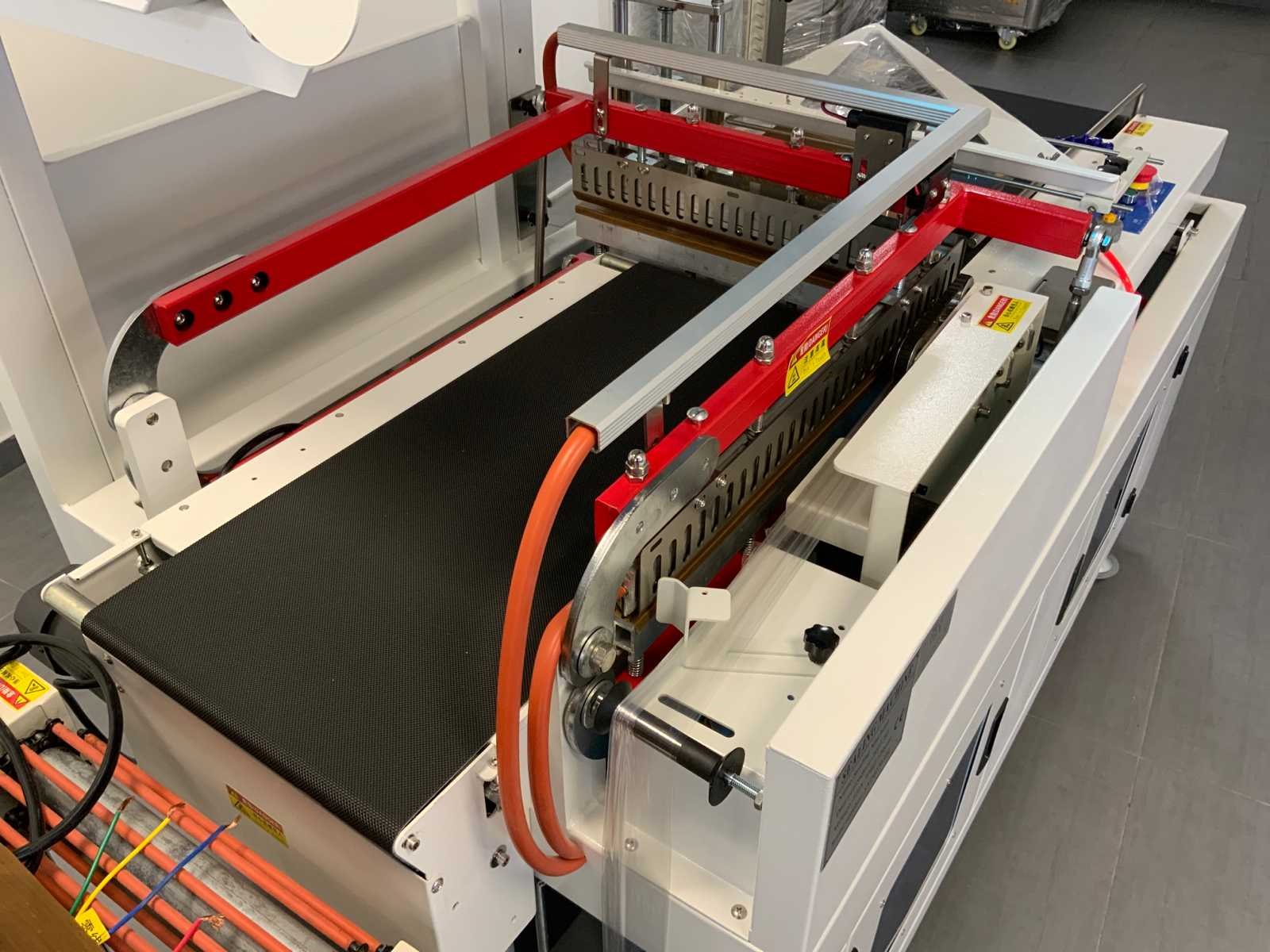 Let op krimptunnel 400V; pneumatisch bediend; Merk: Noypack Bouwjaar: 2023 Serienummer: SY20230301 Max. formaat l: 530mm Werkbreedte: 500mm Rolhouder: true Transportband: true Transportband afm. l: 1600mm Transportband afm. b: 320mm Aansluiting: 230V Totale afmeting Breedte: 950mm Totale afmeting Hoogte: 1450mm