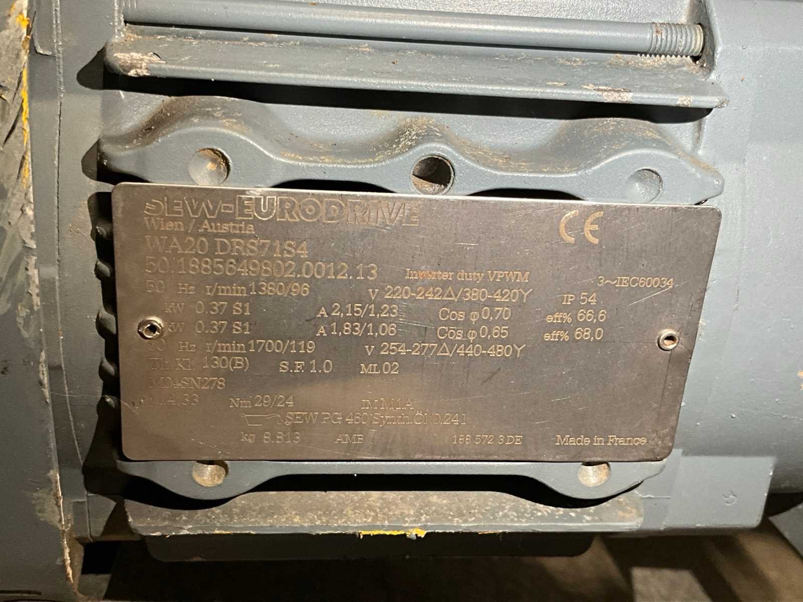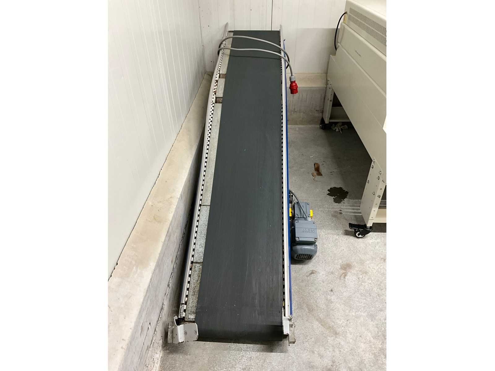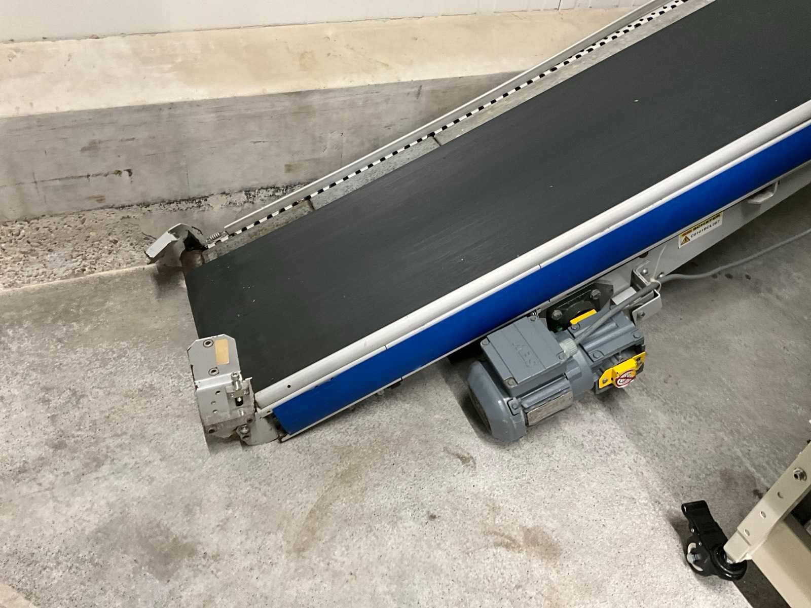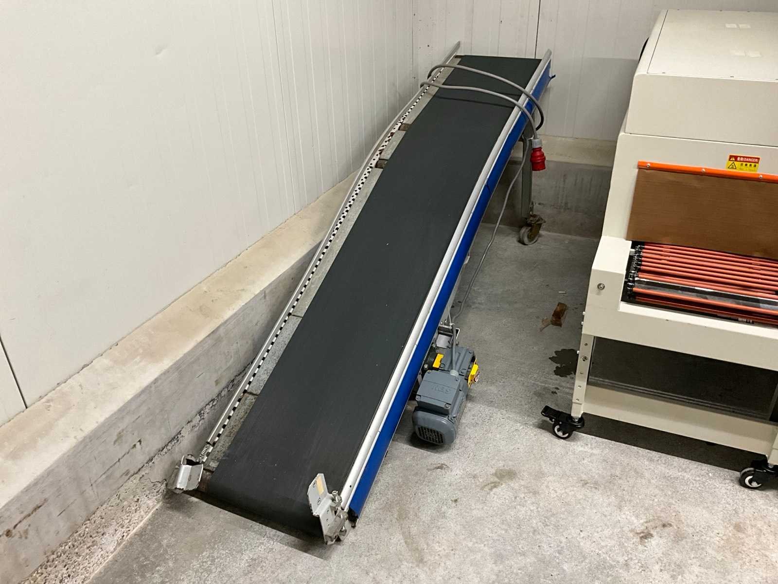 Werkbreedte 440 mm, voorzien van SEW WA 20 motor. Merk: Schafer Serienummer: C0101BCL267 Transportband afm. b: 370mm Transportband afm. h: 2200mm Aansluiting: 380V Totale afmeting L: 2330mm Totale afmeting Breedte: 710mm Totale afmeting Hoogte: 100mm