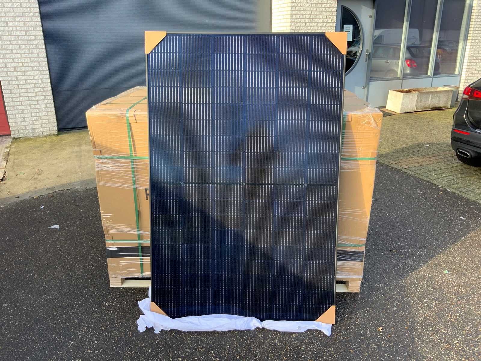 Ongebruikt; 1x pallet a 36 stuks; full black; mono crystal; max. 410watt; etc. Zie foto’s voor details. Merk: QJ Solar Type: QJM410-108H-B Aantal cellen: 108 Max. dc voltage: 1500V Eigen gewicht: 21kg Totale afmeting L: 1722mm Totale afmeting Breedte: 1134mm Totale afmeting Hoogte: 30mm