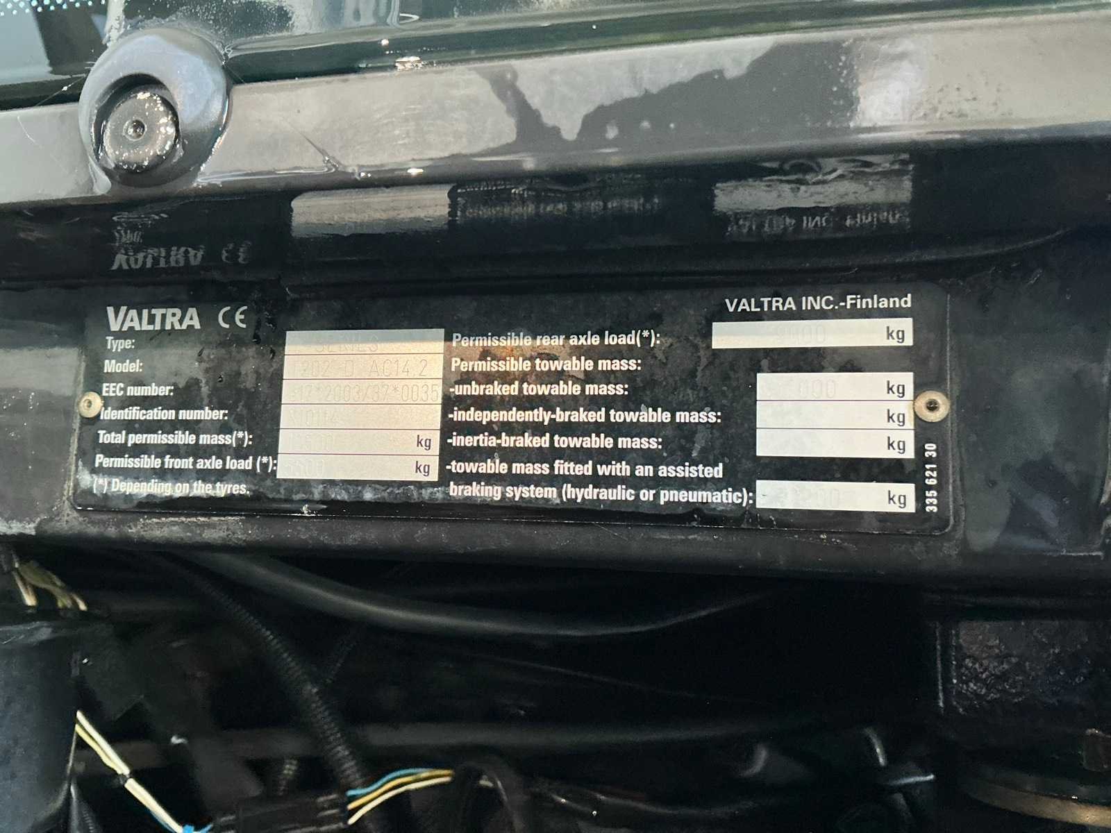 Voorasvering, cabinevering, kipperknobbel, topstang, hydraulisch wagenremventiel, luchtremmen, spoorbreedte 1820mm, spatbordbediening, 540/1000mm, Merk: Valtra Type: T202 Direct Bouwjaar: 2011 Serienummer: X10114 Kenteken: TDV-81-G Afgelezen urenstand: 6746 Versnellingsbaktype: Automaat Aantal hydraulische ventielen voor: 1 Aantal hydraulische ventielen achter: 5 Bandenmaat voor: Michelin 480/70R30 Bandenmaat achter: Mitas 650/65R42 Fronthefinrichting: true Frontaftakas: true Cabine: true Totale afmeting L: 6000mm Totale afmeting Breedte: 2550mm Totale afmeting Hoogte: 3300mm Chassisnummer: X10114 Datum eerste toelating: 2011-06-30 Nationaliteit documenten: Nederlands