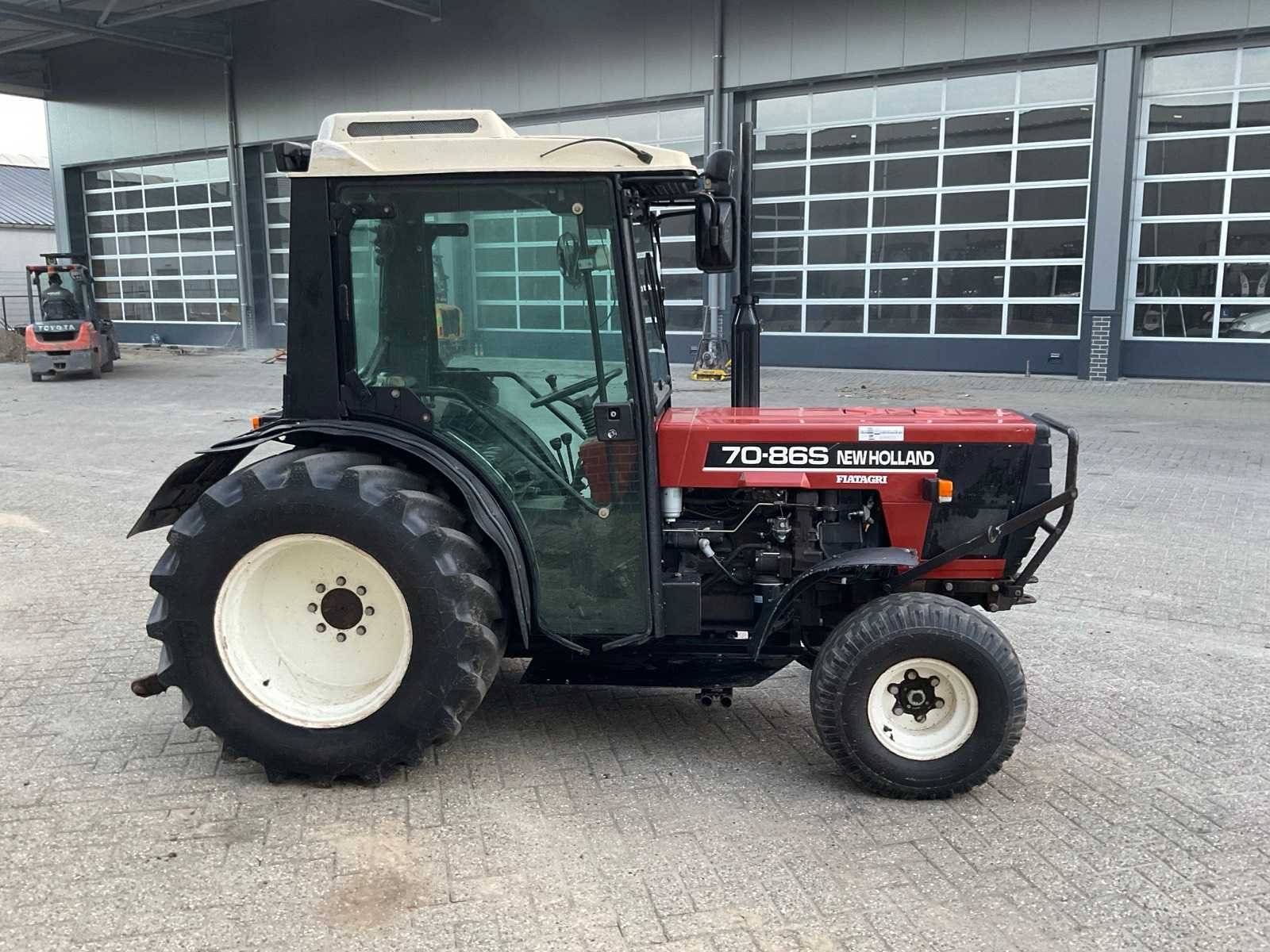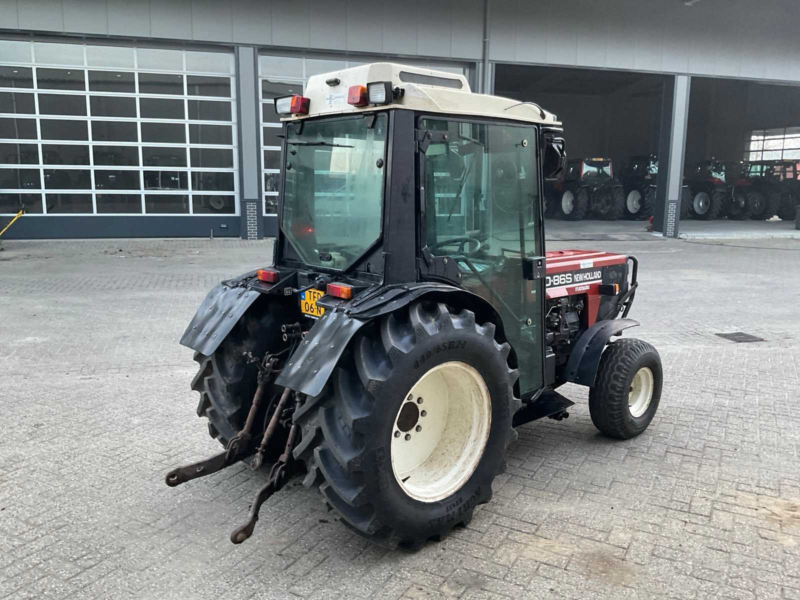 Bodemplaat, topstang, airco, 540/1000 pto rpm Merk: New Holland Type: 70-86s Bouwjaar: 1997 Serienummer: 001117418 Kenteken: TFD-06-N Afgelezen urenstand: 5998 Versnellingsbaktype: Handgeschakeld Bandenmaat voor: 10.0/80-12 BKT Bandenmaat achter: 440/65R24 BKT Spoorbreedte: 1050mm Aantal hydraulische ventielen achter: 2 Cabine: true Totale afmeting L: 3500mm Totale afmeting Breedte: 1500mm Totale afmeting Hoogte: 2100mm Datum eerste toelating: 1997-06-30