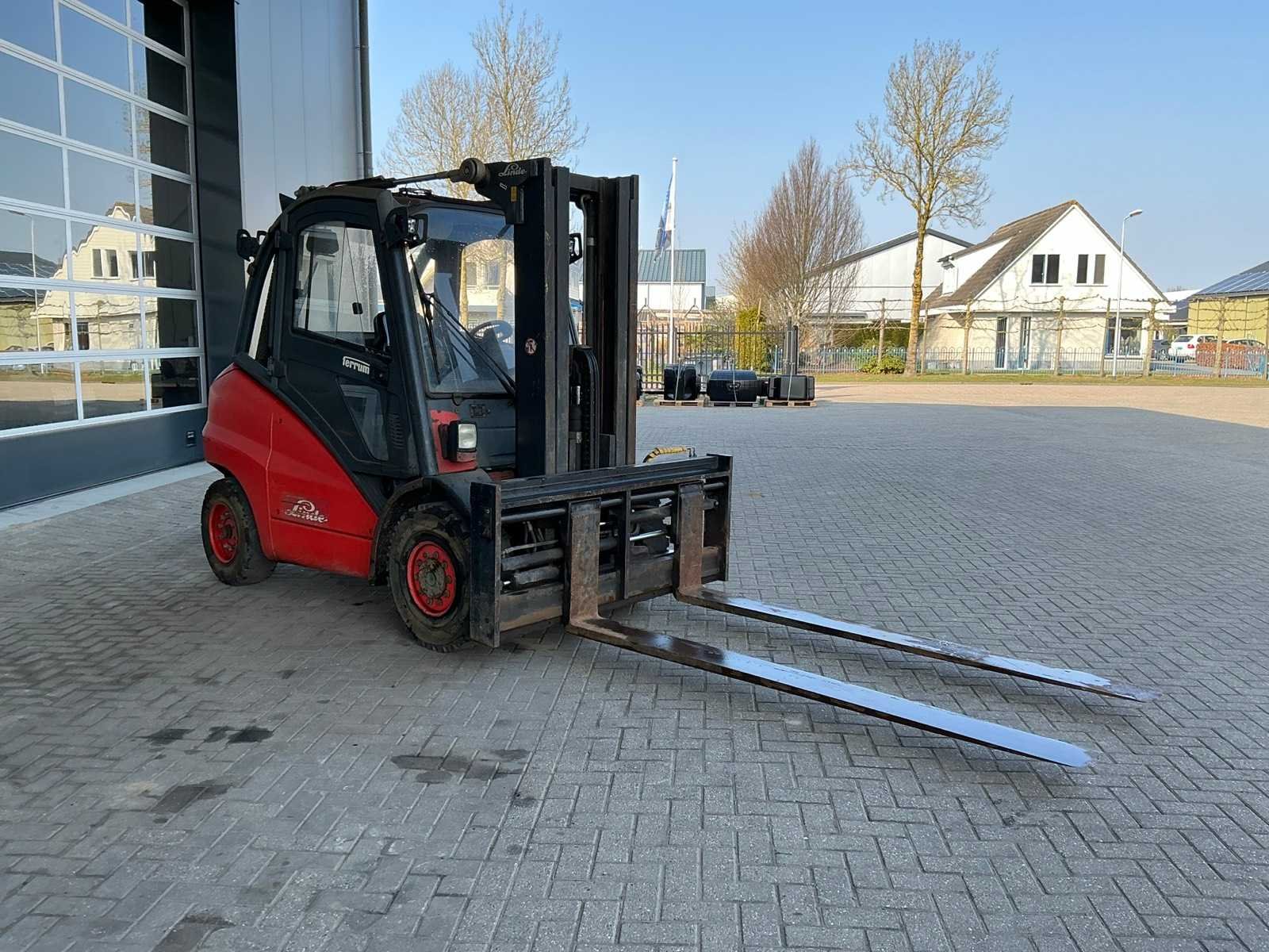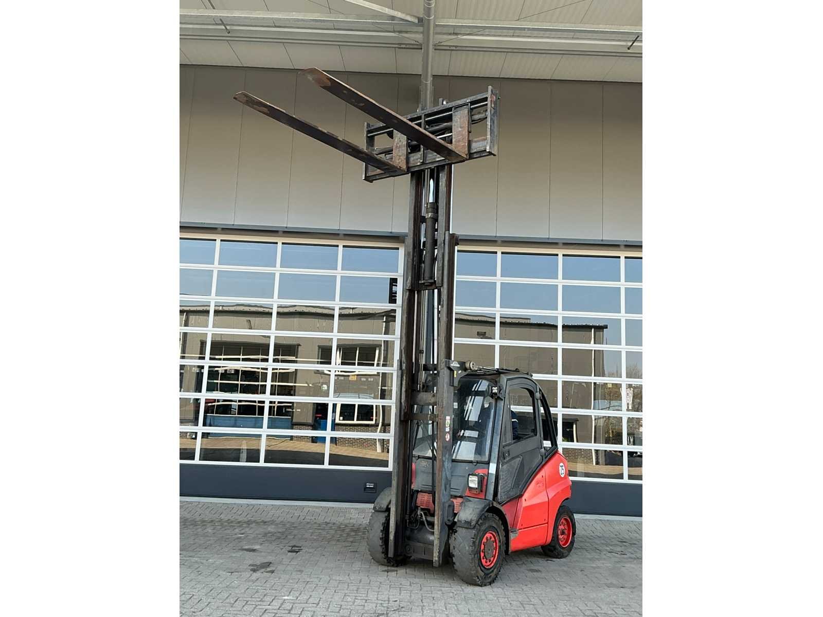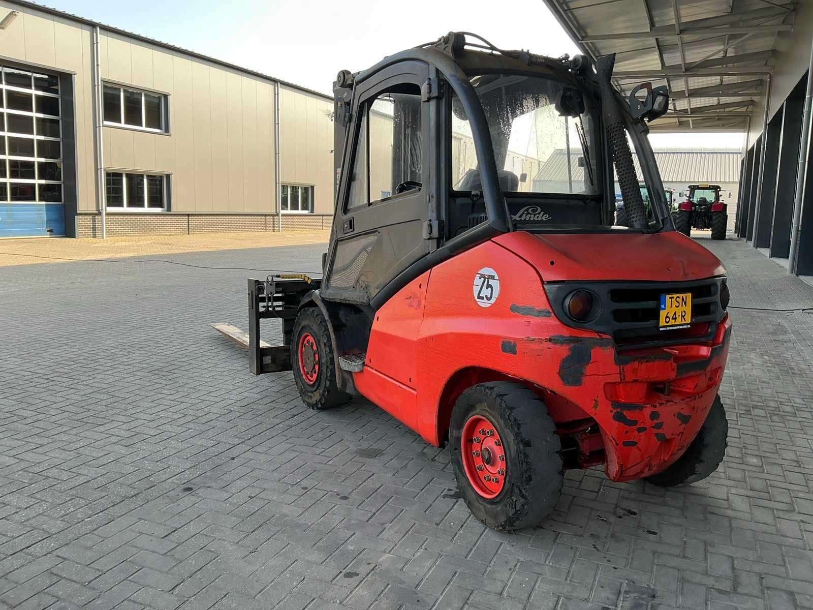 Voorzien van Volkswagen dieselmotor. Merk: Linde Type: H50D Bouwjaar: 2004 Serienummer: H2X394R00339 Brandstof: diesel Kenteken: TSN-64-R Mast: Triple Soort band: Volrubber banden Aantal wielen: 4 Afgelezen urenstand: 118592 Free-lift: true Side-shift: true Hydraulisch verstelbare lepels: true Eigen gewicht: 7000kg Hefvermogen: 4500kg Lepellengte: 2370mm Max. hefhoogte: 4700mm Minimale doorrijhoogte: 2500mm Totale afmeting L: 5600mm Totale afmeting Breedte: 1860mm Totale afmeting Hoogte: 2500mm Diesel: true