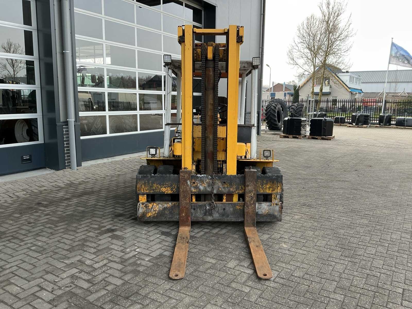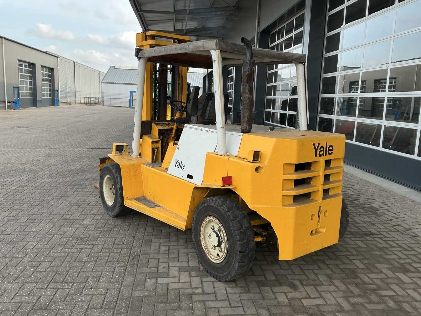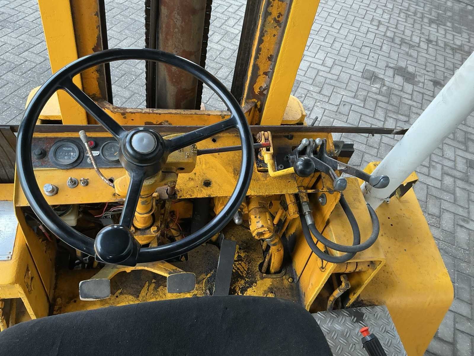 6,3 ton hefvermogen, 1950mm breed vorkenbord, 4-cilinder dieselmotor, extra hydraulische functie, heftruck wordt wekelijks nog circa 3 uren gebruikt, Merk: Yale Type: GDP-140EPBS Bouwjaar: 1976 Serienummer: 50121111 Brandstof: Diesel Mast: Duplex Soort band: Volrubber banden Aantal wielen: 6 Afgelezen urenstand: 2127 Eigen gewicht: 8600kg Hefvermogen: 6300kg Lepellengte: 1220mm Min. hefhoogte: 60mm Max. hefhoogte: 3650mm Hefhoogte: 3650mm Vol rubber banden: true Minimale doorrijhoogte: 2650mm Totale afmeting L: 4600mm Totale afmeting Breedte: 2100mm Totale afmeting Hoogte: 2650mm Diesel: true