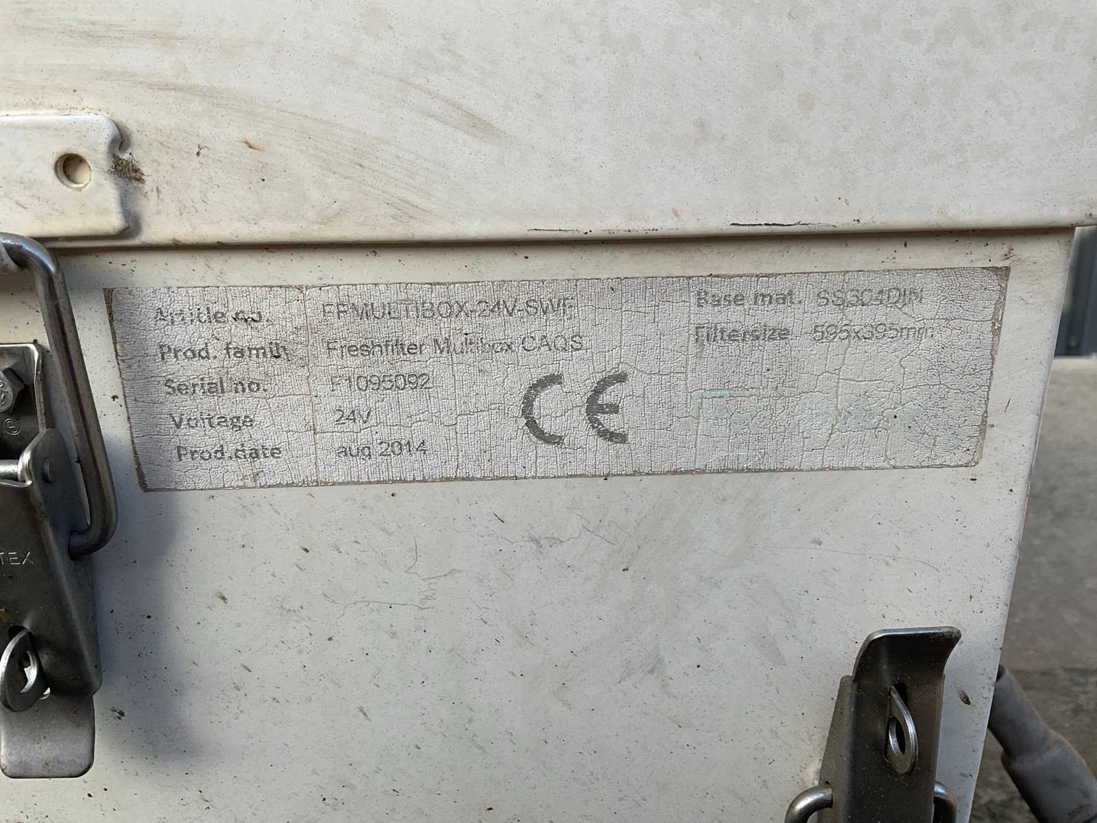 Voltage 24V, filter afmeting 595x395mm Merk: FFMultibox Bouwjaar: 2014 Serienummer: F1095092 Totale afmeting L: 810mm Totale afmeting Breedte: 340mm Totale afmeting Hoogte: 320mm
