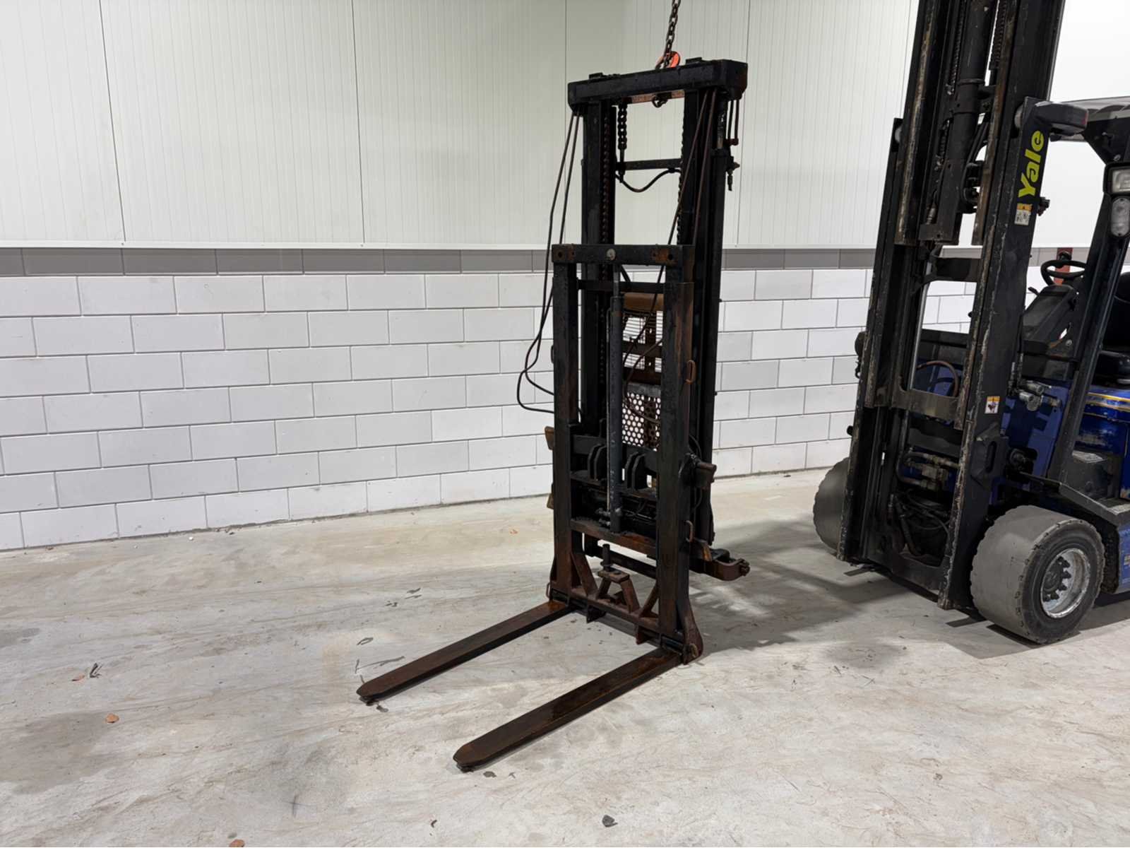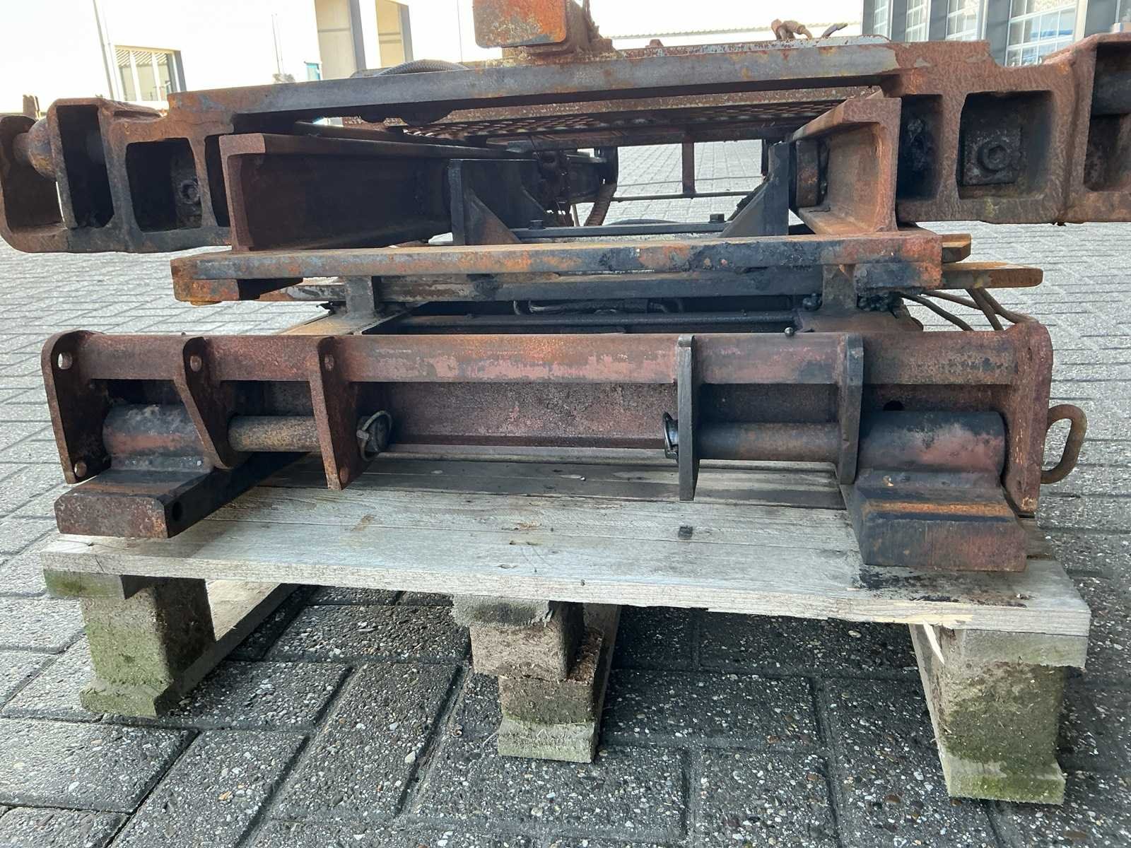 Sideshift, elektrisch/hydraulisch ventiel, verstelbare vorkbreedte, vorklengte 1000mm, 2 delige mast, 1600kg capaciteit, mast heeft brandschade Merk: CM Type: 16 DH Totale afmeting L: 2000mm Totale afmeting Breedte: 1200mm Totale afmeting Hoogte: 400mm