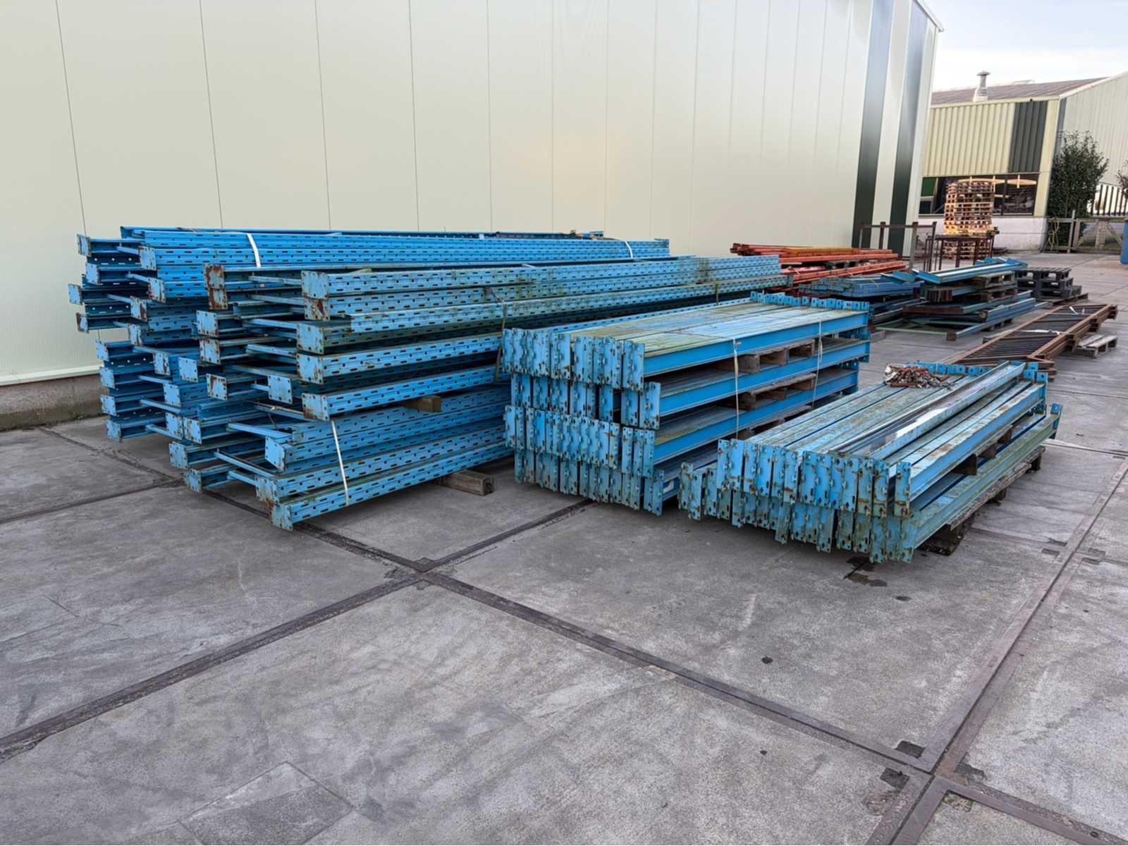 Sectie afmeting 2700x900mm, staander hoogte 5000mm, Transport afmetingen 5000x2000x2000mm Sectie afm. b: 2700mm Sectie diepte: 900mm Aantal staanders: 29 Aantal liggers: 90 Demontabel: true Materiaal: Metaal Totale afmeting Breedte: 90cm Totale afmeting Hoogte: 500cm