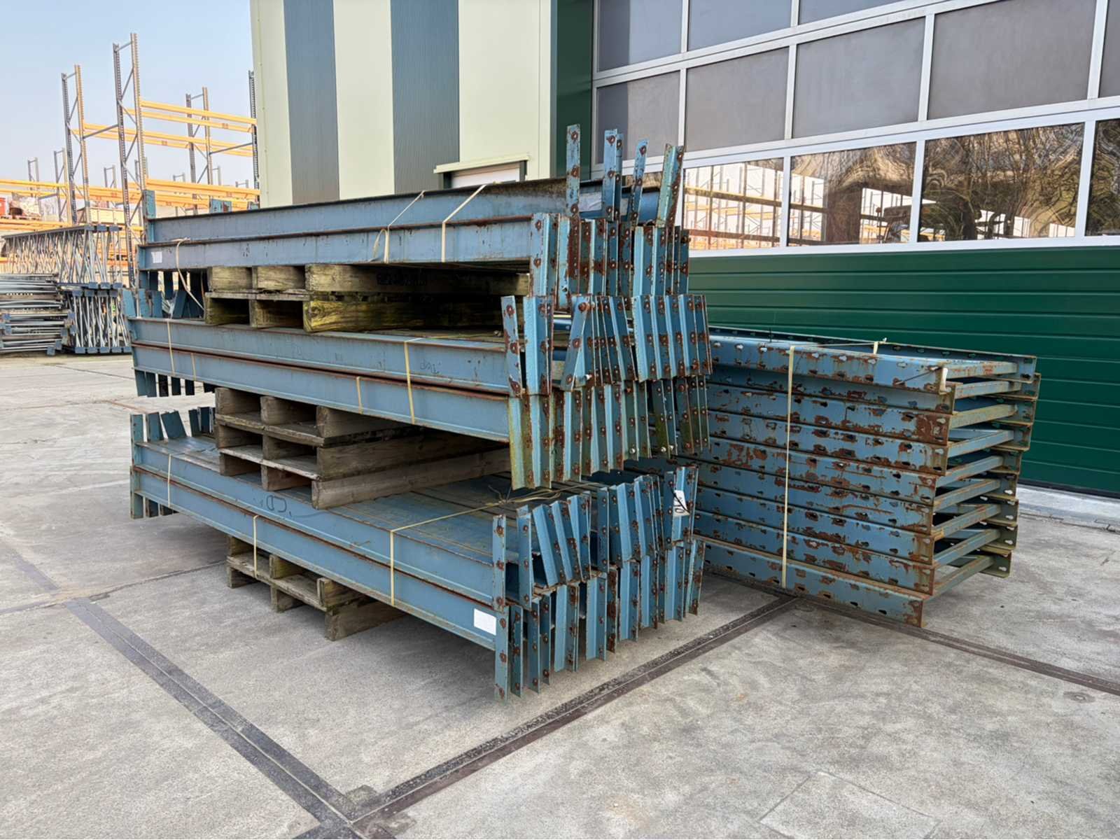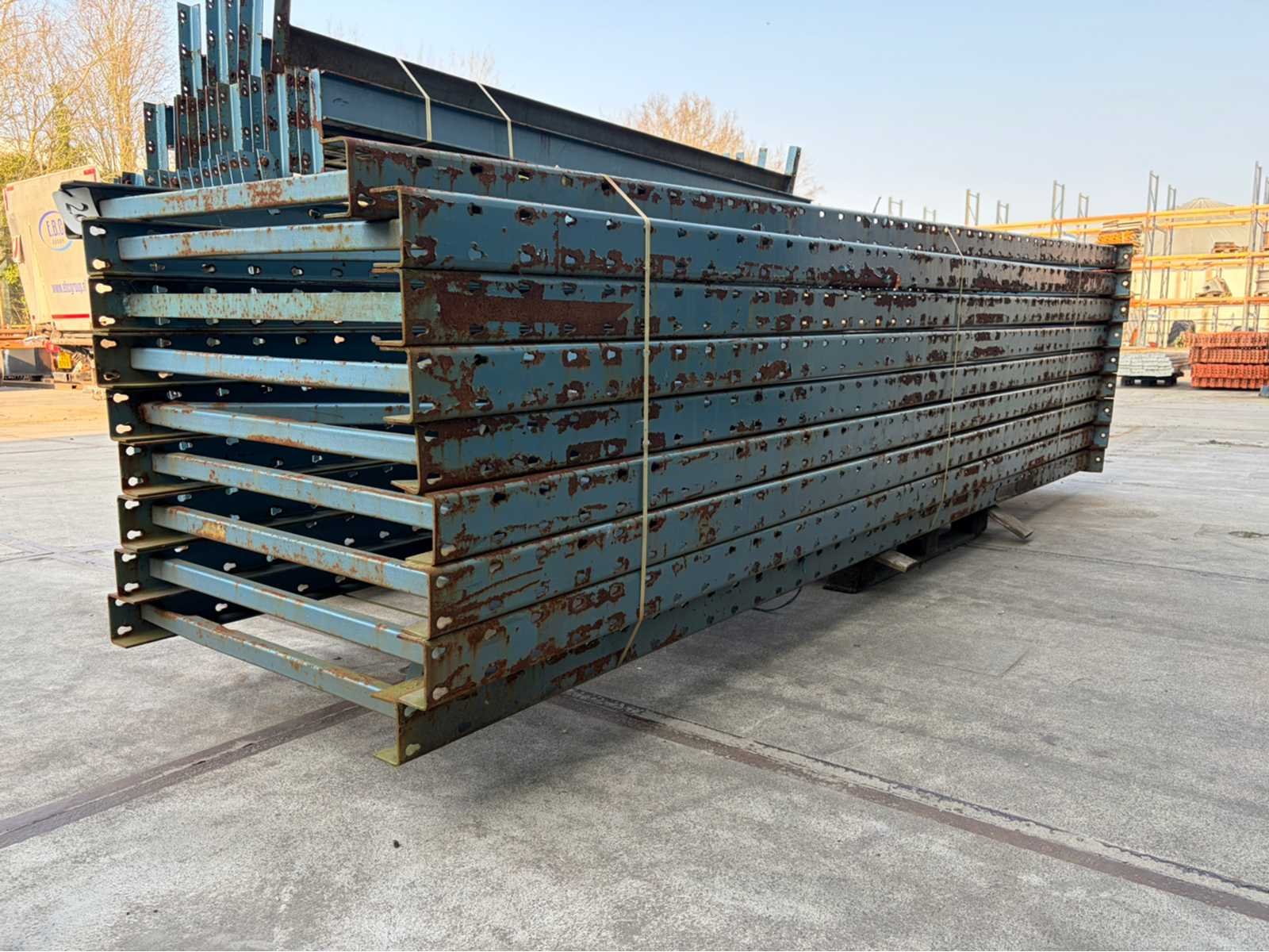 Sectie afmetingen 2700x850mm, transport afmetingen 4300x1800x1500mm Merk: AP Sectie afm. b: 2700mm Sectie diepte: 850mm Aantal staanders: 9 Aantal liggers: 80 Demontabel: true Materiaal: Metaal Lengte: 85cm Breedte: 270cm Hoogte: 430cm