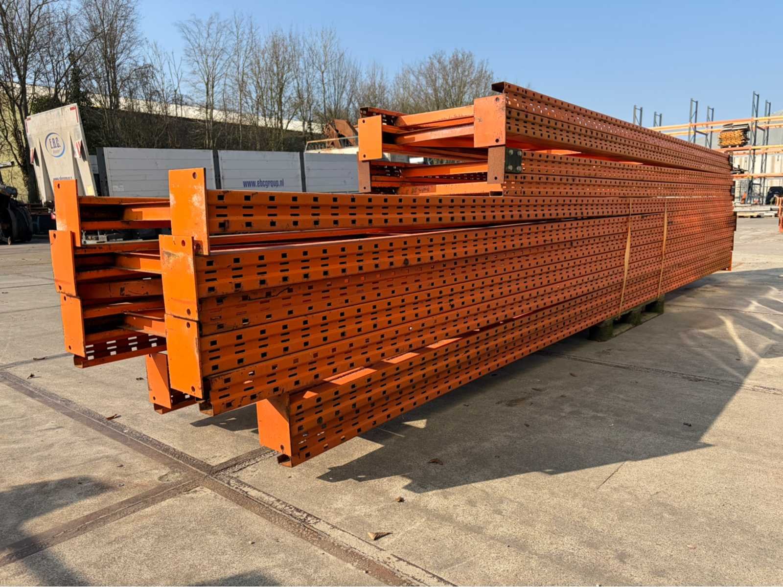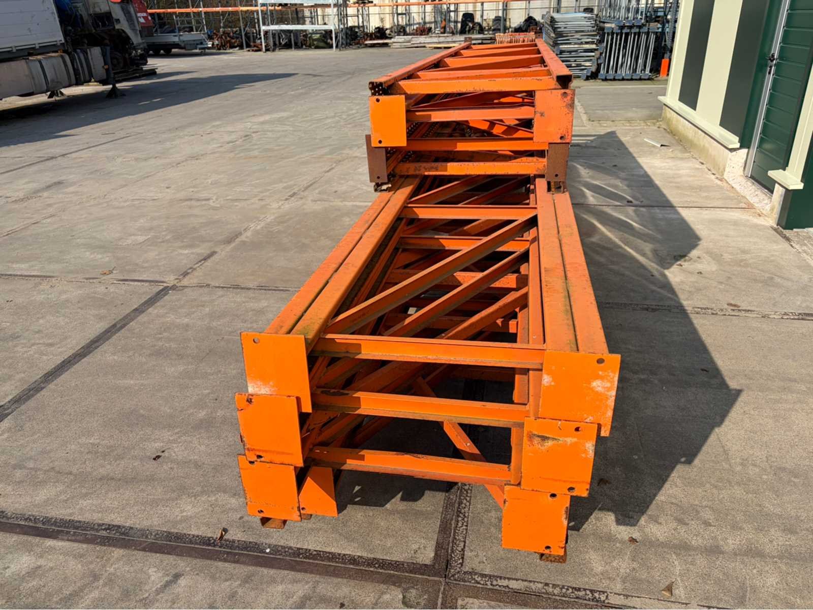 11 staanders, 4x staander hoogte 4650mm, 7x staander hoogte 6100mm, breedte/diepte 800mm, hartafstand bevestiging sleuven 75mm, transport afmetingen 6100x800x1500mm Merk: Redirack Type: HD 30T Sectie diepte: 800mm Aantal staanders: 11 Demontabel: true Materiaal: Metaal Totale afmeting Breedte: 80cm Totale afmeting Hoogte: 610cm Lengte: 80cm
