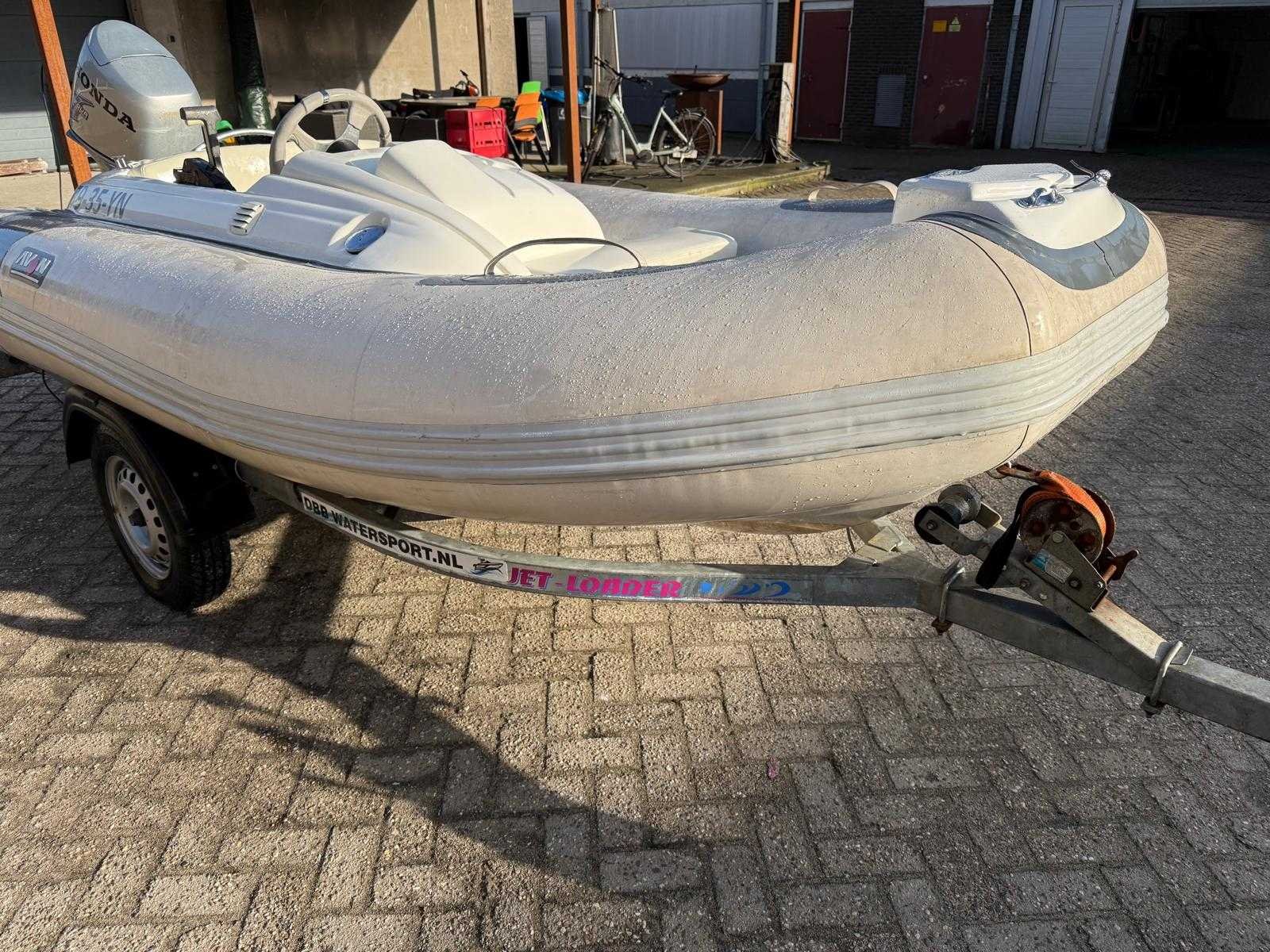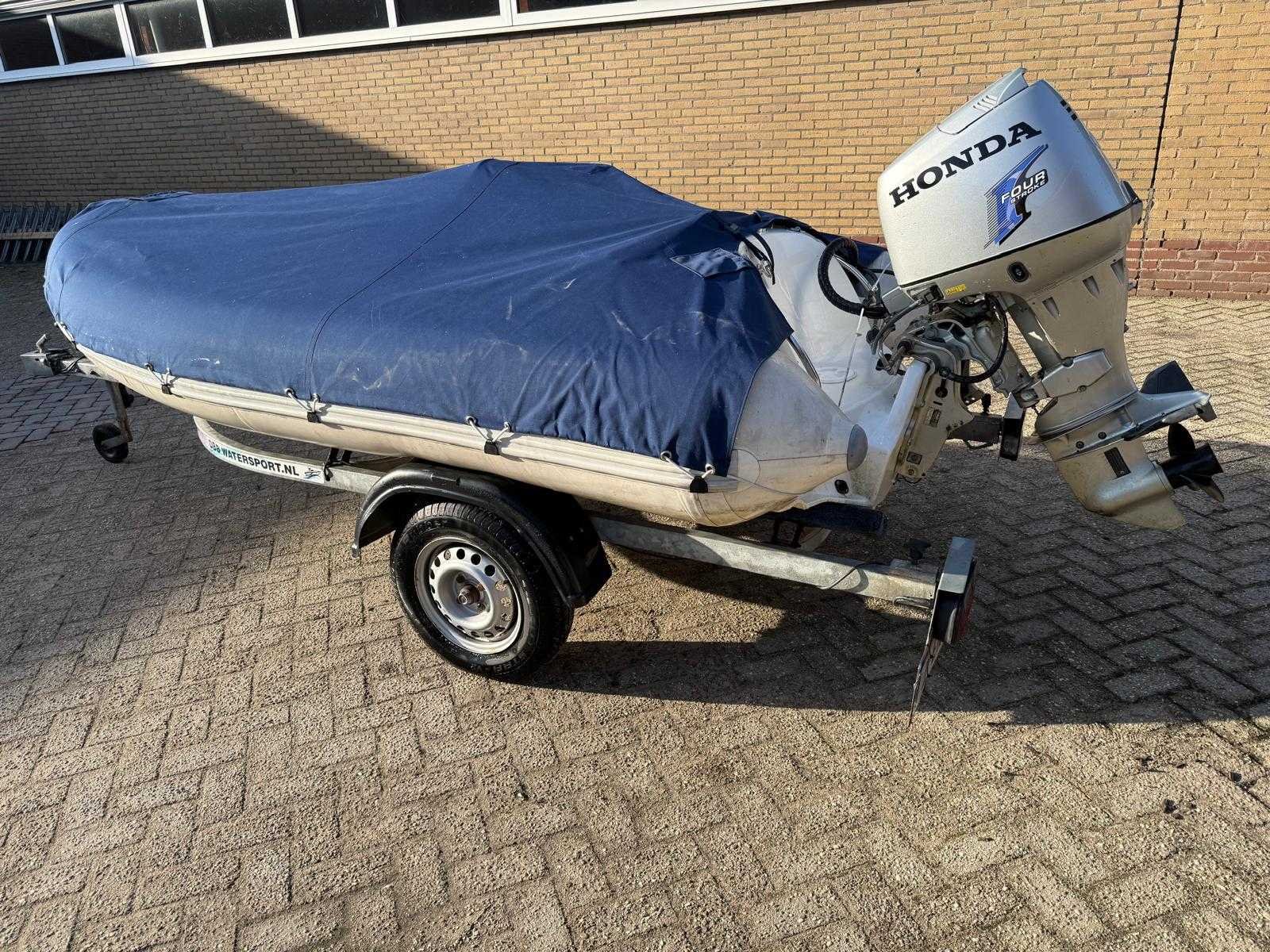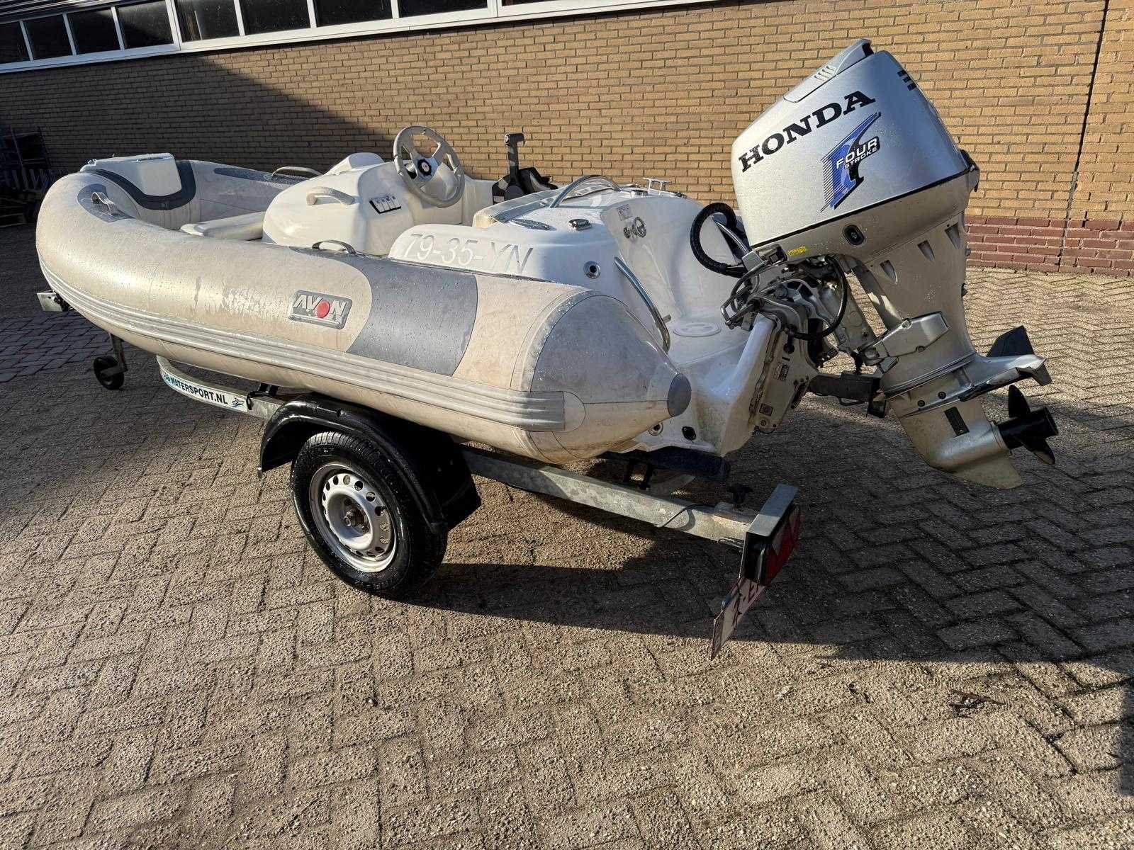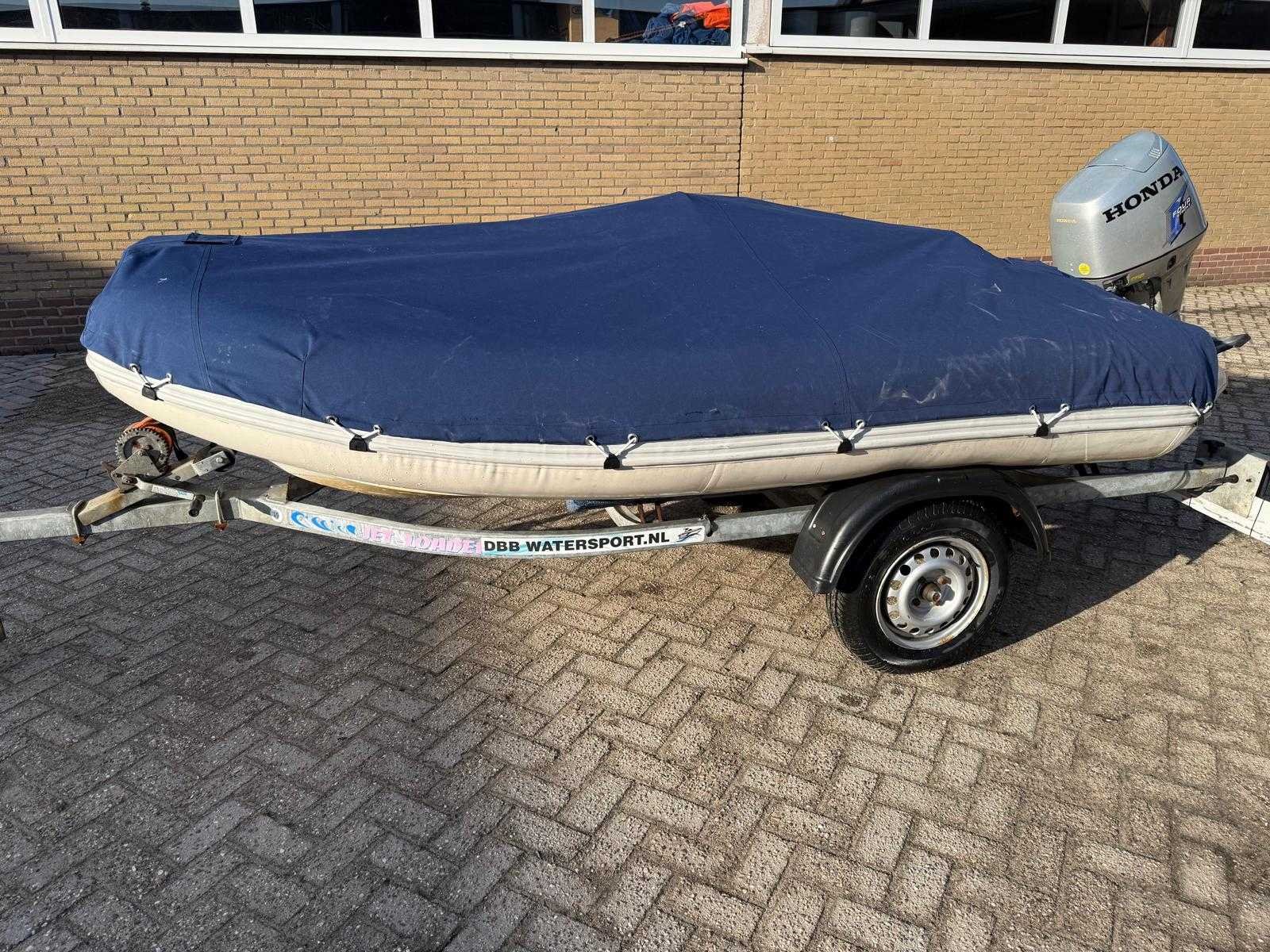 Honda 30 Pk, trim, elektrische start. Kussens, afdekzeil op maat. Opbergvakken, navigatieverlichting, hijspunten, zwemplateau. Geschikt voor 4 personen. Inclusief documenten. Laden is mogelijk, kosten hiervan € 175,- Ophalen alleen mogelijk op afspraak. Merk: Avon Type: SC320 Lengte over alles: 3.2m Breedte formaat: 1.7m Type motor: Honda Eigen gewicht: 250kg