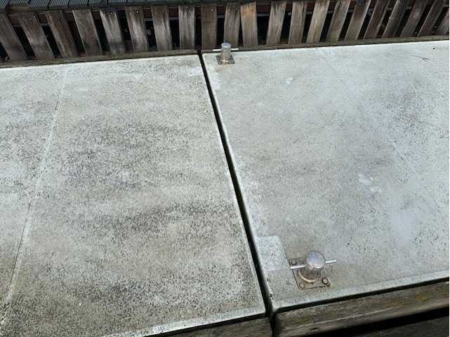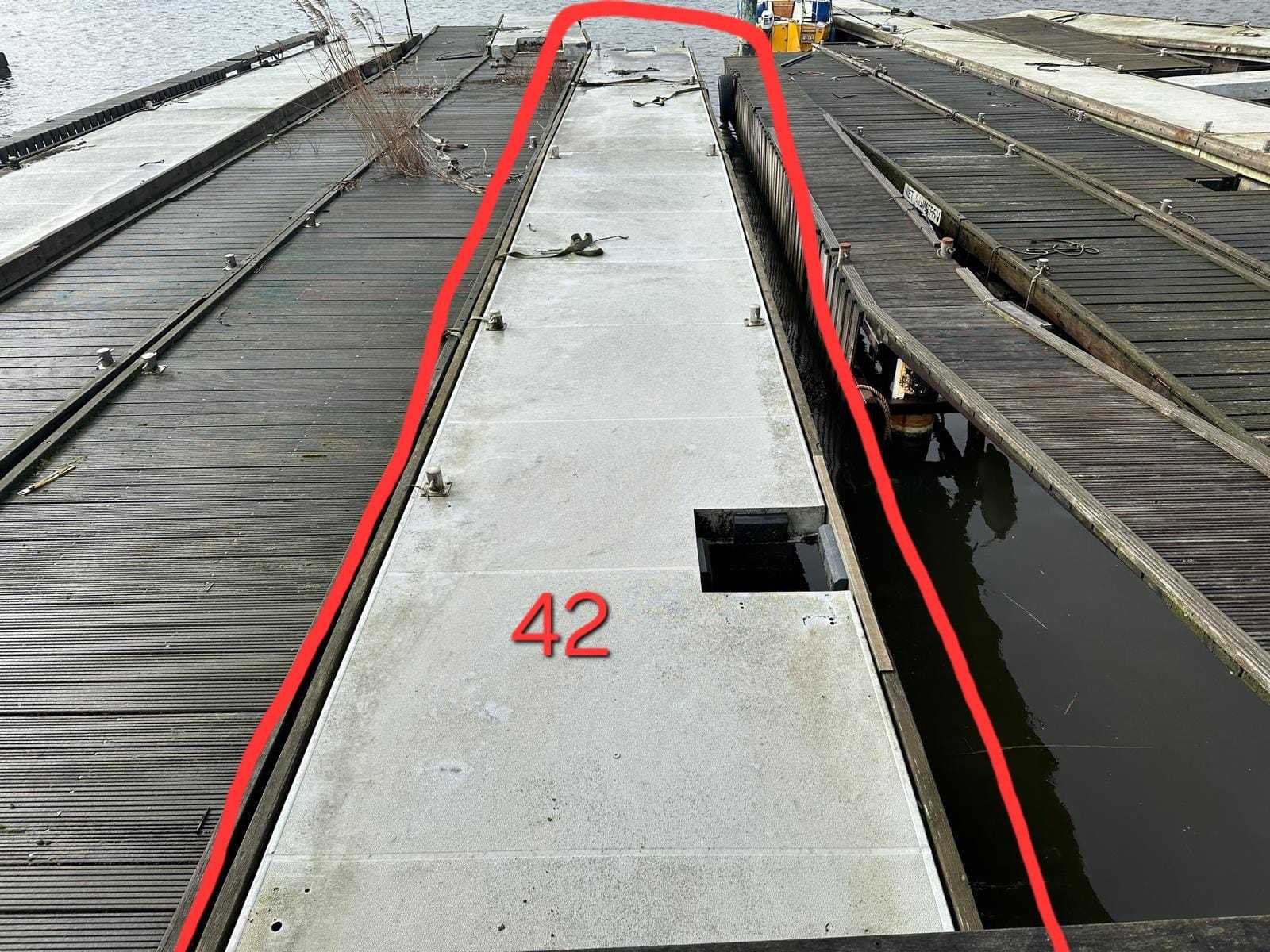 2x 10 Meter lang x 2,15 breedt. Materiaal piepschuim, omhulsel beton. Hoogte vanaf waterlijn +/- 60 cm. Laden is mogelijk, kosten € 175,- Laden en ophalen is alleen mogelijk op de ophaaldag!