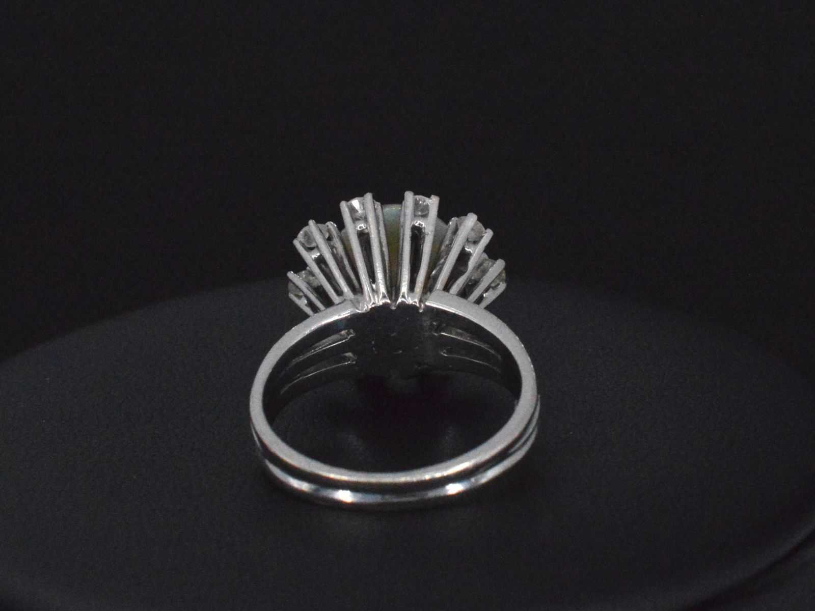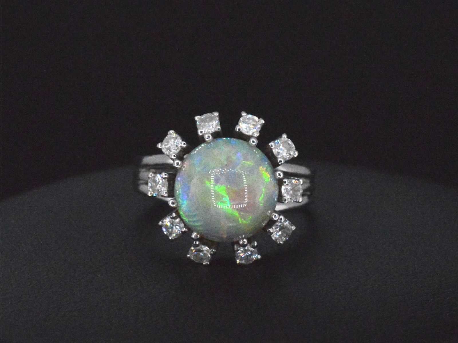 Samenvatting van gegevens Witgouden ring met diamanten en bijzondere opaal Diamant: Natuurlijk; Aantal: 10 stuks; Slijpvorm: Briljant geslepen; Gewicht (carat): 0.50 carat; Kleur: F-G; Zuiverheid: VS-SI; Slijpkwaliteit: Mooi; Edelsteen: Opaal; Slijpvorm: Cabochon; Gewicht (carat): 2.00 carat; Kleur: Groen met paars, oranje en geel (intens) kleurenspel; Juweel: Ring; Gewicht: 6 gram; Ringmaat (op maat gemaakt*): 52 (16.5 mm); Materiaal: 14k goud (585); Conditie: Vintage; Verpakking: Luxe sieradendoos; Toelichting: De kwaliteit is overgenomen van het rapport behorend bij item. De waardebepaling is een beoordeling van een gecertificeerde diamantair, gebaseerd op consumentenprijzen.; Consumentenprijs: € 8.750,- Within 14 days Materiaal: Goud Voornaamste diamant: Natuurlijk Gewicht diamant: 0.50ct Edelsteen: Opaal Totaal gewicht: 6g Keurmerk: 585 Lage schatting: 7000€ Hoge schatting: 8750€ Kleur diamant: F-G Slijpvorm diamant: Briljant geslepen Slijpkwaliteit diamant: Mooi Zuiverheidsgraad diamant: VS-SI Kleur edelsteen: Groen met paars, oranje en geel (intens) kleurenspel Slijpvorm edelsteen: Cabochon