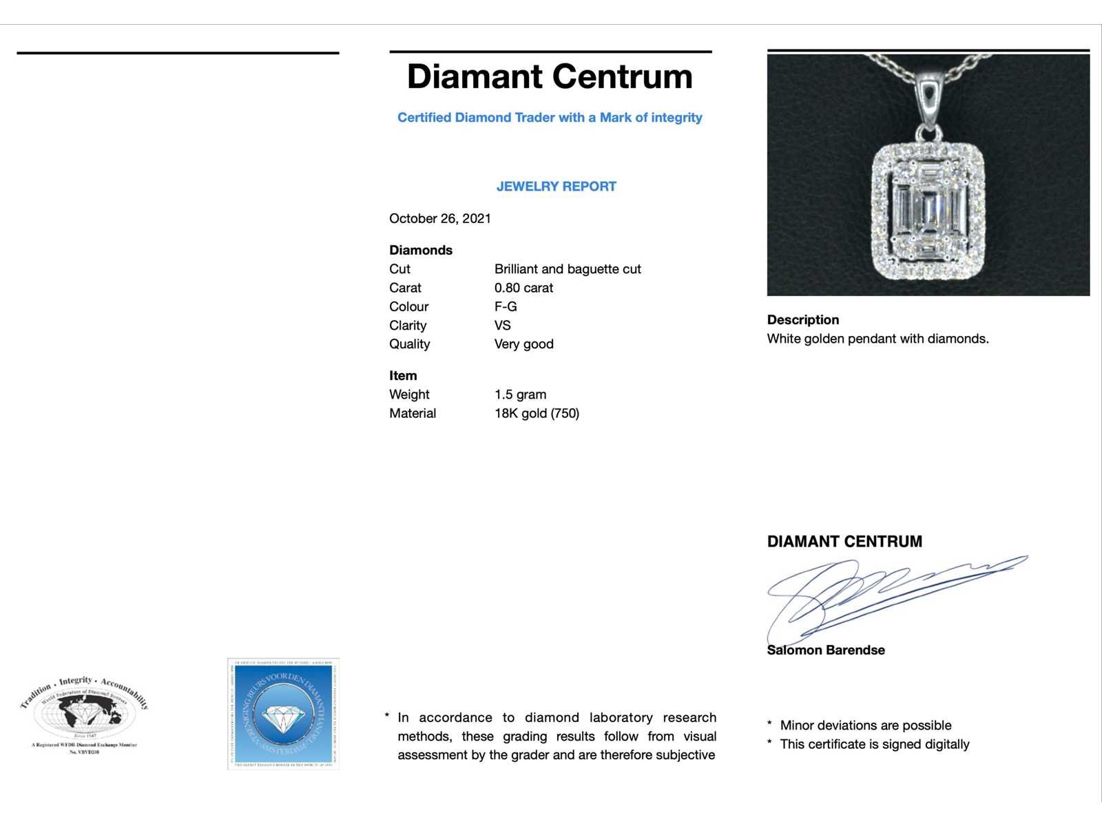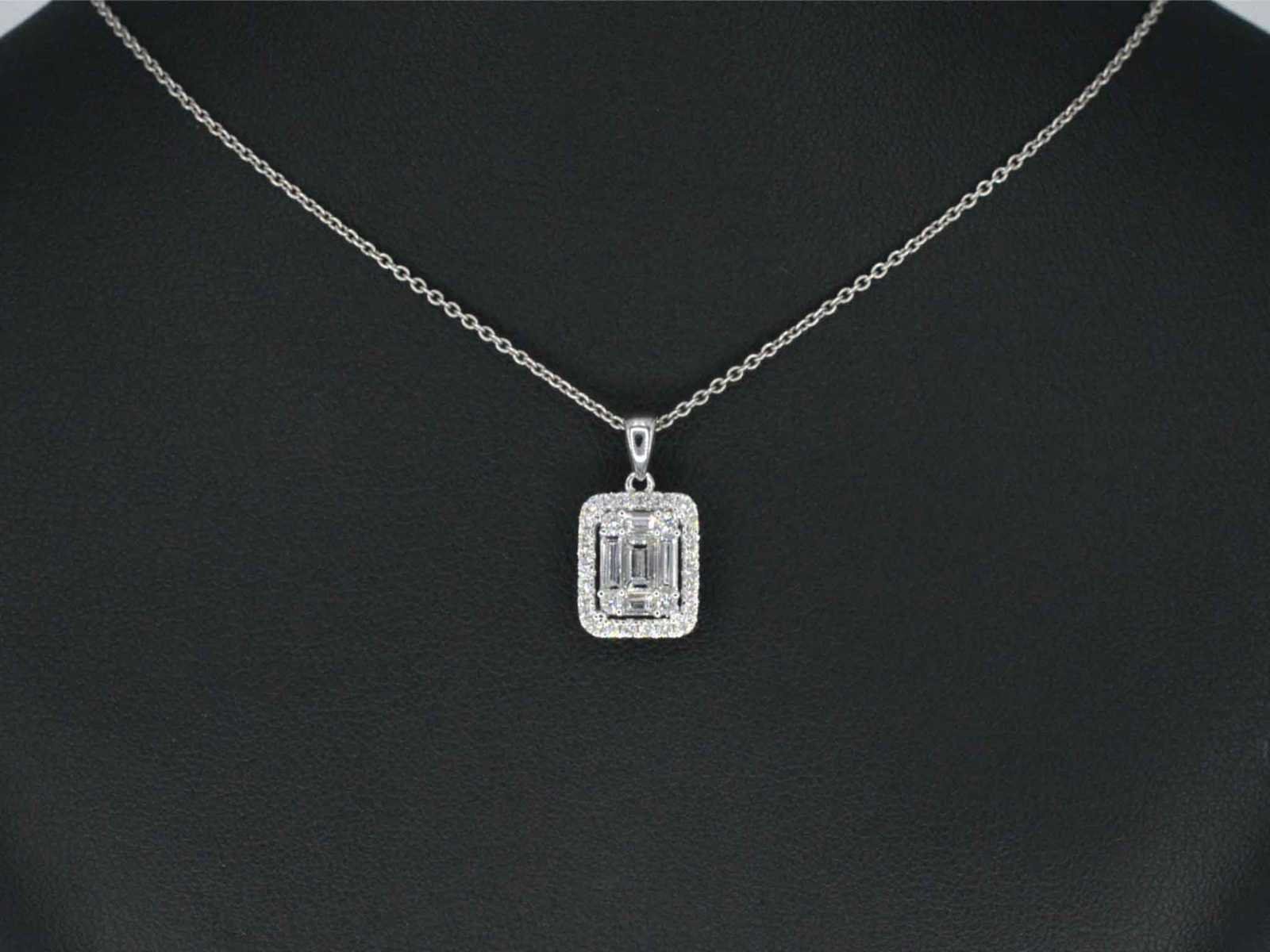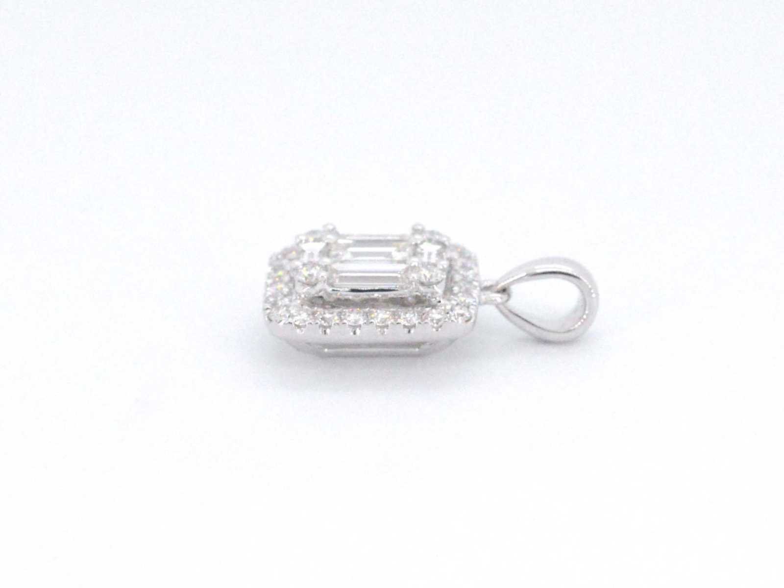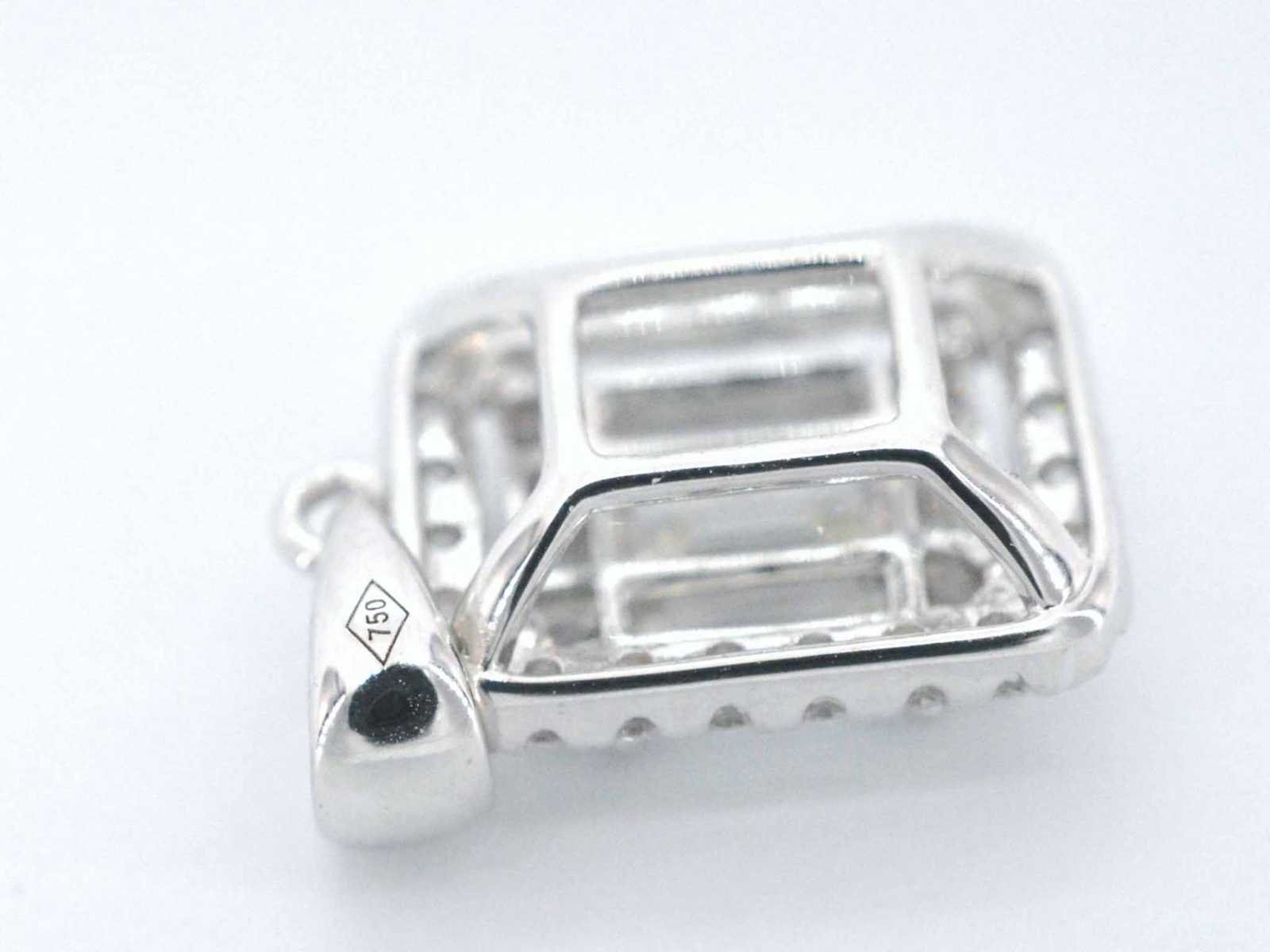 Samenvatting van gegevens Witgouden hanger met diamanten en emerald shape in het midden Diamant: Natuurlijk; Slijpvorm: Briljant geslepen en baguette geslepen; Gewicht (carat): 0.80 carat; Kleur: F-G; Zuiverheid: VS; Slijpkwaliteit: Zeer mooi; Juweel: Hanger (excl. ketting); Gewicht: 1.5 gram; Materiaal: 18K goud (750); Conditie: Nieuw; Verpakking: Luxe sieradendoos; Toelichting: De kwaliteit is overgenomen van het rapport behorend bij item. De waardebepaling is een beoordeling van een gecertificeerde diamantair, gebaseerd op consumentenprijzen.; Consumentenprijs: € 6.930,- Within 14 days Materiaal: Goud Voornaamste diamant: Natuurlijk Kleur diamant: F-G Gewicht diamant: 0.80ct Slijpvorm diamant: Briljant geslepen en baguette geslepen Slijpkwaliteit diamant: Zeer mooi Zuiverheidsgraad diamant: VS Totaal gewicht: 1.5g Keurmerk: 750 Lage schatting: 5544€ Hoge schatting: 6930€