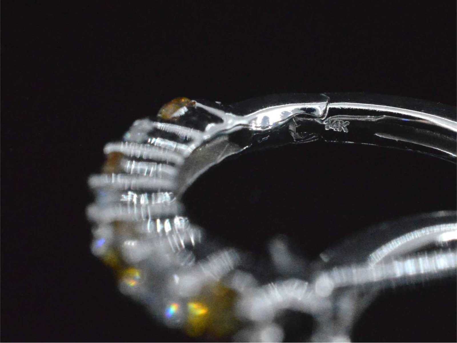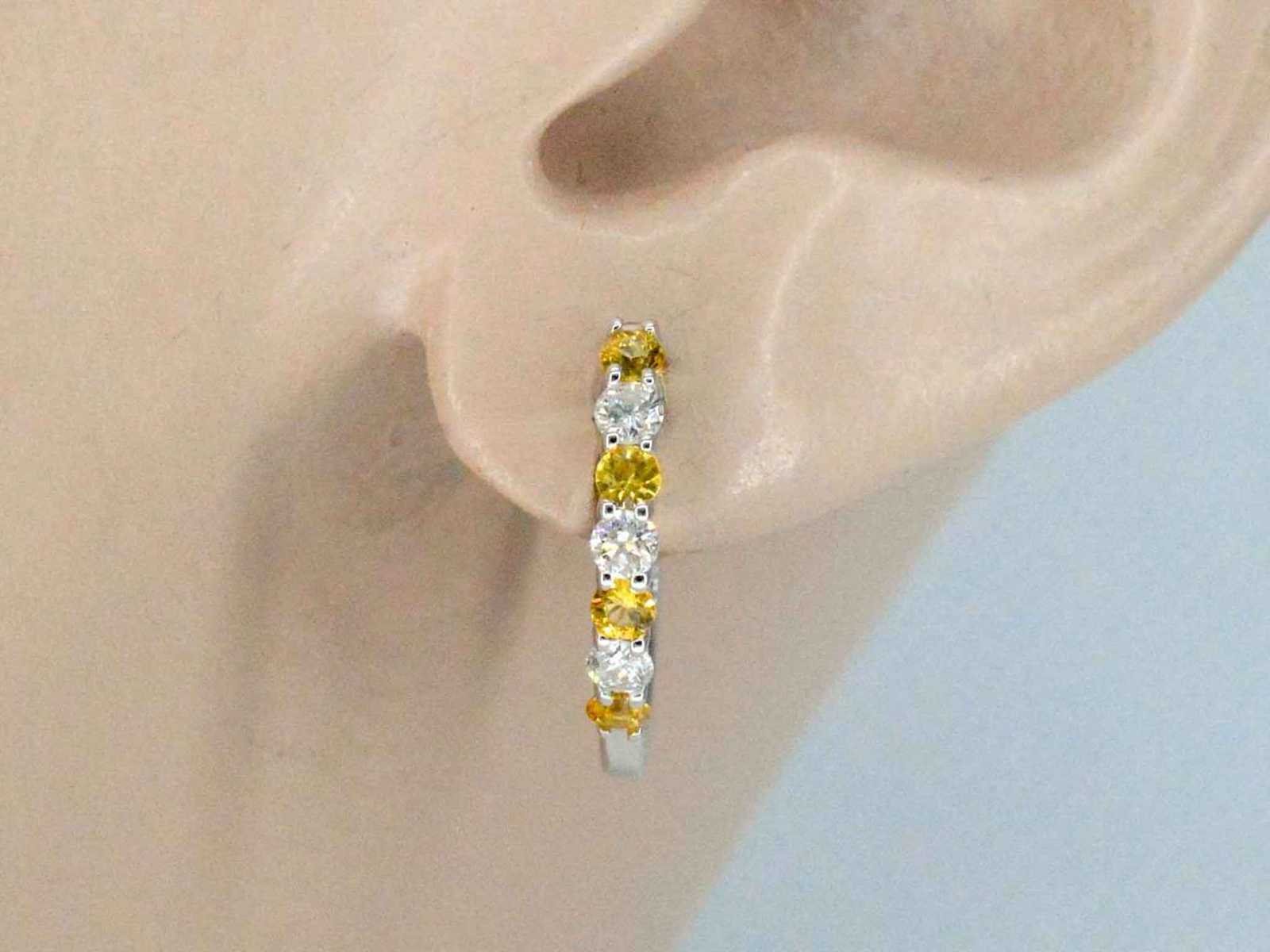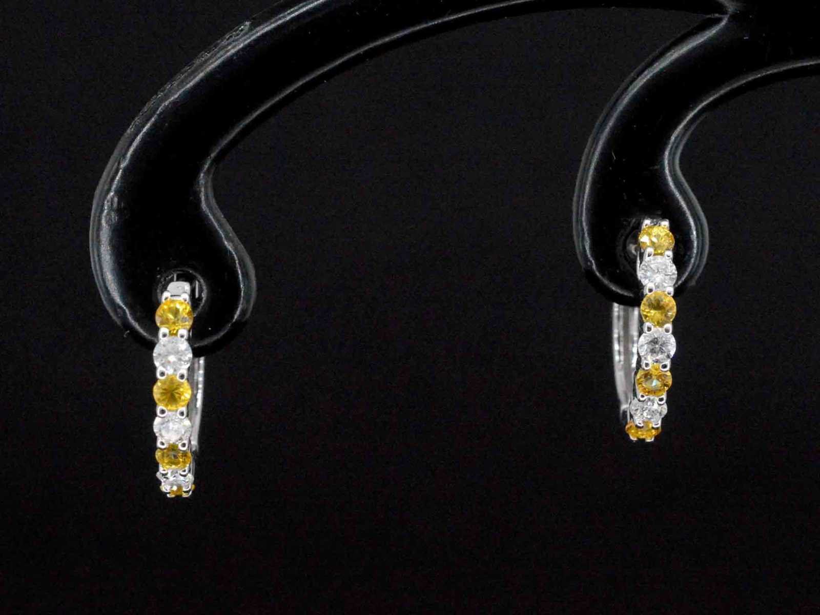 Samenvatting van gegevens Witgoud oorbellen met oranje saffieren en diamanten Diamant: Natuurlijk; Aantal: 6 stuks; Slijpvorm: Briljant geslepen; Gewicht (carat): 0.24 carat; Kleur: F; Zuiverheid: SI; Slijpkwaliteit: Zeer mooi; Edelsteen: Saffier; Aantal: 6 stuks; Slijpvorm: Rond geslepen; Gewicht (carat): 0.24 carat; Kleur: Oranje; Zuiverheid: Met natuurlijke insluitsels; Juweel: Oorbellen; Gewicht: 1.8 gram; Materiaal: 14k goud (585); Conditie: Zo goed als nieuw; Verpakking: Luxe sieradendoos; Toelichting: De kwaliteit is overgenomen van het rapport behorend bij item. De waardebepaling is een beoordeling van een gecertificeerde diamantair, gebaseerd op consumentenprijzen.; Consumentenprijs: € 1.925,- Within 14 days Materiaal: Goud Voornaamste diamant: Natuurlijk Kleur diamant: F Gewicht diamant: 0.24ct Slijpvorm diamant: Briljant geslepen Slijpkwaliteit diamant: Zeer mooi Zuiverheidsgraad diamant: SI Edelsteen: Saffier Kleur edelsteen: Oranje Slijpvorm edelsteen: Rond geslepen Zuiverheidsgraad edelsteen: Met natuurlijke insluitsels Totaal gewicht: 1.8g Keurmerk: 585 Lage schatting: 1540€ Hoge schatting: 1925€