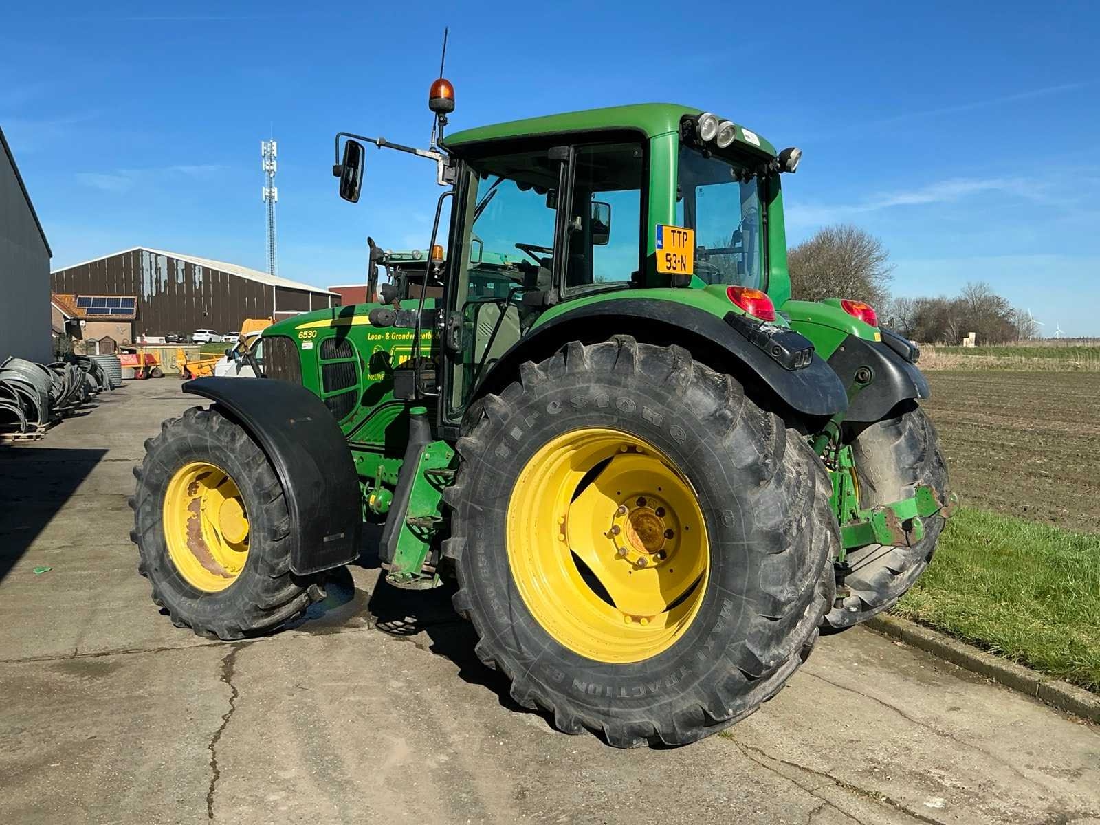 Voorzien van onder andere: geveerde vooras, sauter fronthef en aftakas, werkverlichting, spatbordbediening, trekhaak, radio. Merk: John deere Type: 6530 Bouwjaar: 2007 Kenteken: TTP-53-N Afgelezen urenstand: 17475 Versnellingsbaktype: Handgeschakeld/Powershift Aantal hydraulische ventielen voor: 2 Aantal hydraulische ventielen achter: 3 Bandenmaat voor: 540/65R28 Bandenmaat achter: 650/65R38 Fronthefinrichting: true Frontaftakas: true Totale afmeting L: 5100mm Totale afmeting Breedte: 2600mm Totale afmeting Hoogte: 3159mm Chassisnummer: L06530G522535 Datum eerste toelating: 2007-06-30