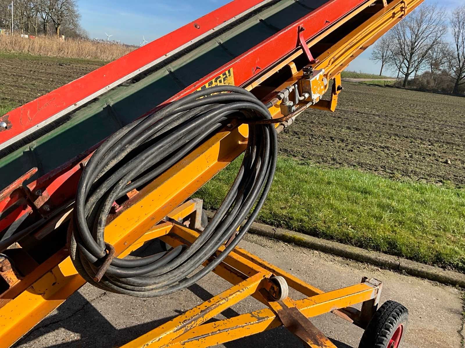 3 meter lange band, Hydraulisch aangedreven, 40 cm zwenkbaar/roteerbaar naar links en rechts Merk: Samon Type: EN 3 H Transportband afm. b: 550mm Totale afmeting L: 3000mm Totale afmeting Breedte: 2000mm Totale afmeting Hoogte: 2500mm