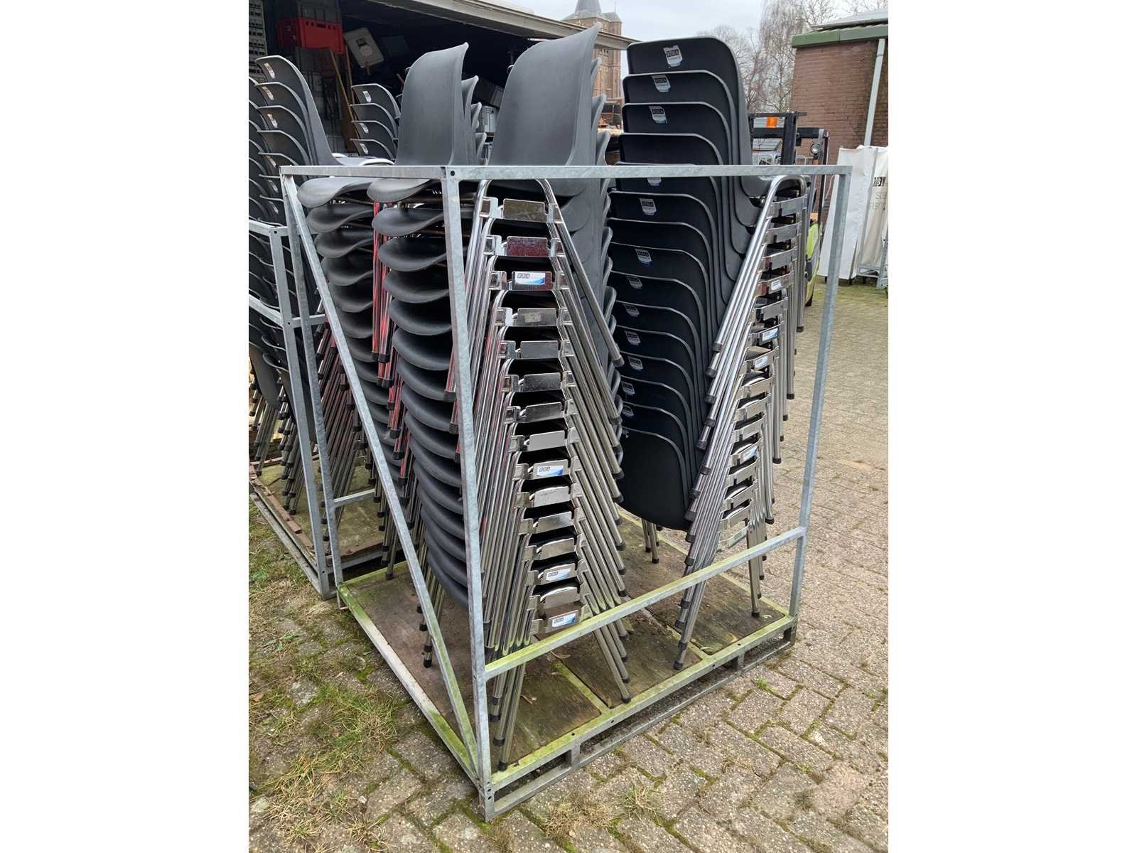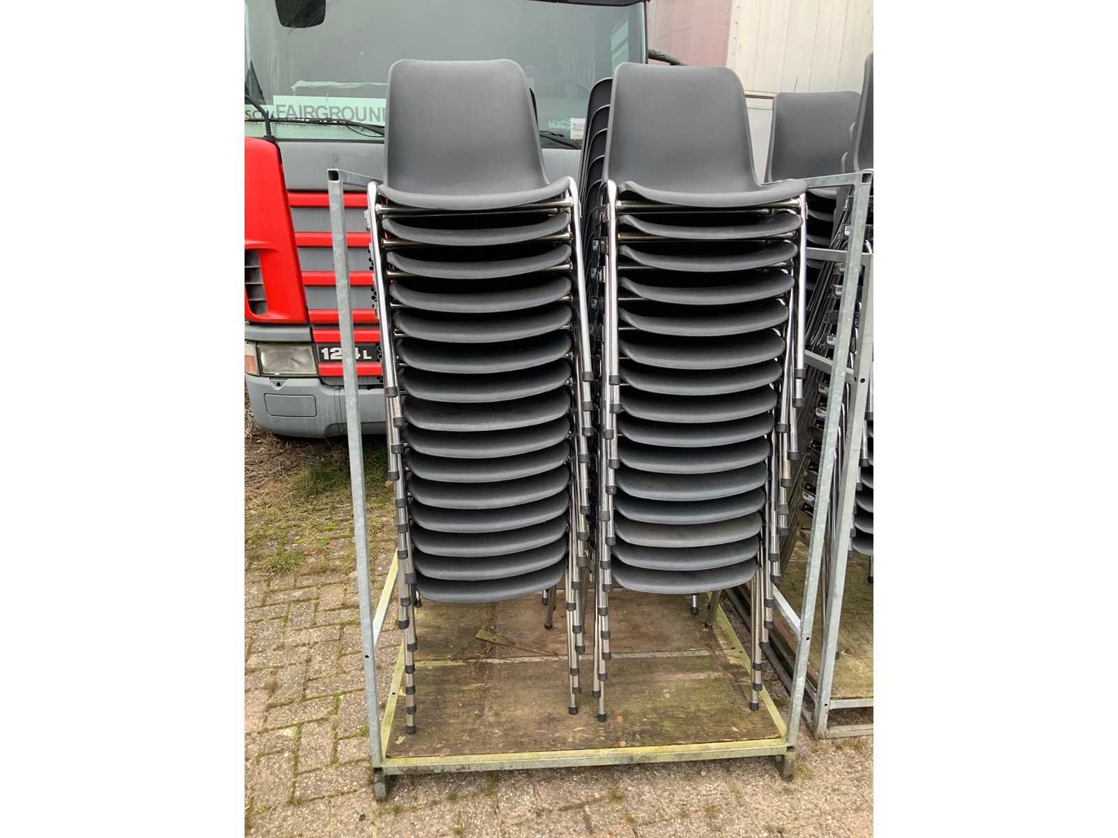 Canteen chair grey connectable including transport recessed pallet 128 x 117 x197cm Kleur: grey Materiaal: plastic and chroom
