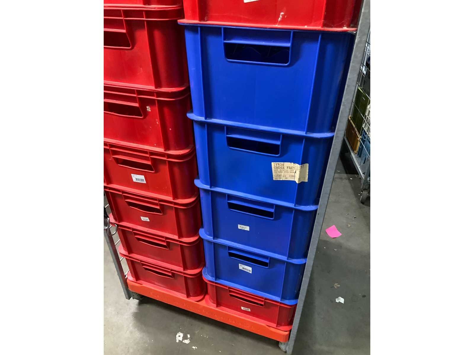 13x red (50 compartment) 75x 38 x 18 4x bleu (32 compartment) 75x 38 x 22 Excluded transportation car