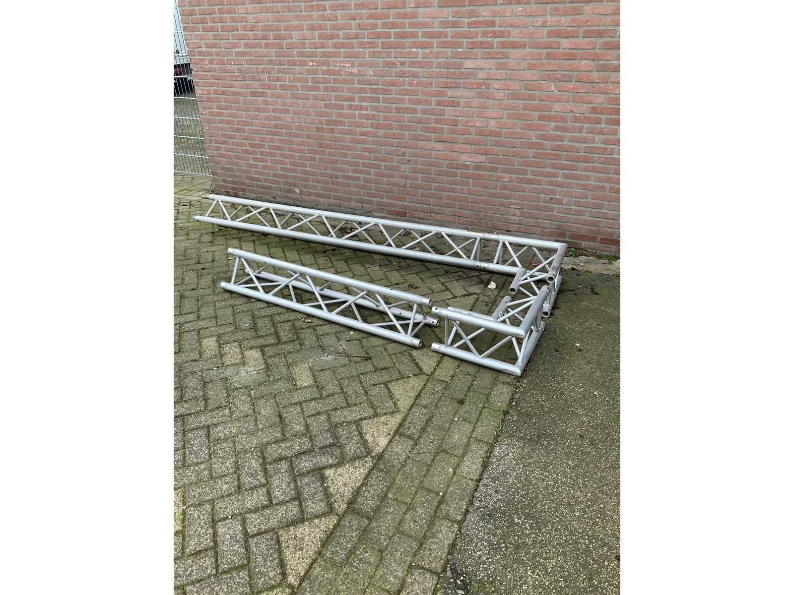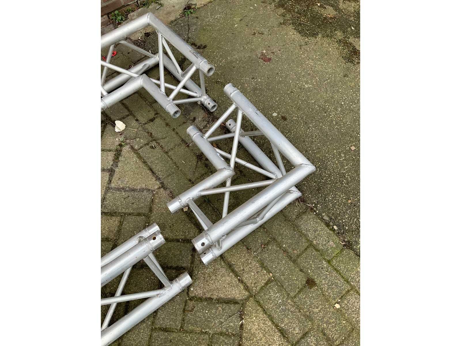 - 1x length: 250cm - 1 x length: 150cm - 2x corner 50x50cm Merk: Eurotruss Driehoek model: true