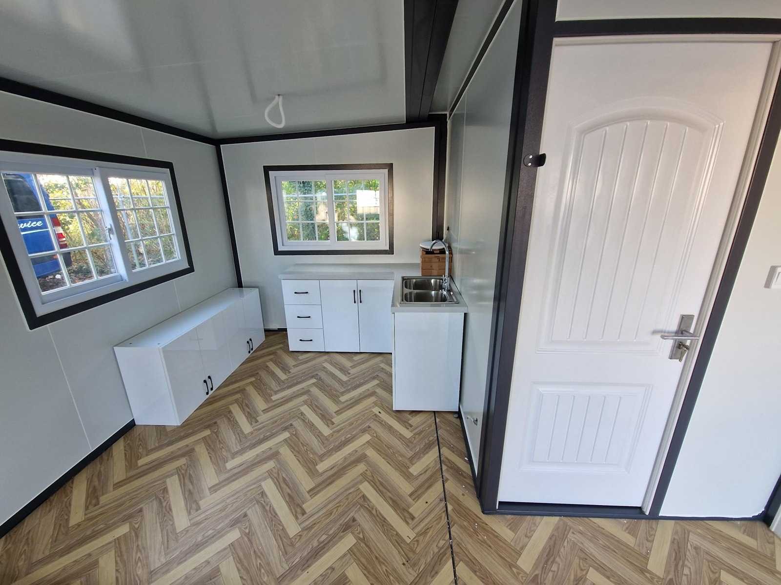 Voorzien van geisoleerd dak en wanden, keuken met onder en bovenkant kasten, badkamer met grote douche, wastafel met spiegelkast, toilet, visgraat vinyl vloer, ventilator, 2 slaapkamers, iedere ruimte voorzien van stopcontacten en verlichting, kunststof kozijnen met dubbel glas, alle deuren voorzien van slot, volledig afsluitbaar, alle aansluiting voor riolering, water aan en afvoer en elektra gereed om aan te sluiten, exterieur voorzien van kunststof houtlook panelen, transportmaat 5850x2200x 2550 mm, ongebruikt bouwjaar 2025 Merk: Greenland Model: luxe 19ft*20ft Product type: 36 m2 Kleur: donkerbruin Gewicht: 3550 Lengte: 5850 Breedte: 6220 Hoogte: 2550