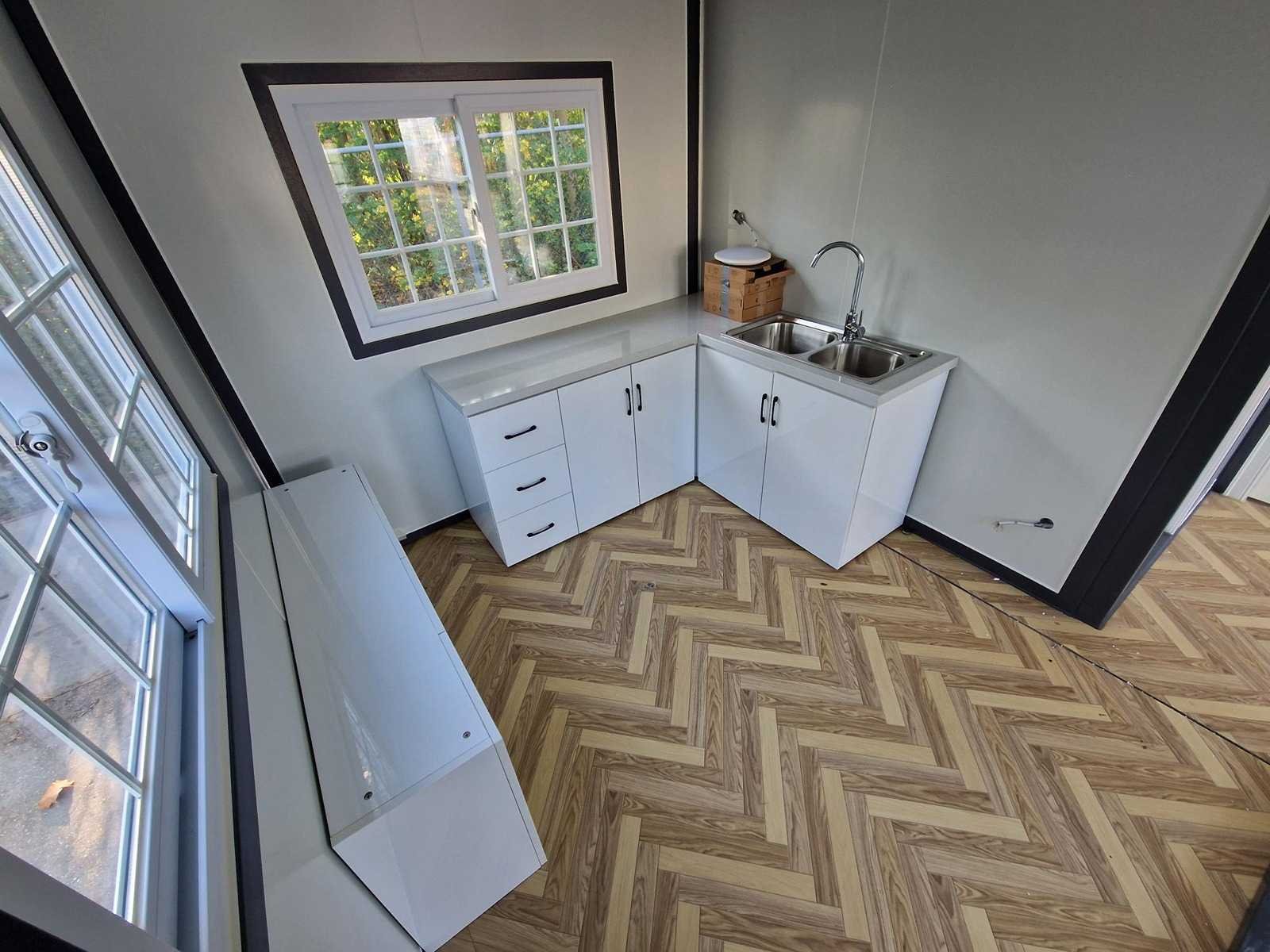 Voorzien van geisoleerd dak en wanden, keuken met onder en bovenkant kasten, badkamer met grote douche, wastafel met spiegelkast, toilet, visgraat vinyl vloer, ventilator, 2 slaapkamers, iedere ruimte voorzien van stopcontacten en verlichting, kunststof kozijnen met dubbel glas, alle deuren voorzien van slot, volledig afsluitbaar, alle aansluiting voor riolering, water aan en afvoer en elektra gereed om aan te sluiten, exterieur voorzien van kunststof houtlook panelen, transportmaat 5850x2200x 2550 mm, ongebruikt bouwjaar 2026 Merk: Greenland Model: luxe 19ft*20ft Product type: 36 m2 Kleur: donkerbruin Gewicht: 3550 Lengte: 5850 Breedte: 6220 Hoogte: 2550