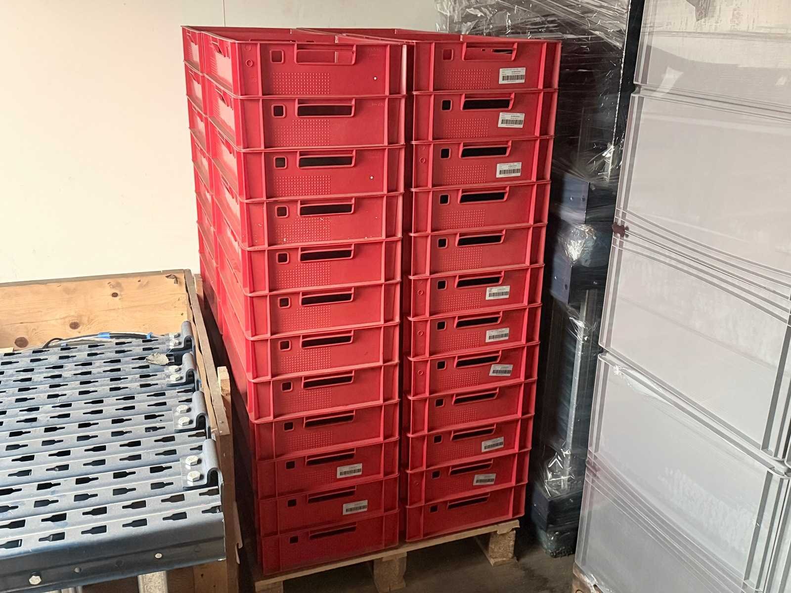 Grote partij nette gebruikte magazijnbakken ±600x400x125mm. Gestapeld op pallets. Let op juiste vervoer om palletst zo te vervoeren. Totaal 1 partij van 48 bakken. Afmeting l: 600mm Afmeting b: 400mm Afmeting h: 125mm Kunststof: true