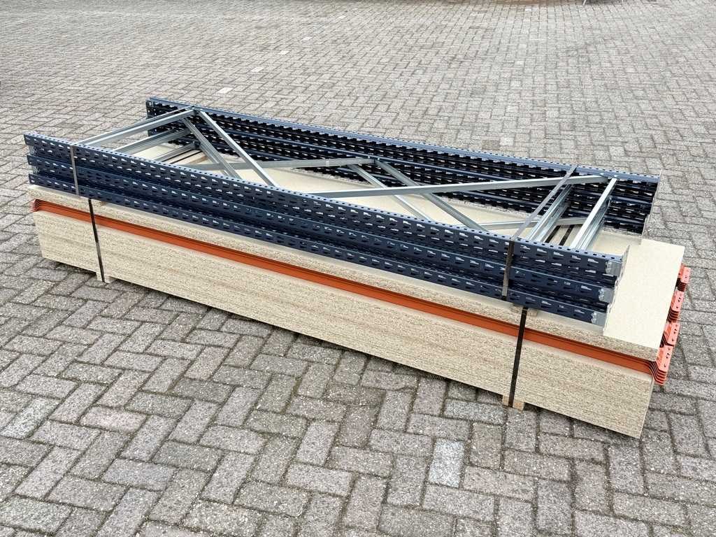 5 staanders 250x800cm + 24 liggers 270cm,+ 12 legborden , gedemonteerd 11,05m Lang. Merk: Mecalux Aantal staanders: 5 Aantal liggers: 24 Aantal legborden: 12 Demontabel: true Lengte: 11,05cm Breedte: 80cm Hoogte: 250cm