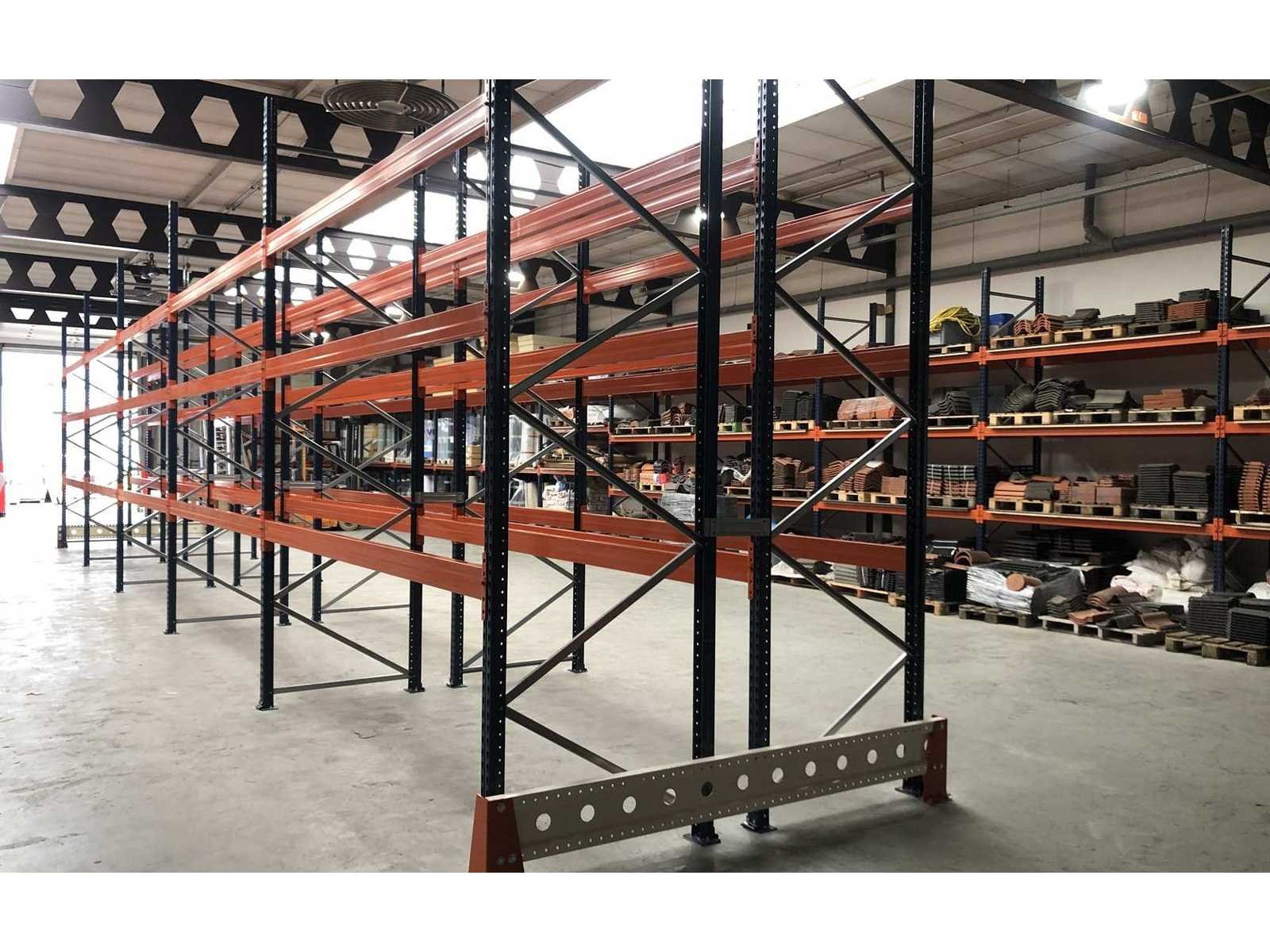Palletstelling: ± 2 rijen van 14m lang. keuring netjes. Ongebruikt 12 staanders 4000x1100mm 56 liggers 2700mm lang. Geheel is gedemonteerd en klaar voor afhalen. Zonder aanrijbeveiliging. Alles is gedemonteerd en ligt klaar voor transport. Sectie afm. b: 2700mm Aantal staanders: 12 Aantal liggers: 56 Demontabel: true Hoogte: 400cm