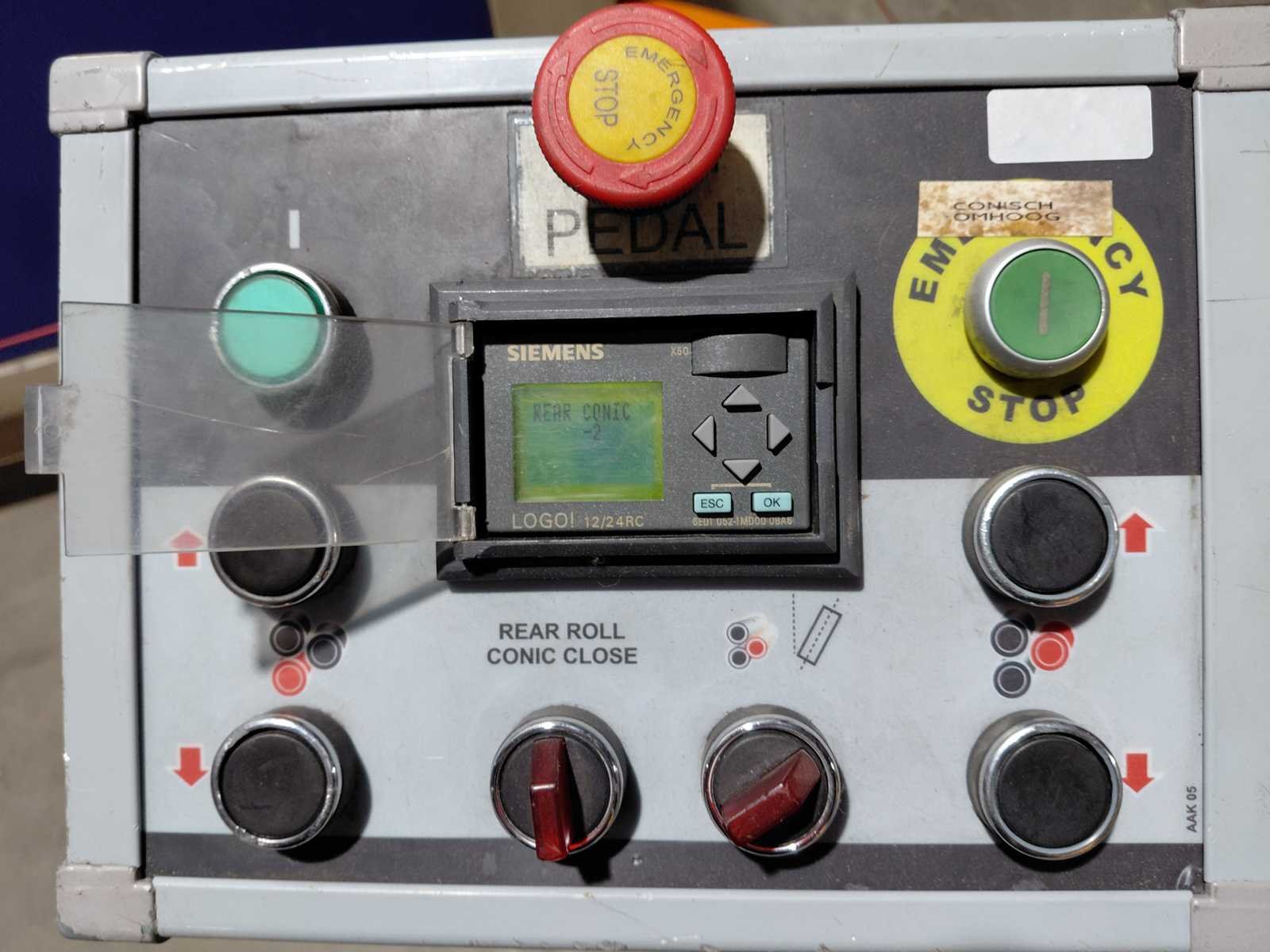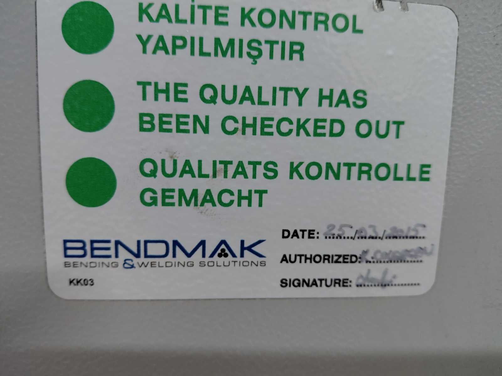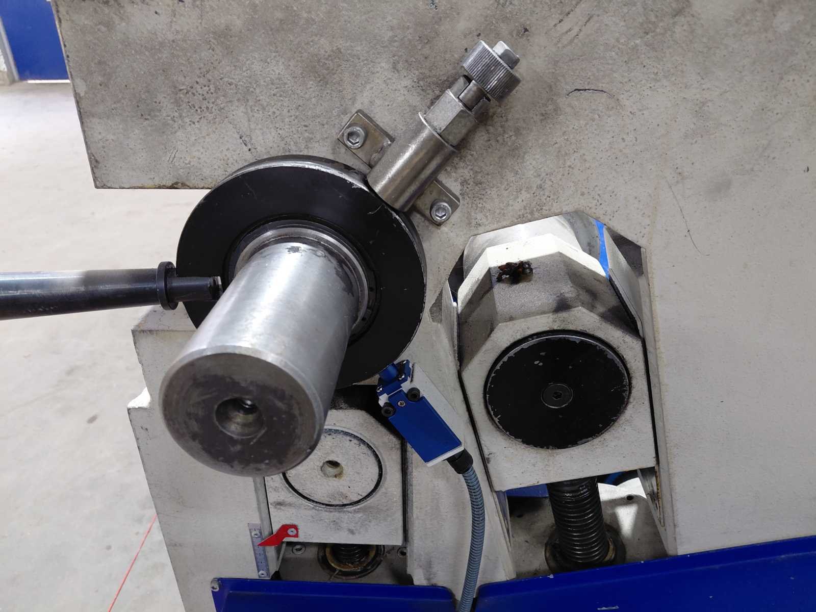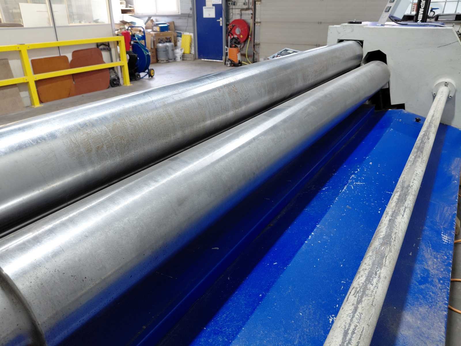 BENDMAK CYL-ST-170-20-5,0 plaatwals ; Werkend getest ; werkbreedte 2100 mm ; maximale plaatdikte 5 mm ; voorbuiging 5 mm ; bovenrol Ø 170 mm ; minimale buigdiameter 255 mm ; motorvermogen 4 kW ; buigsnelheid 4,8 m/min ; afmetingen 4000 x 1100 x 1130 mm ; gewicht 2300 kg ; bouwjaar 2015 ; kegelbuiginrichting ; inductiegeharde rollen ; gemotoriseerde op- en neergaande beweging van de achterrol ; digitale uitlezing voor positie van de achterrol ; 2 separate bedieningsunits ; gietijzeren machinebody Merk: Bendmak Type: CYL-ST170-20/5 Bouwjaar: 2015 Serienummer: SYLST-012 Max. plaatdikte: 5mm Voetbediening: true Motorvermogen (kW): 4kW Aansluiting: 400V Machinegewicht: 2300kg Afmeting l: 1100mm Afmeting b: 4000mm Afmeting h: 1130mm