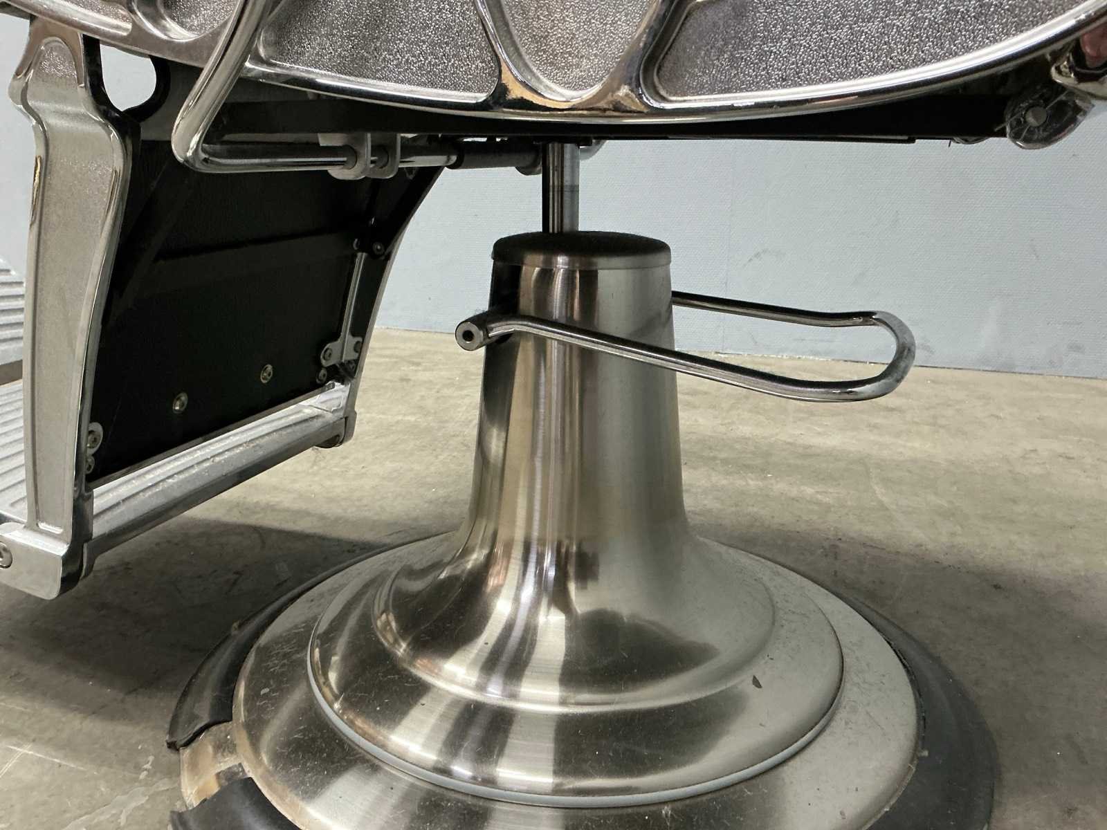 Een verstelbare Barber Chair Merk: Tomator Kleur: Zwart Lengte: 108cm Breedte: 68cm Hoogte: 112cm Materiaal: Leer