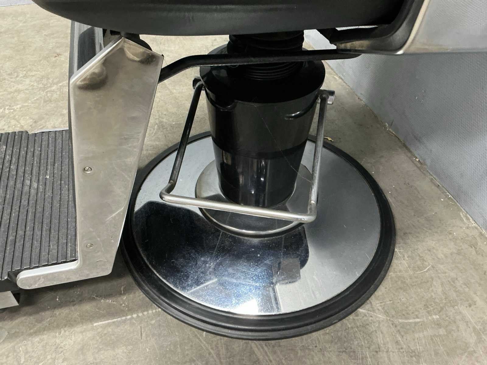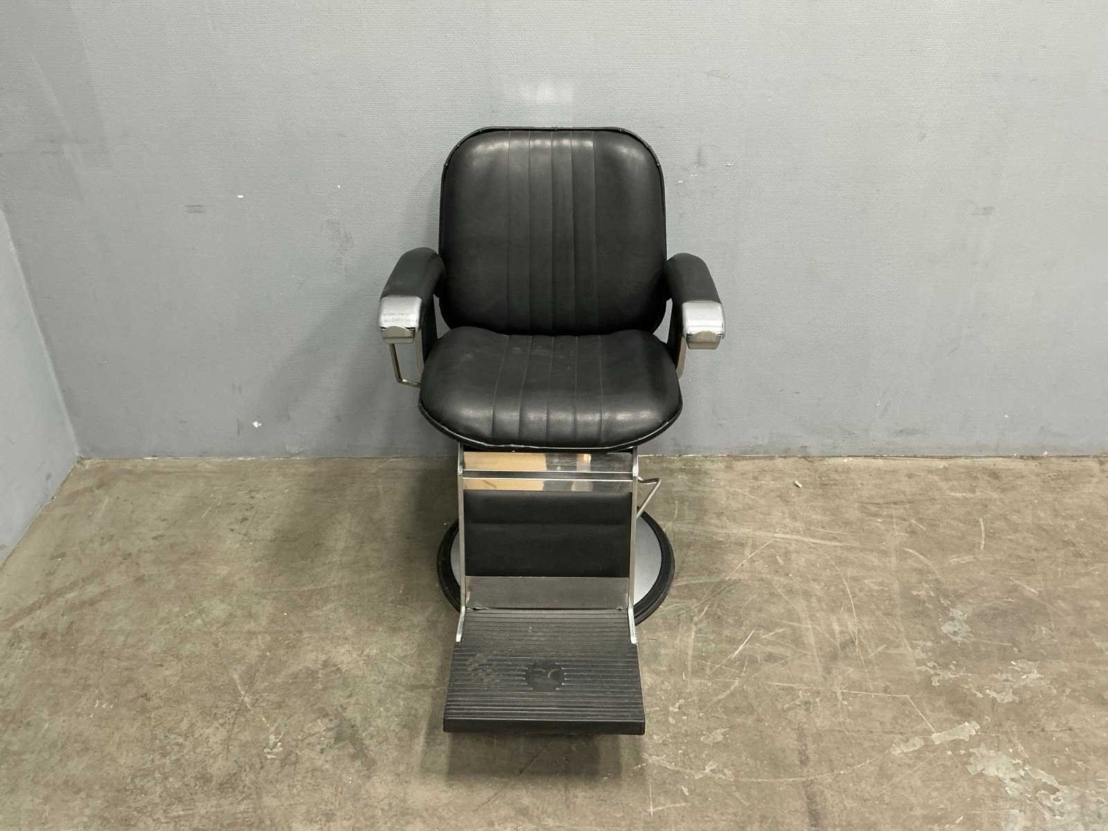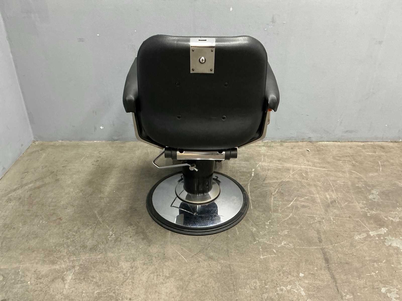 Verstelbare Barber Chair met hoofdsteun Merk: Barber Pub Kleur: Zwart Lengte: 95cm Breedte: 66cm Hoogte: 98cm Materiaal: Leer