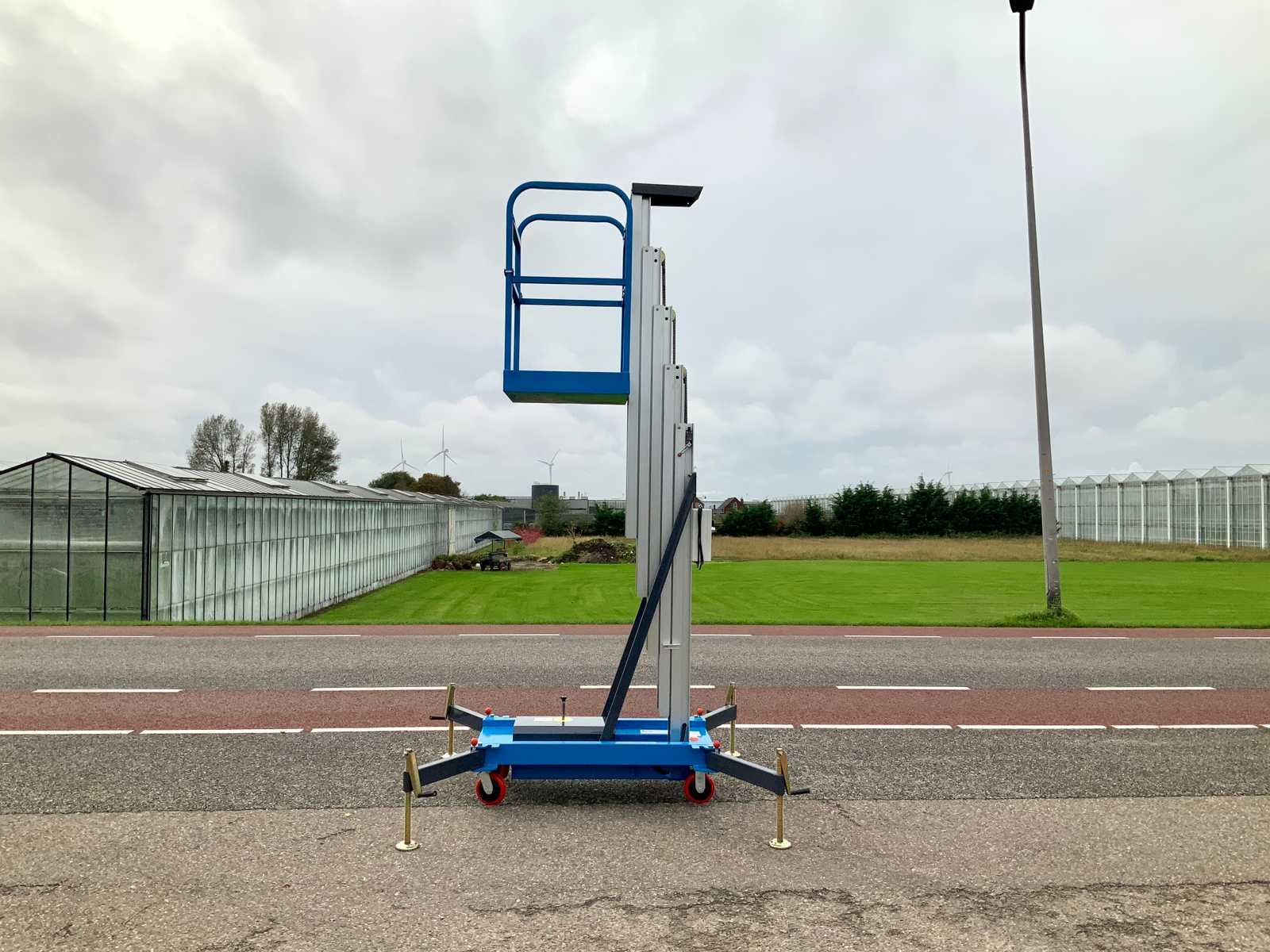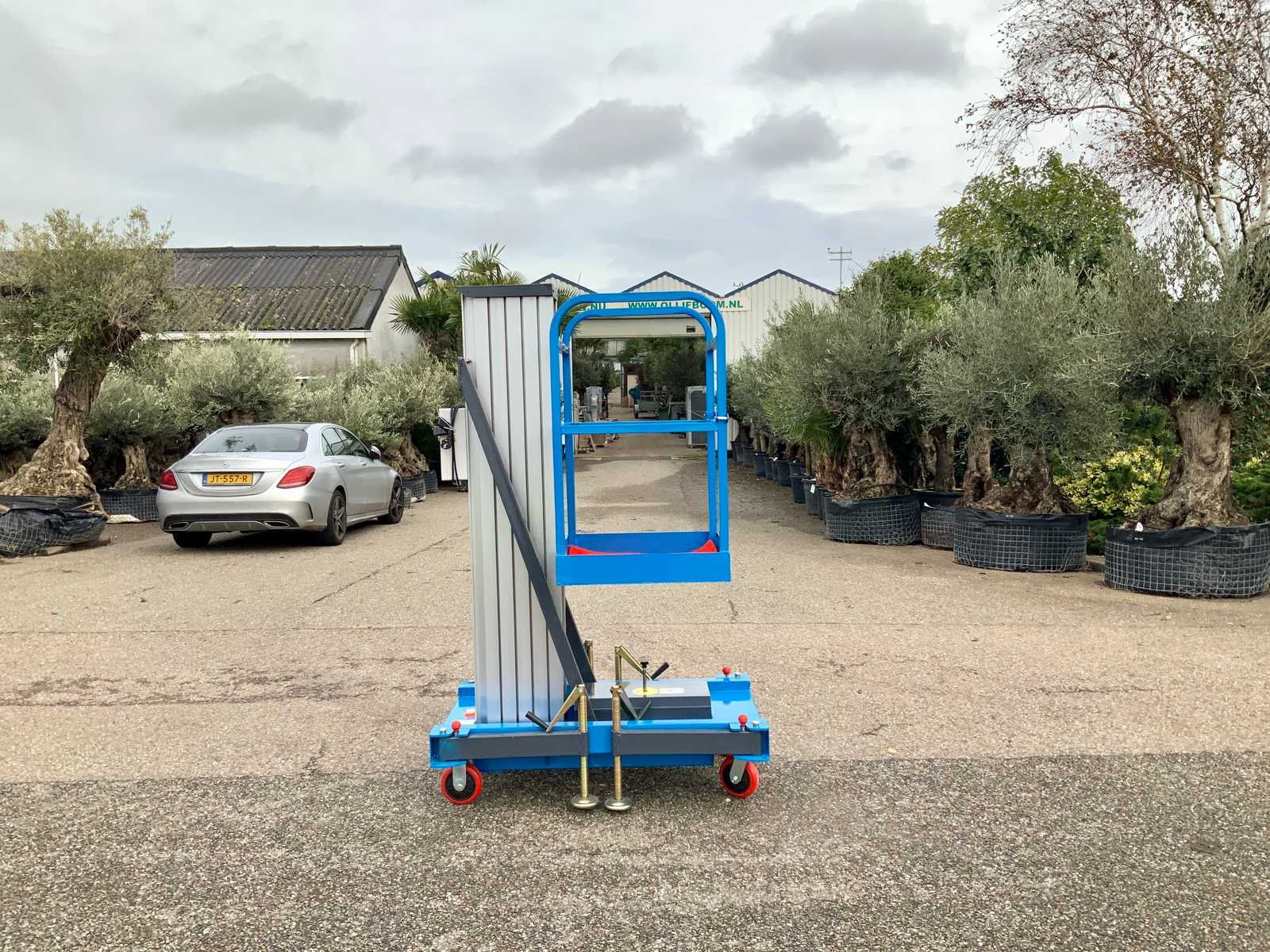 Masthoogwerker met afstandsbediening is ongebruikt. Bouwjaar: 2025 Elektrisch: true Masthoogwerker: true Werkhoogte: 8000mm Plateau afm. l: 600mm Plateau afm. b: 600mm Platform capaciteit: 117kg Eigen gewicht: 250kg Totale afmeting L: 1170mm Totale afmeting Breedte: 750mm Totale afmeting Hoogte: 1850mm