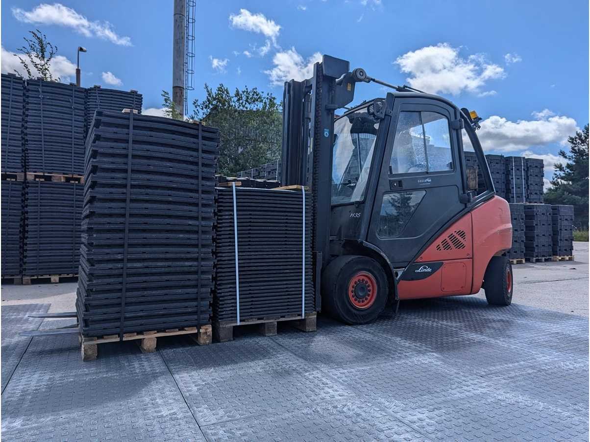Zowel in de lengte als in de breedte koppelbaar, geleverd op pallet met 35 stuks rijplaten totale oppervlakte ca 33,6 m2 per pallet, gewicht rijplaat ca 22 kg/stuk, rijplaten zijn ongebruikt. Bouwjaar: 2025 Afmeting l: 1200mm Afmeting b: 800mm Afmeting h: 28mm Kunststof: true Eigen gewicht: 22kg