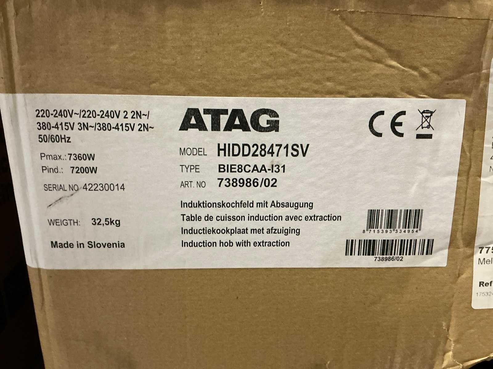 Atag hidd28471sv inbouw inductiekookplaat met geïntegreerde afzuiging