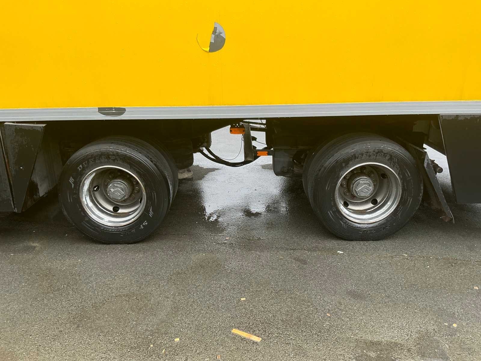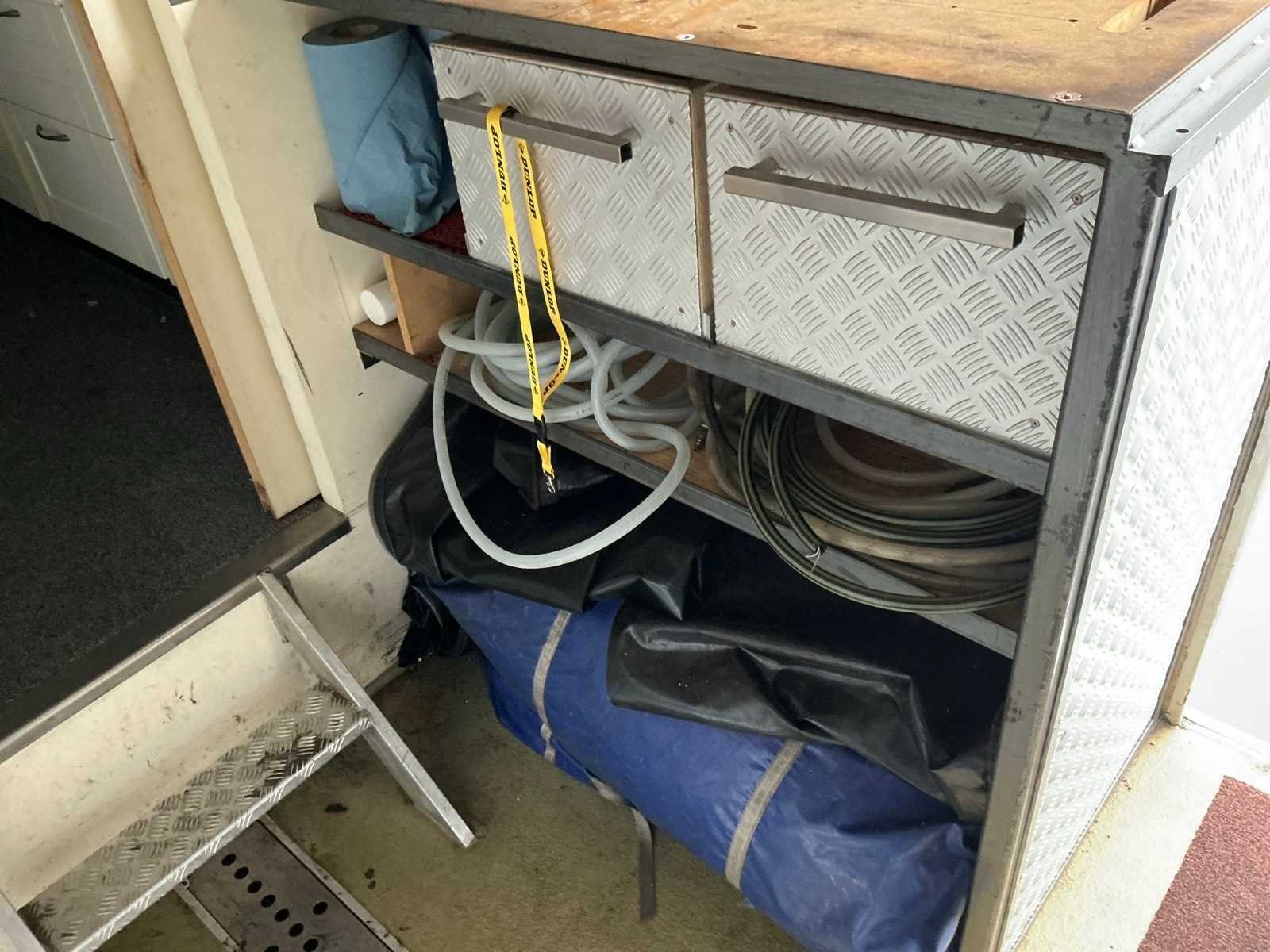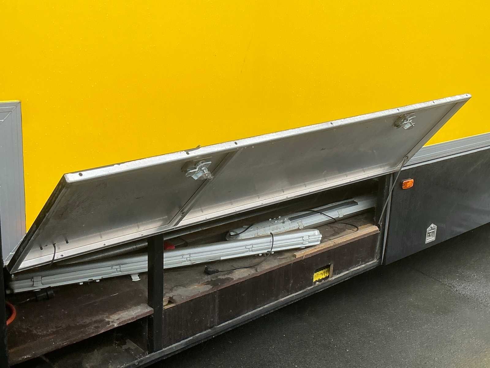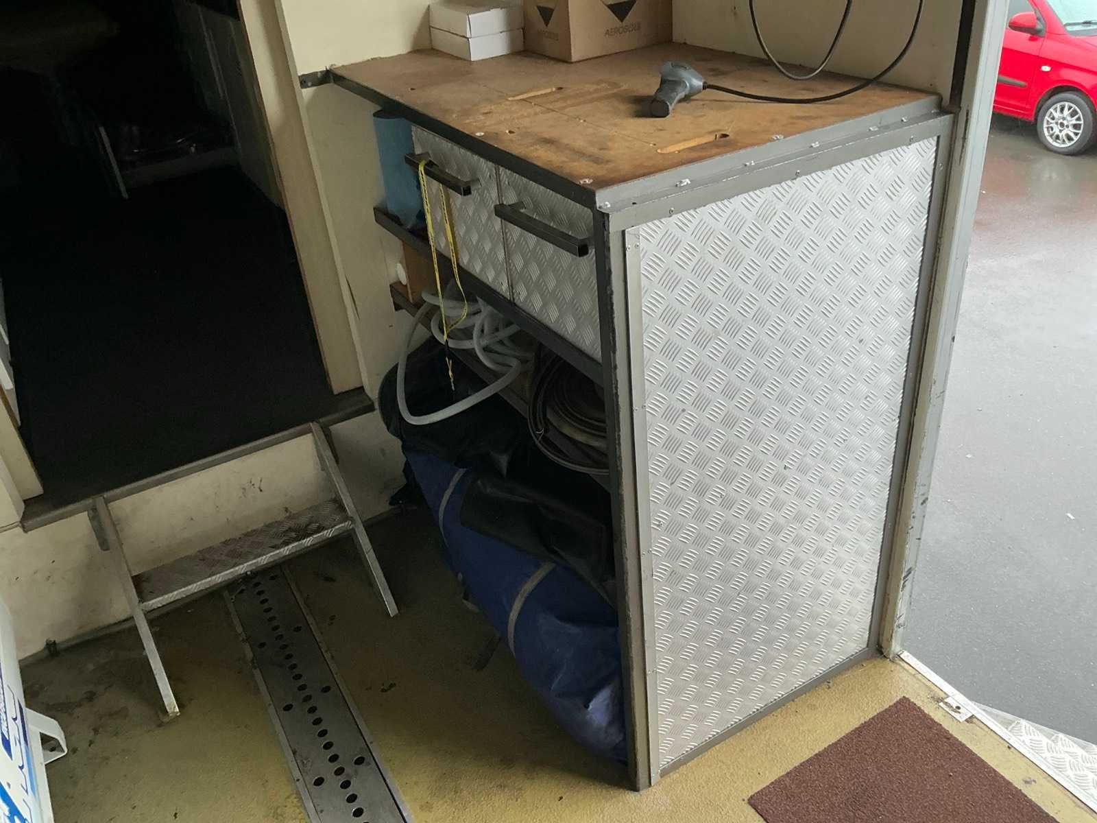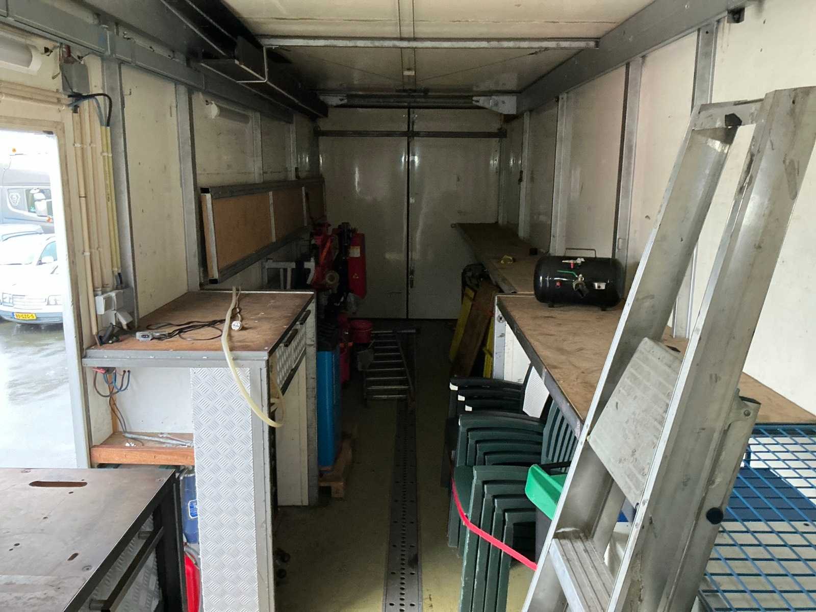 Slaap/keukengedeelte voorzien keukenblok inclusief toebehoren, koel/vriescombinatie, zithoek omtebouwen naar 2 persoonsbed, wc/douche, afmeting slaap/keukengedeelte 4200x2450x2350mm. Werkplaats 11000x2450x2750mm, omvormer, voorzien van takel, compressor max 10bar (Fiac), balanceerapparaat (Ravaglioli), banden de/monteerapparaat (Bulter rCombi), gereedschapskist (toolcraft), tuinstoelen, diverse gereedschap en toebehoren, buitenzijde: 220v, 380v en luchtaansluiting. Sleutel van achter deuren niet aanwezig Merk: Netam-fruehauf/Heering Type: TP50N Type aanhangwagencarrosserie: Gesloten aanhangwagen Bouwjaar: 1996 Chassisnummer VIN: XMHONCZKOTNF50273 Kenteken: OD36YZ Datum eerste toelating: 1996-08-30 APK vervaldatum: 2020-12-04 Aantal assen: 2 Totale afmeting L: 13000mm Totale afmeting Breedte: 2500mm Totale afmeting Hoogte: 3900mm