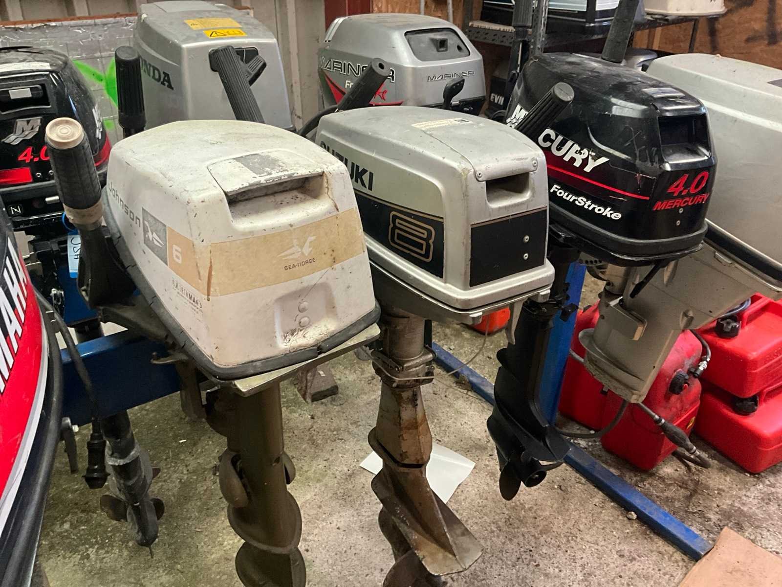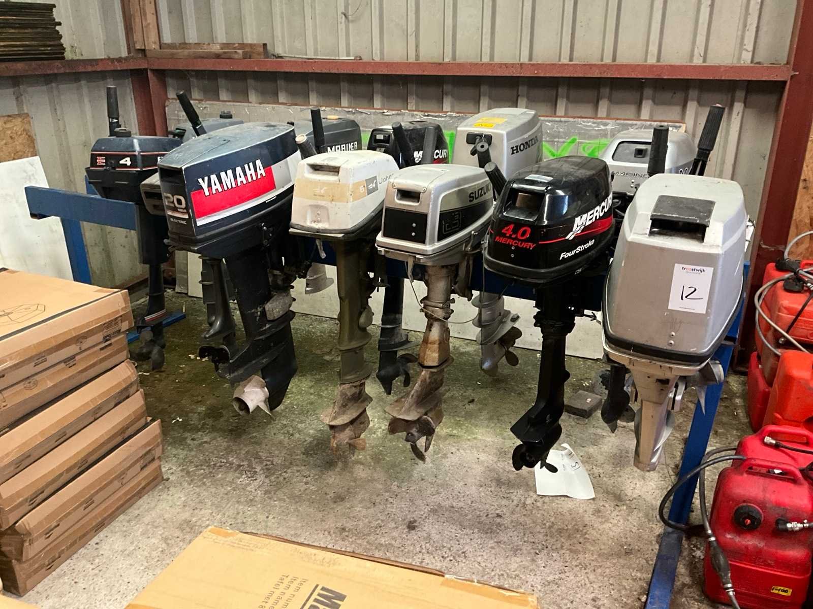Bestaande uit Mercury 4pk, Suzuki 8 pk, Johnson 6 pk, Yamaha 20 pk, Suzuki 2.2 pk, Evinrude 4 pk, Honda. Totaal 7 stuks diverse uitvoeringen en bouwjaren.