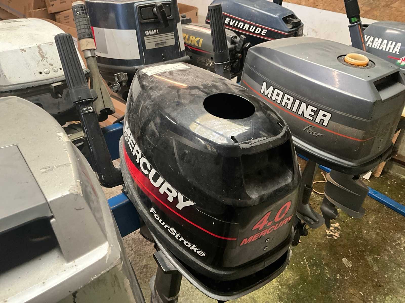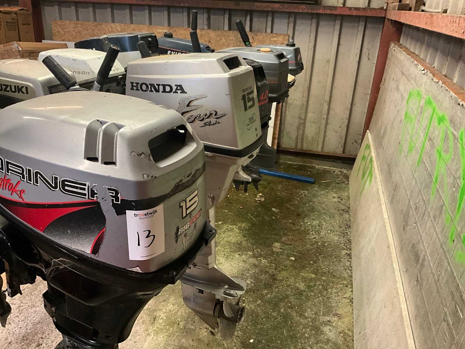 Bestaande uit Mariner 15 pk, Honda 15 pk, Mercury 4 pk, Mariner 4 pk, Yamaha 3 pk, Suzuki 2 pk. Diverse uitvoeringen en bouwjaren