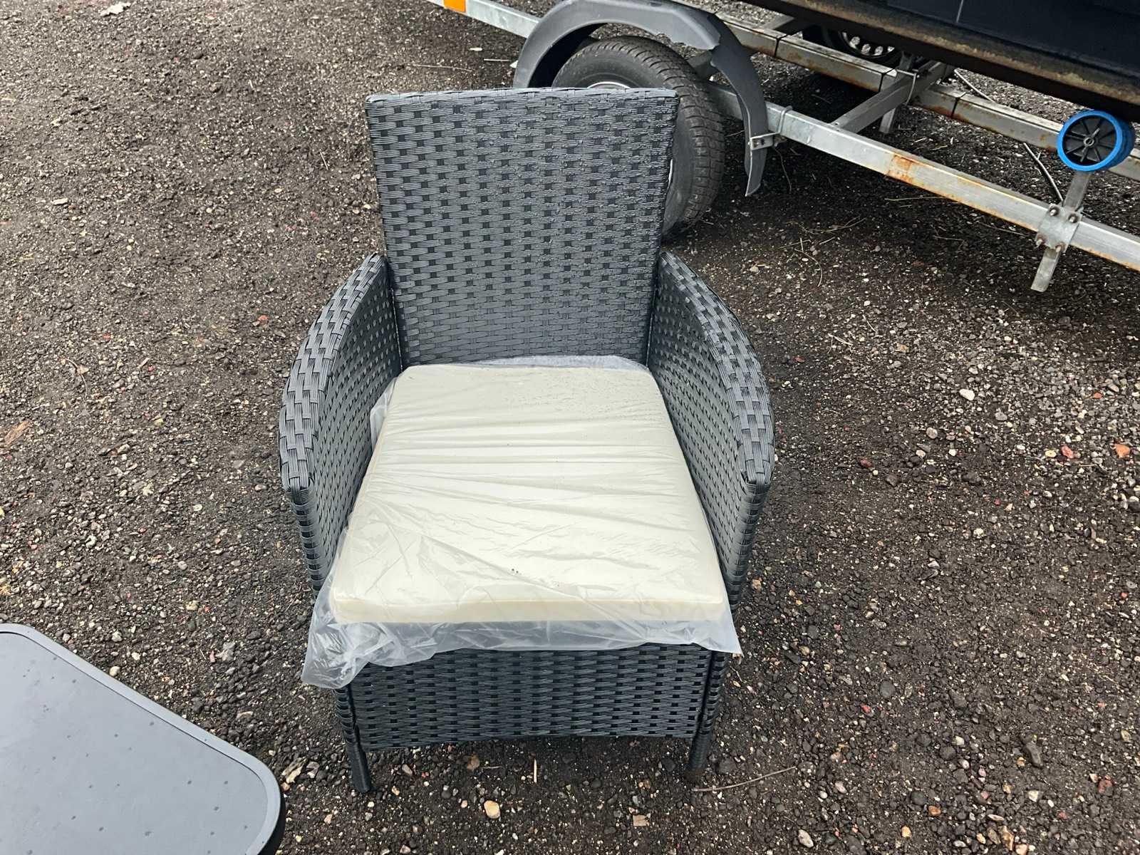 Set bestaande uit 2x stoel 1x tafel Merk: MaxxGarden Model: Rattan tuinset Kussens: true Kleur: Zwart Breedte: 59cm Hoogte: 80cm Zithoogte: 50 Materiaal: Kunststof
