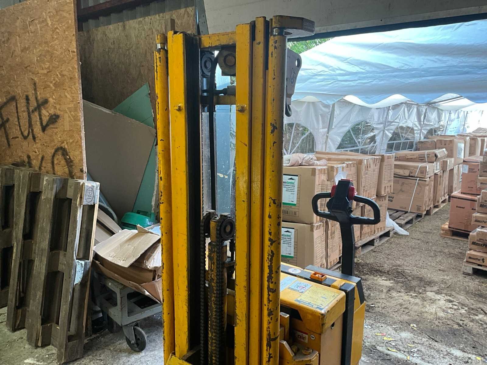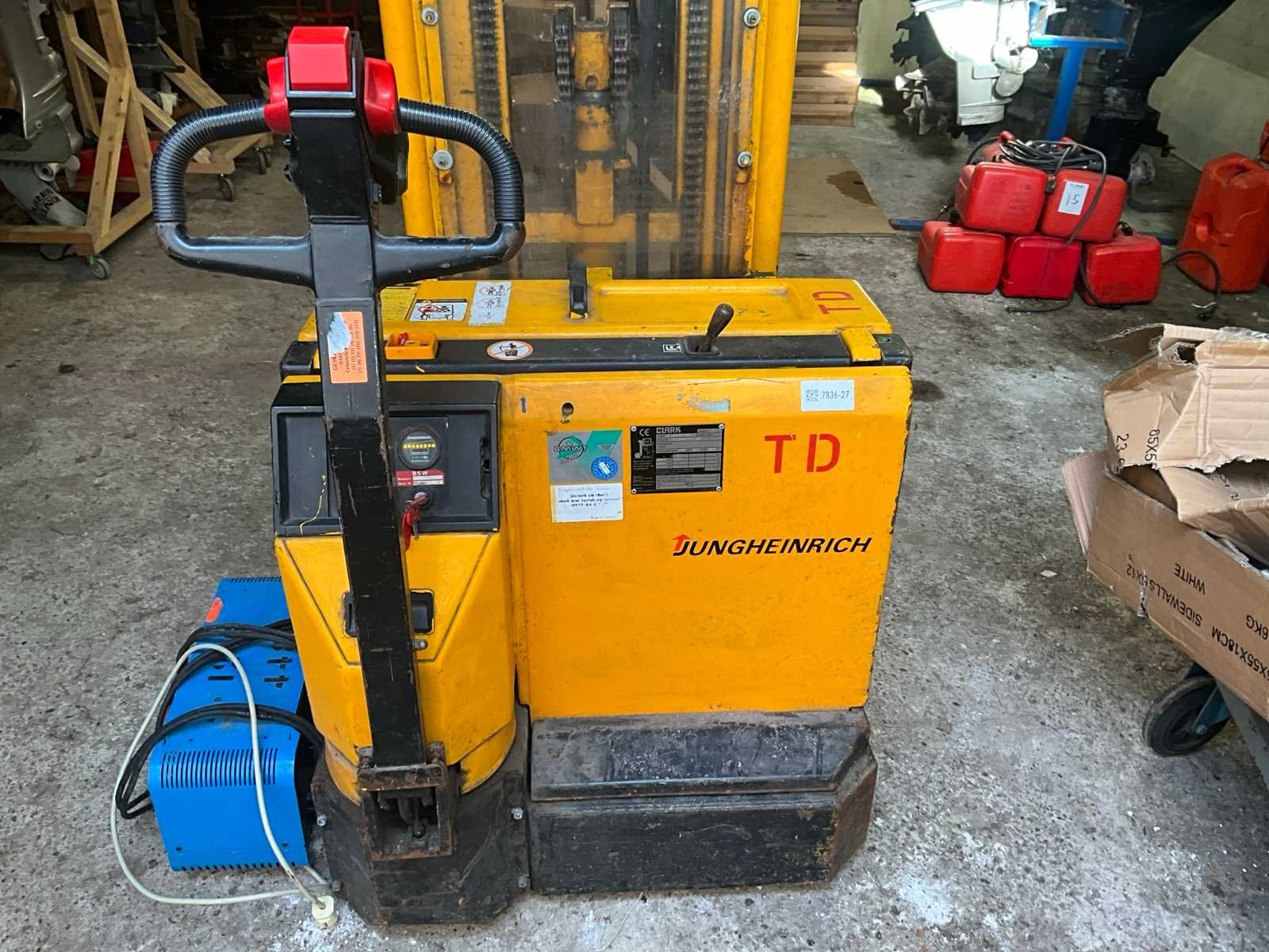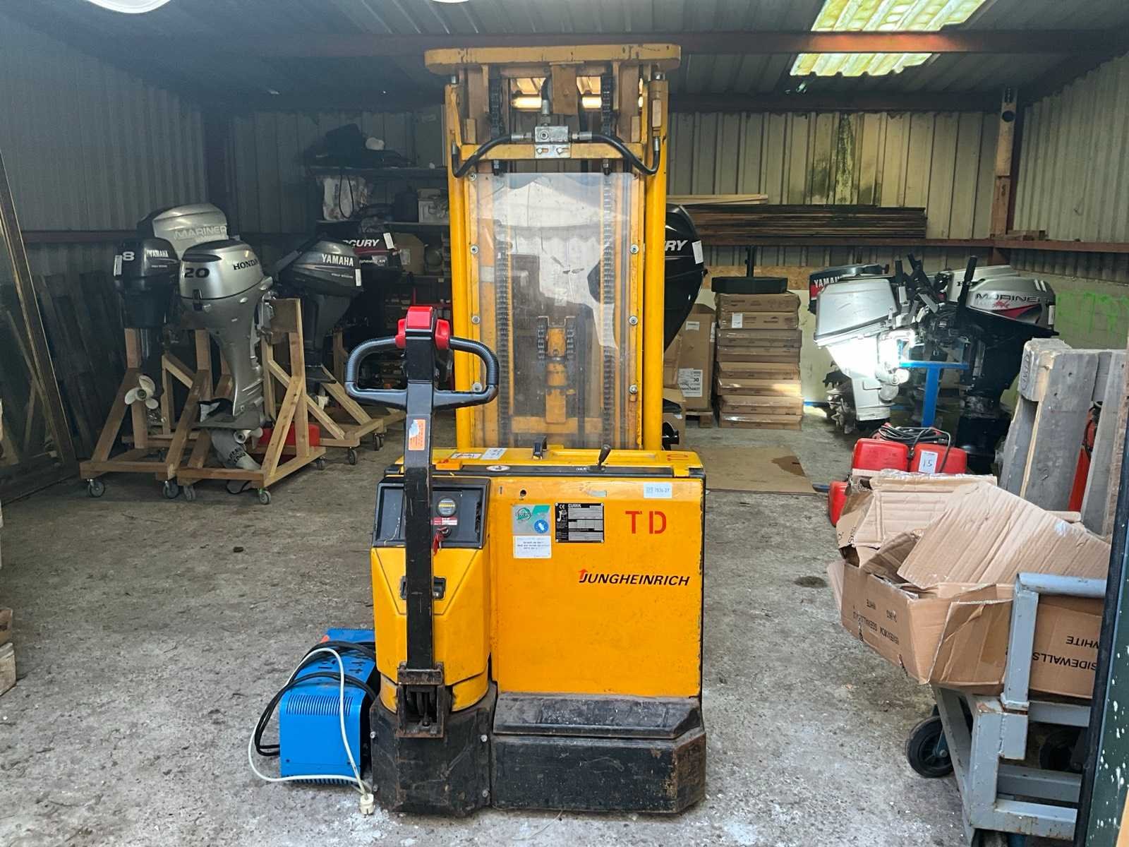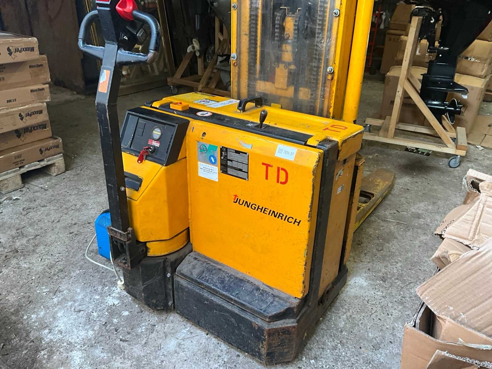 Merk: Jungheinrich Type: ECJ-ZA125 Bouwjaar: 1991 Serienummer: 71831|7101GEF Hefvermogen: 1950kg Hefhoogte: 4300mm Lepellengte: 1140mm Afgelezen urenstand: 3056 Minimale doorrijhoogte: 1960mm Totale afmeting L: 2100mm Totale afmeting Breedte: 830mm Totale afmeting Hoogte: 1960mm Accu lader: true