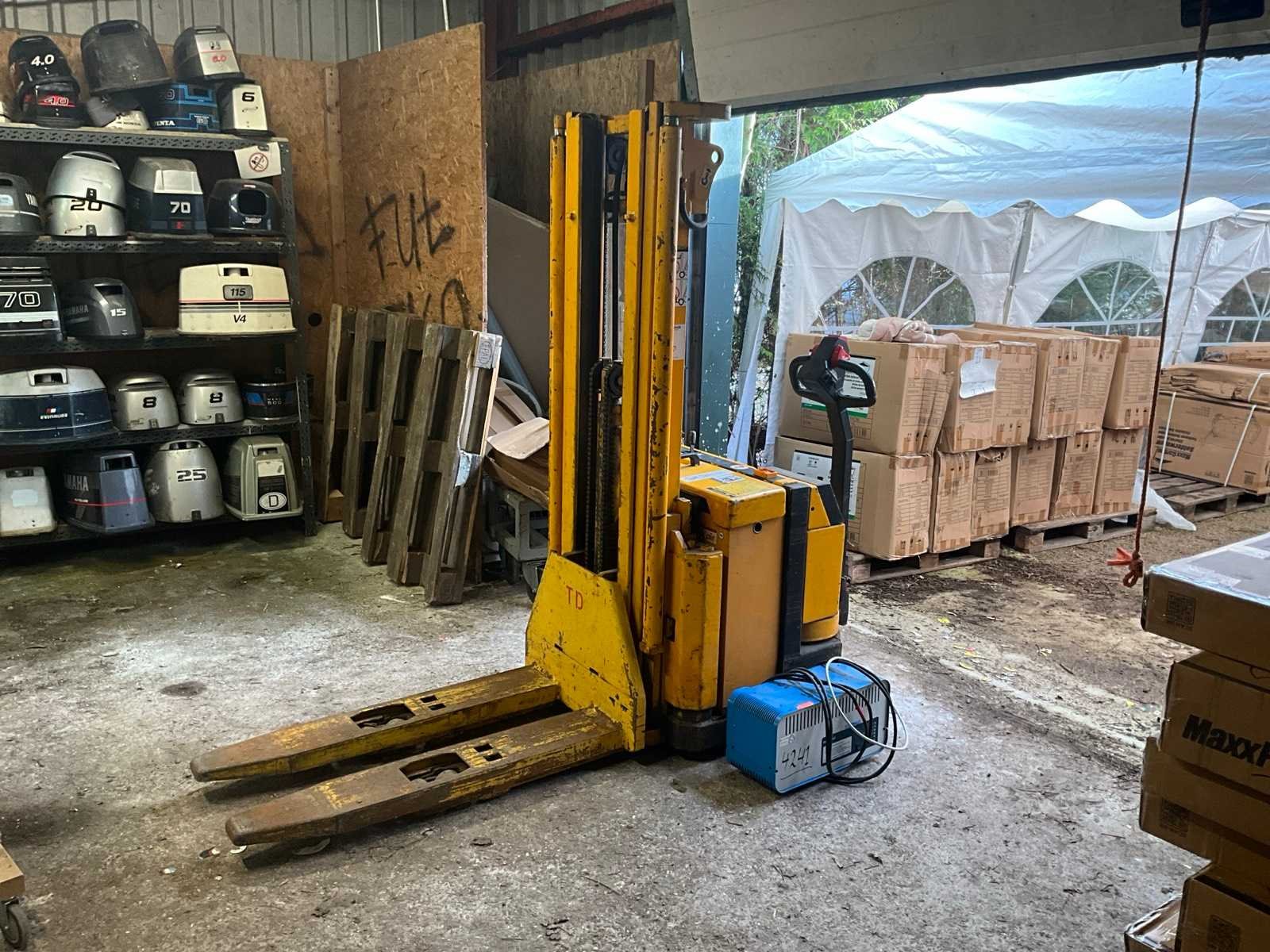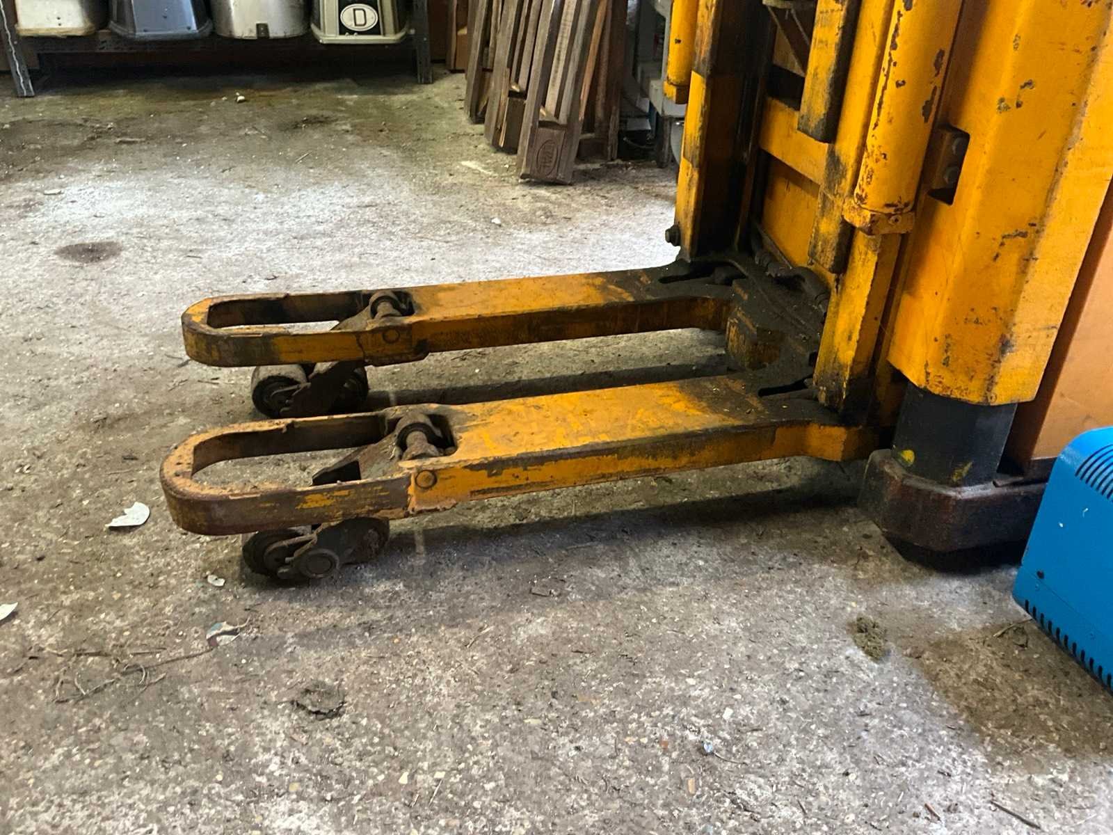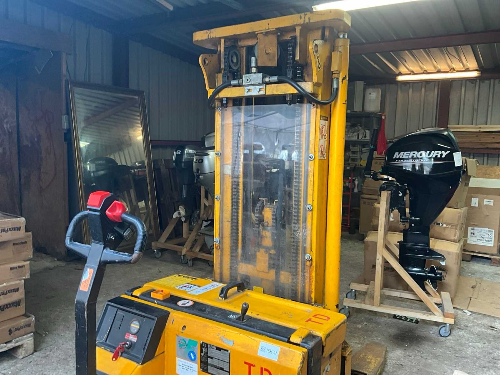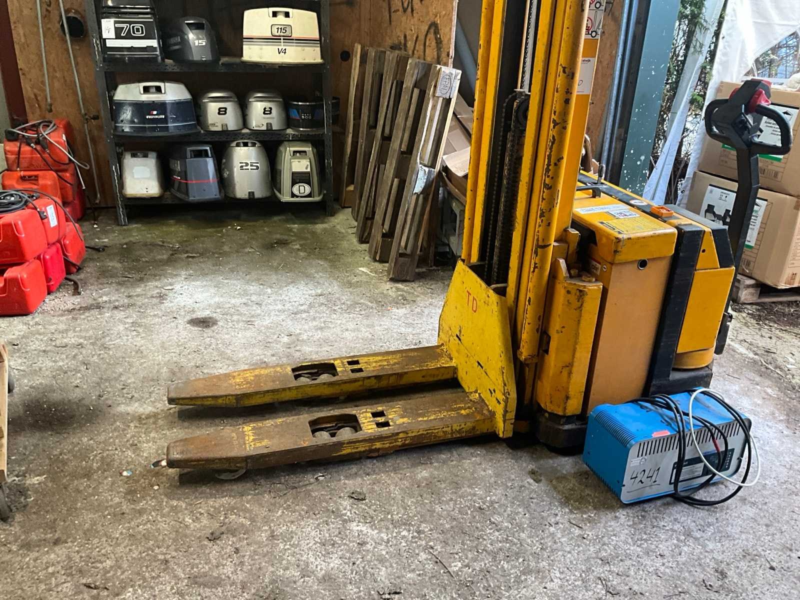 Merk: Jungheinrich Type: ECJ-ZA125 Bouwjaar: 1991 Serienummer: 71831|7101GEF Hefvermogen: 1950kg Hefhoogte: 4300mm Lepellengte: 1140mm Afgelezen urenstand: 3056 Minimale doorrijhoogte: 1960mm Totale afmeting L: 2100mm Totale afmeting Breedte: 830mm Totale afmeting Hoogte: 1960mm Accu lader: true