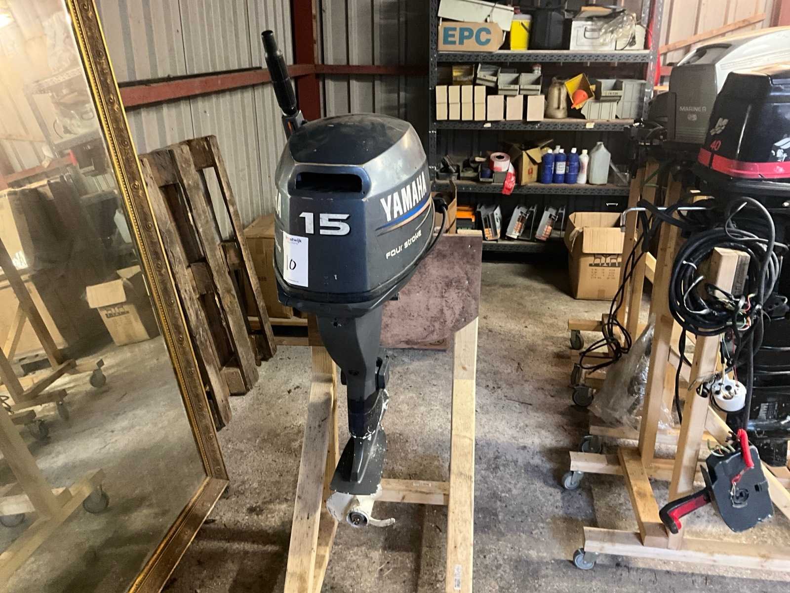 Voorzien van knuppel bediening, elektrische start, bouwjaar 2004 Merk: Yamaha Type: FT9.9DE Brandstof: Benzine Vermogen (pk): 15hp Kleur: Blauw