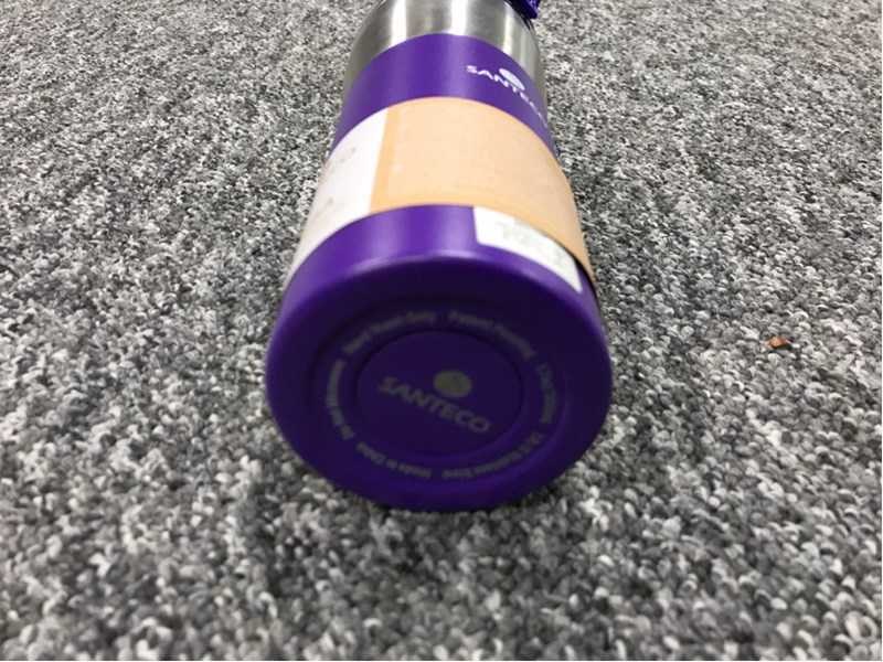 Totale afmeting B: 80 mm; totale afmeting H: 205 mm; omschrijving: ongebruikt in de verpakking; dubbelwandig roestvrijstalen vacuumisolatie; 0.5L; lekvrije Flip-top deksel Merk: Santeco Type: Kariba purple