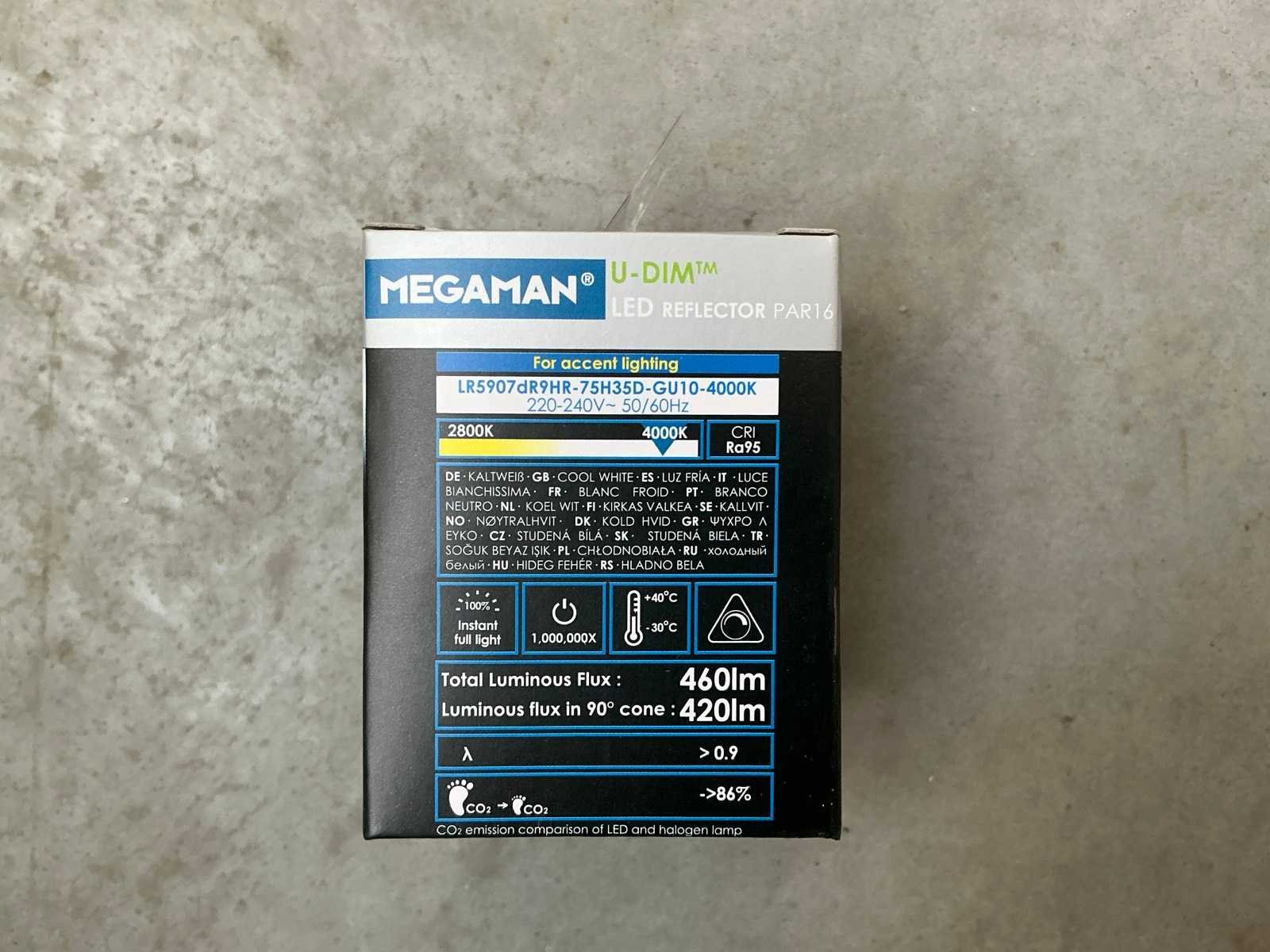 Product zit ongebruikt in de verpakking. Merk: Megaman Model: MM07532 Kleurtemperatuur: 4000k Fitting: GU10 Wattage: 7W