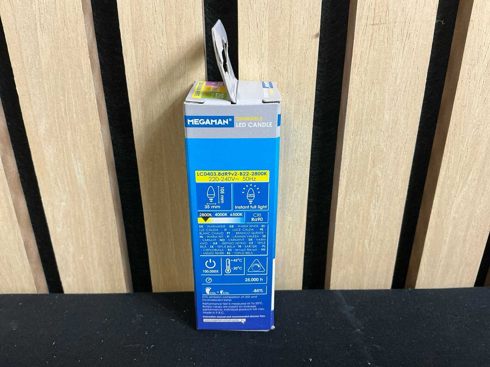 Product zit ongebruikt in de originele verpakking. Merk: Megaman Model: MM9997 Energielabel: A+ Fitting: B22 Kleurtemperatuur: 2800k