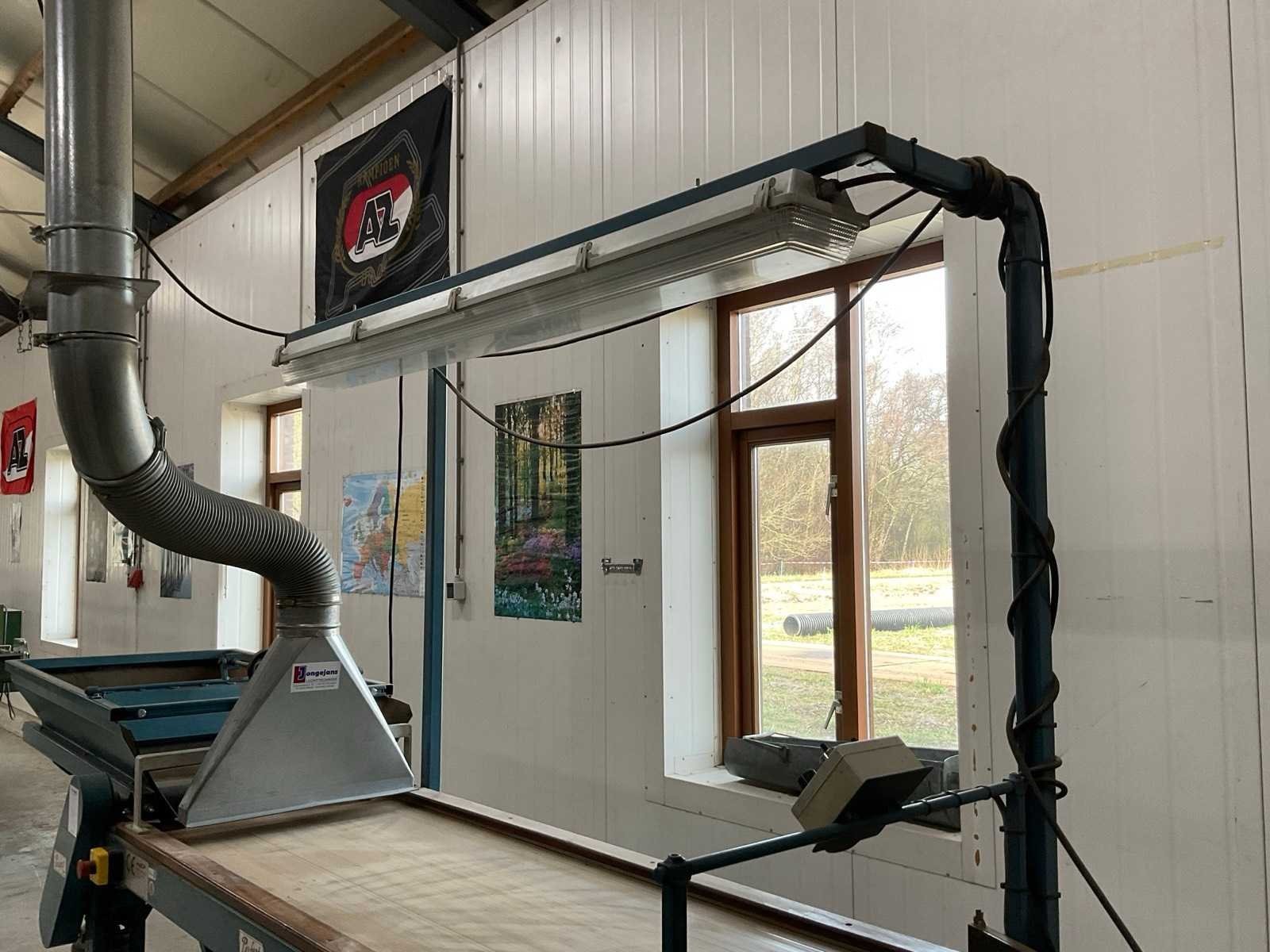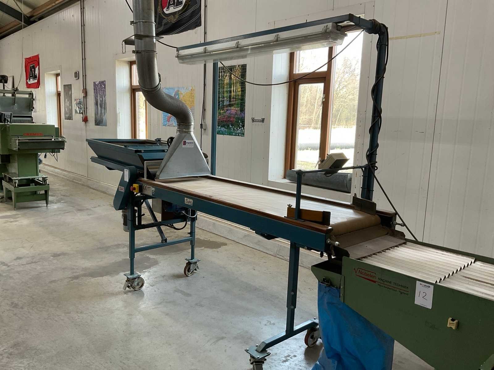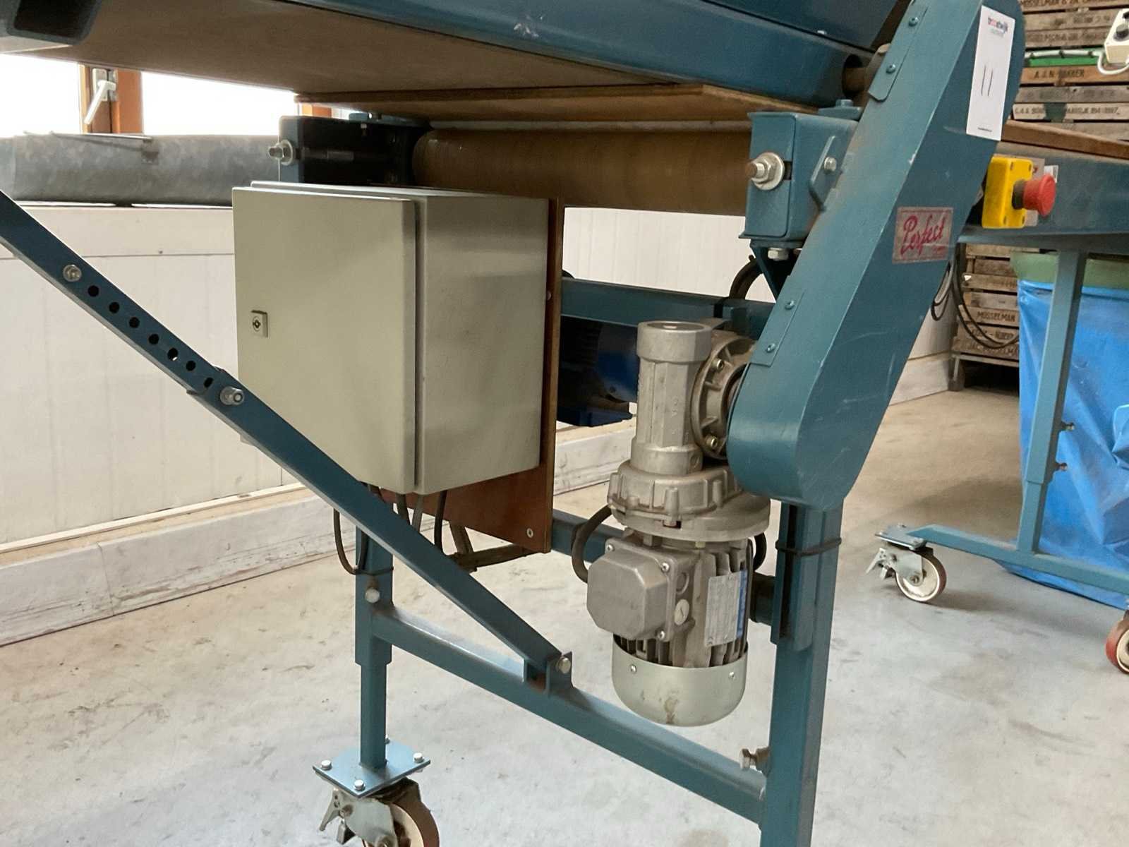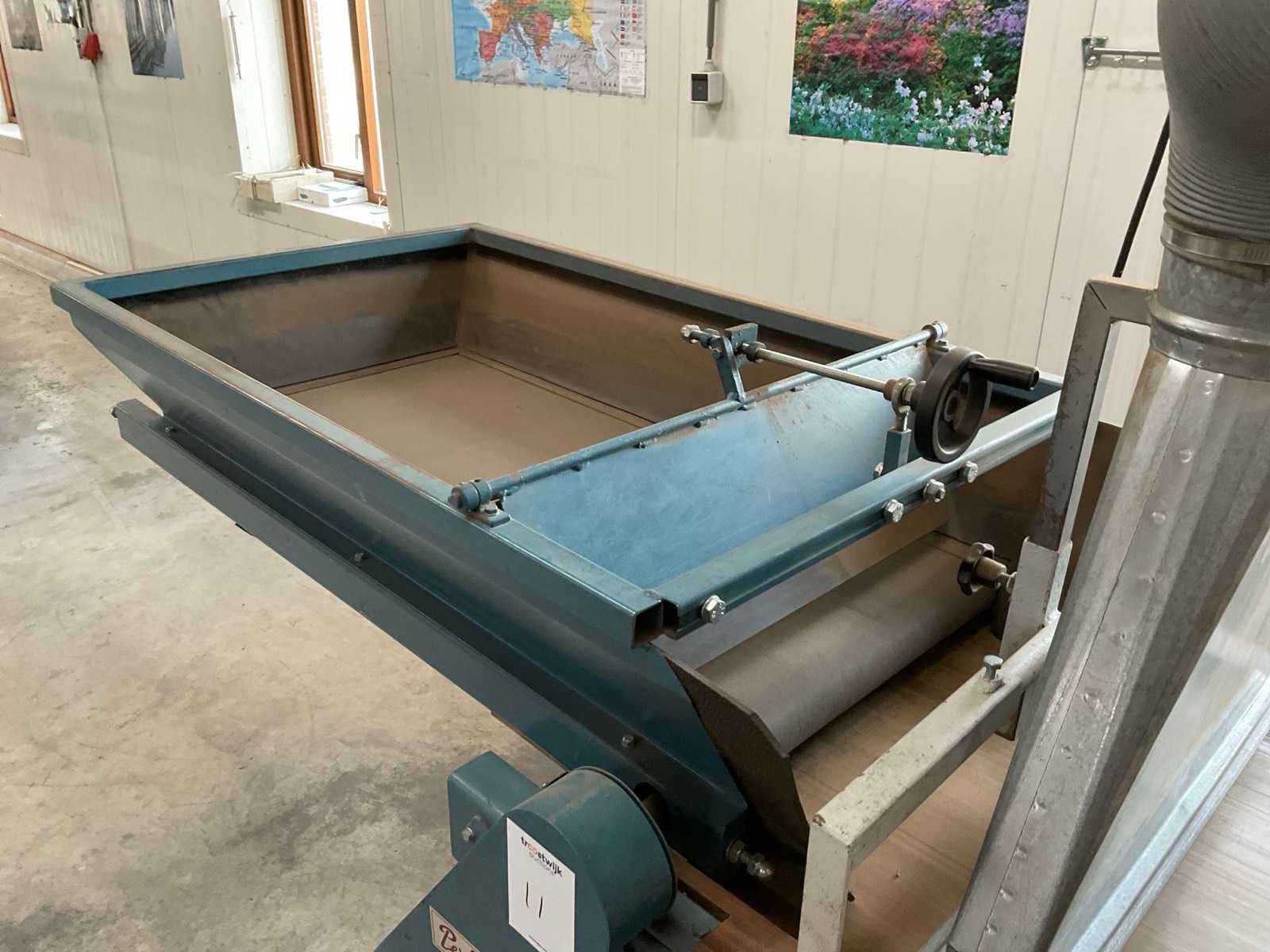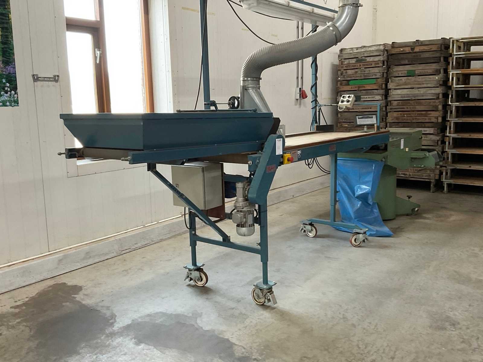 Mobiel; 230V; v.v. doseerband; bandlengte ca. 1000 mm; incl. blaasmond en werkverlichting Merk: Europa Perfect Type: EU 406-3 2R Bouwjaar: 2000 Bandlengte: 2000mm Bandbreedte: 590mm Totale afmeting L: 3250mm Totale afmeting Breedte: 1000mm Totale afmeting Hoogte: 1400mm