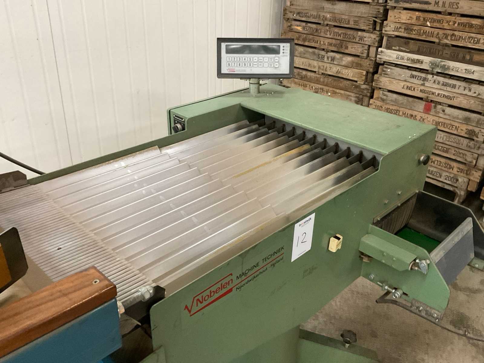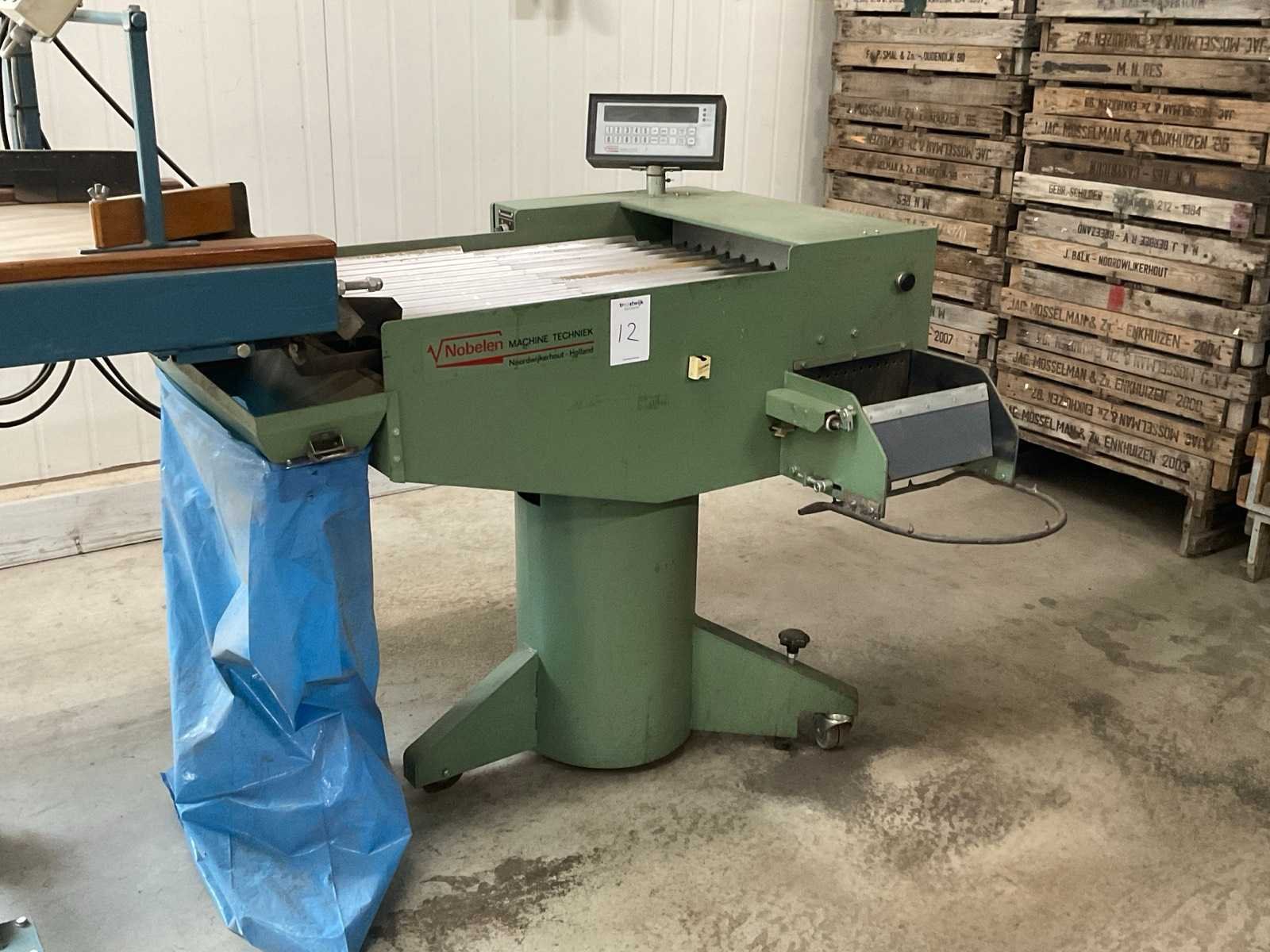 12-goots; v.v. digitale uitlezing met tip-toetsbediening; zij-uitvoerband; bandbreedte ca. 300 mm Merk: Van Nobelen Type: 1041MCF4-12 Bouwjaar: 1993 Aansluiting: 230V Mobiel: true Totale afmeting L: 1300mm Totale afmeting Breedte: 1100mm Totale afmeting Hoogte: 1250mm