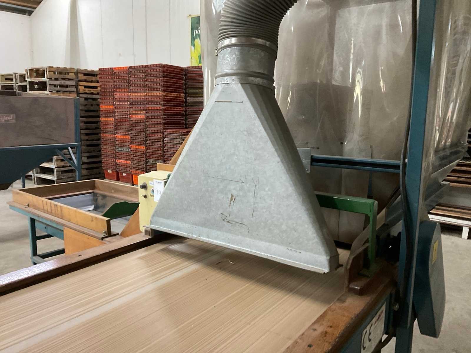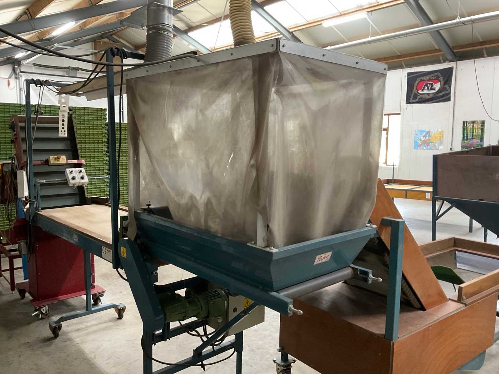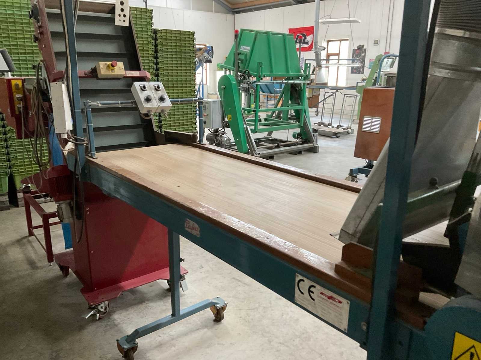 Mobiel; 230V; v.v. doseerband; bandlengte ca. 1000 mm; incl. blaasmond en werkverlichting Merk: Europa Perfect Type: EUR 406-3 2R Bouwjaar: 1995 Bandlengte: 2000mm Bandbreedte: 580mm Totale afmeting L: 3250mm Totale afmeting Breedte: 1000mm Totale afmeting Hoogte: 2100mm