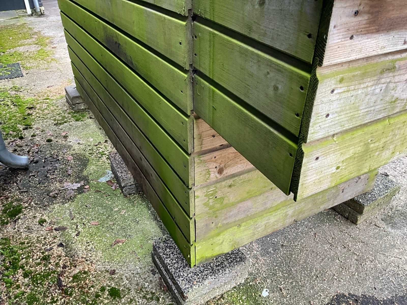 Let op! houten balk aan onderzijde is in slechte staat Lengte: 130cm Breedte: 260cm Hoogte: 210cm Materiaal: hout/metaal